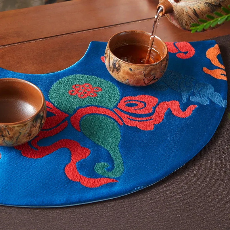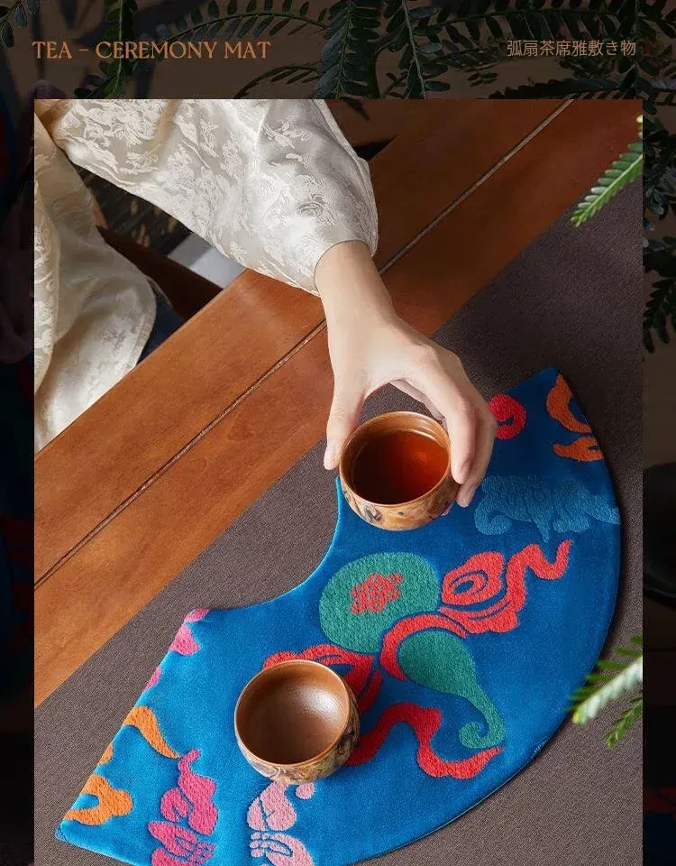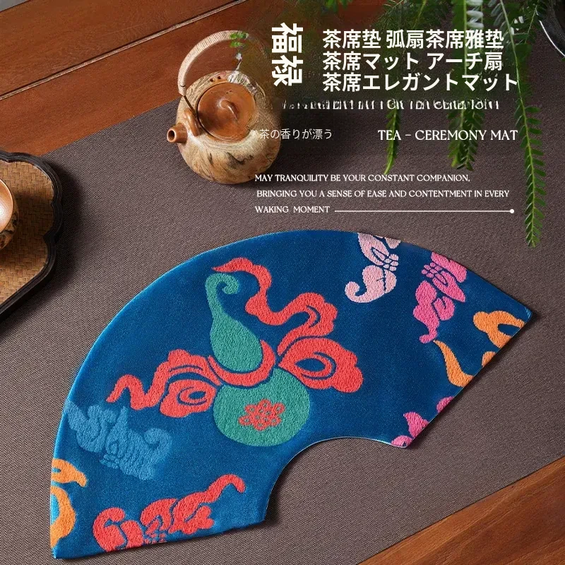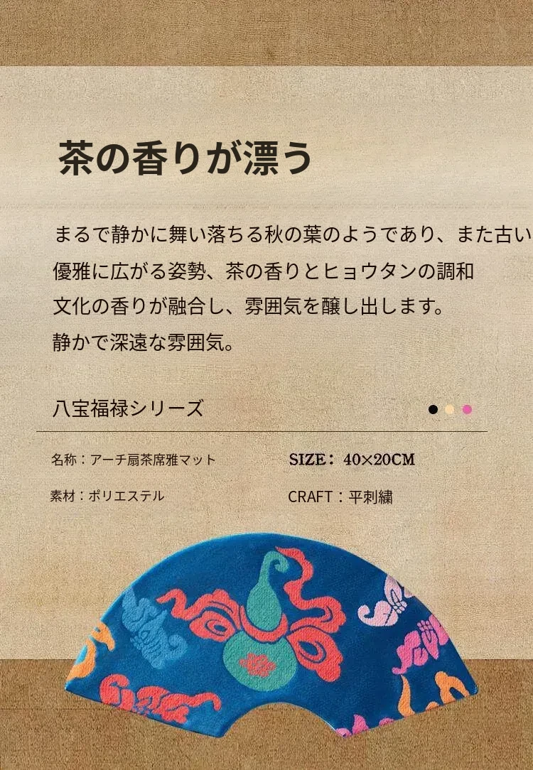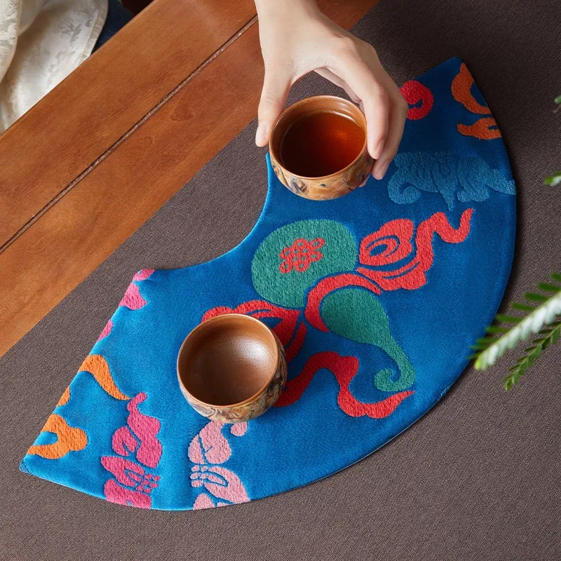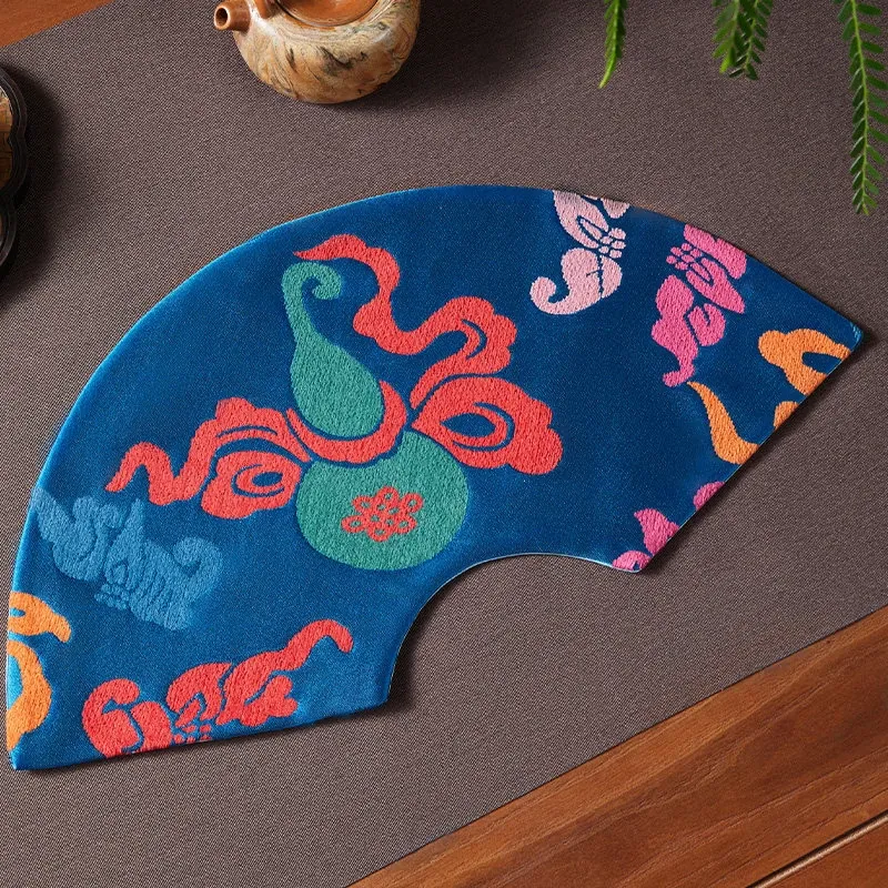 中国風レトロアーチ扇デザインの防水茶杯マット。茶道に最適な干し泡台と功夫茶盤用マットで、禅の心を感じるひとときを演出。おしゃれで実用的な茶席を彩るアイテムです。