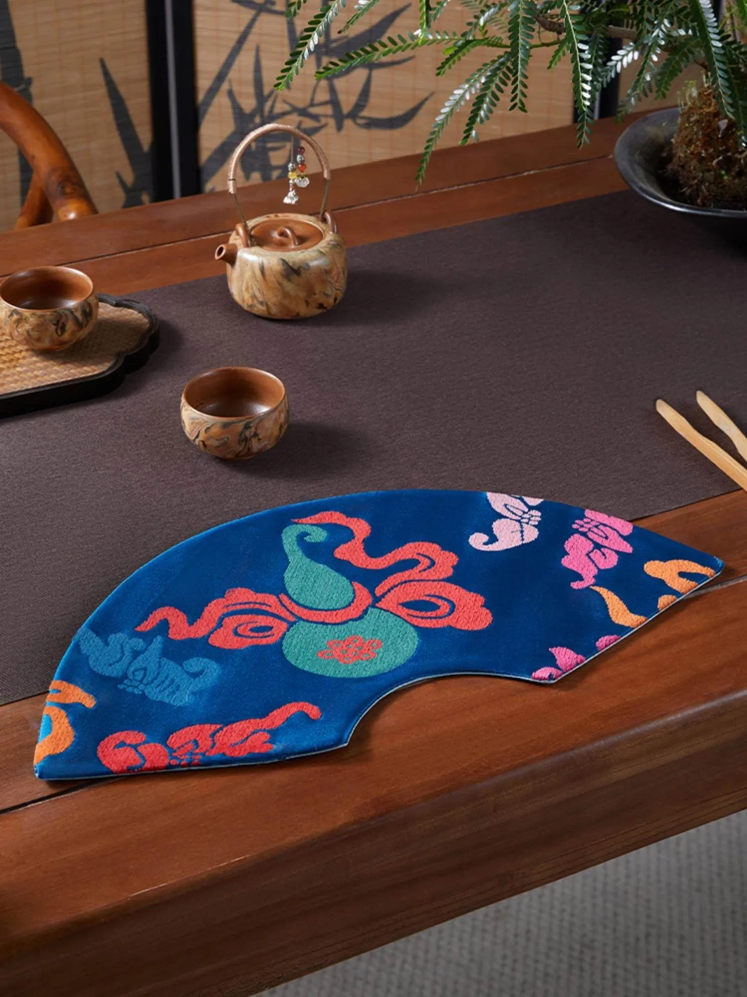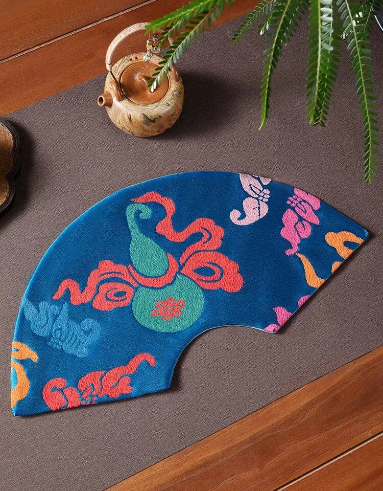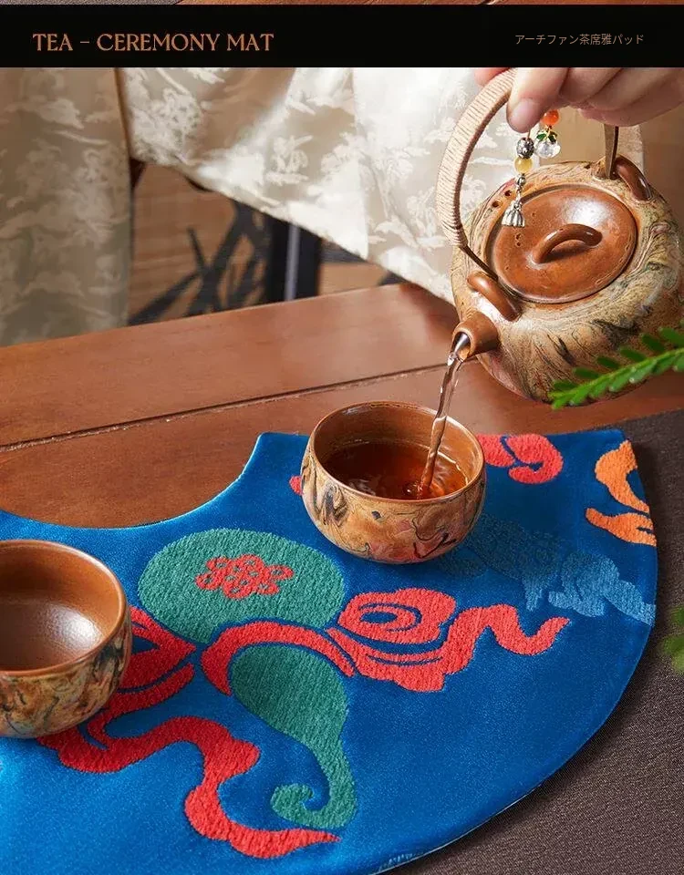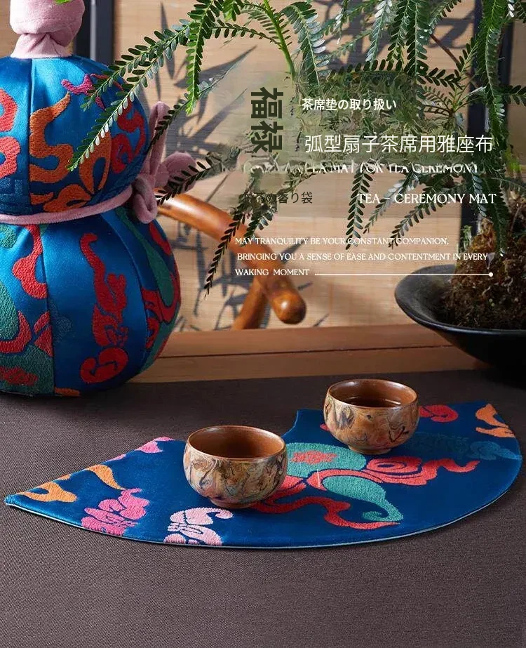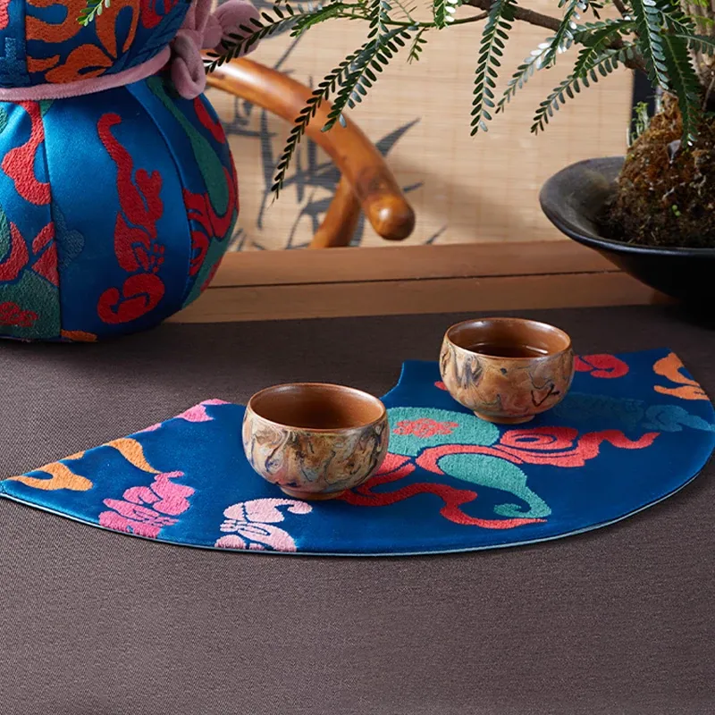 中国風レトロアーチ扇デザインの防水茶杯マット。茶道に最適な干し泡台と功夫茶盤用マットで、禅の心を感じるひとときを演出。おしゃれで実用的な茶席を彩るアイテムです。