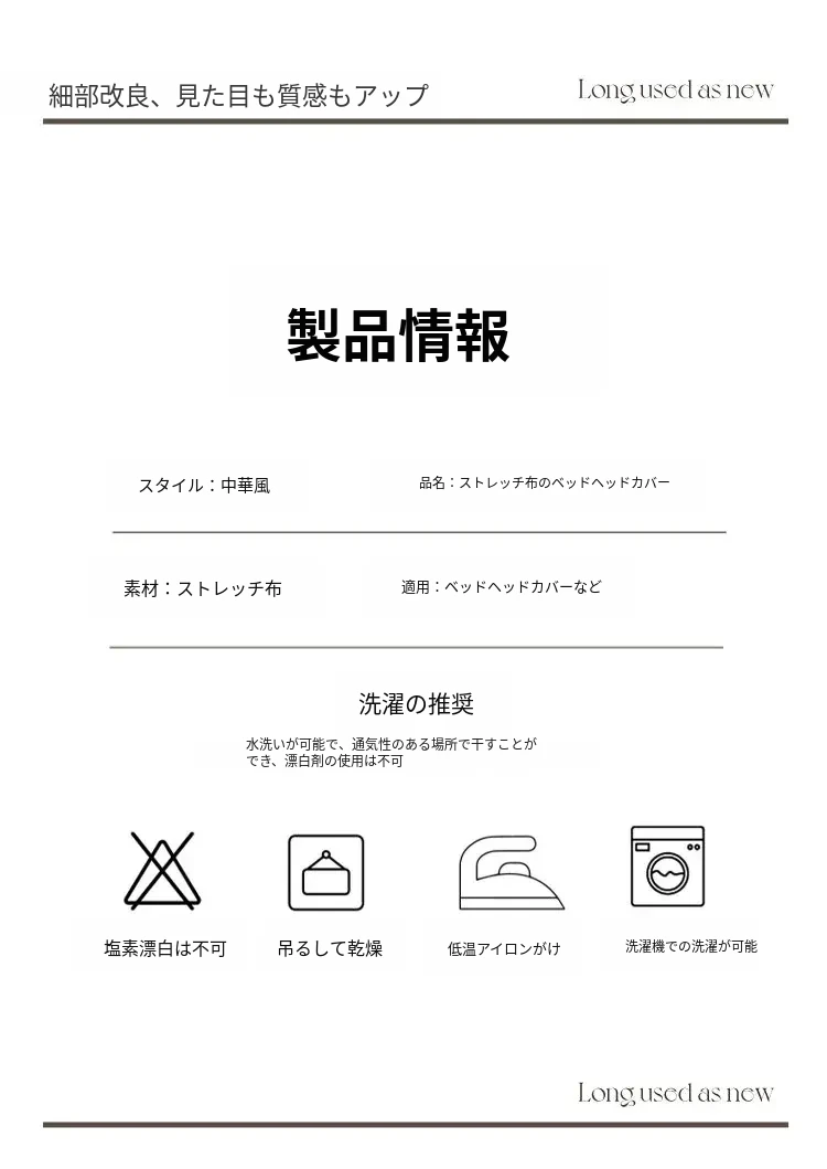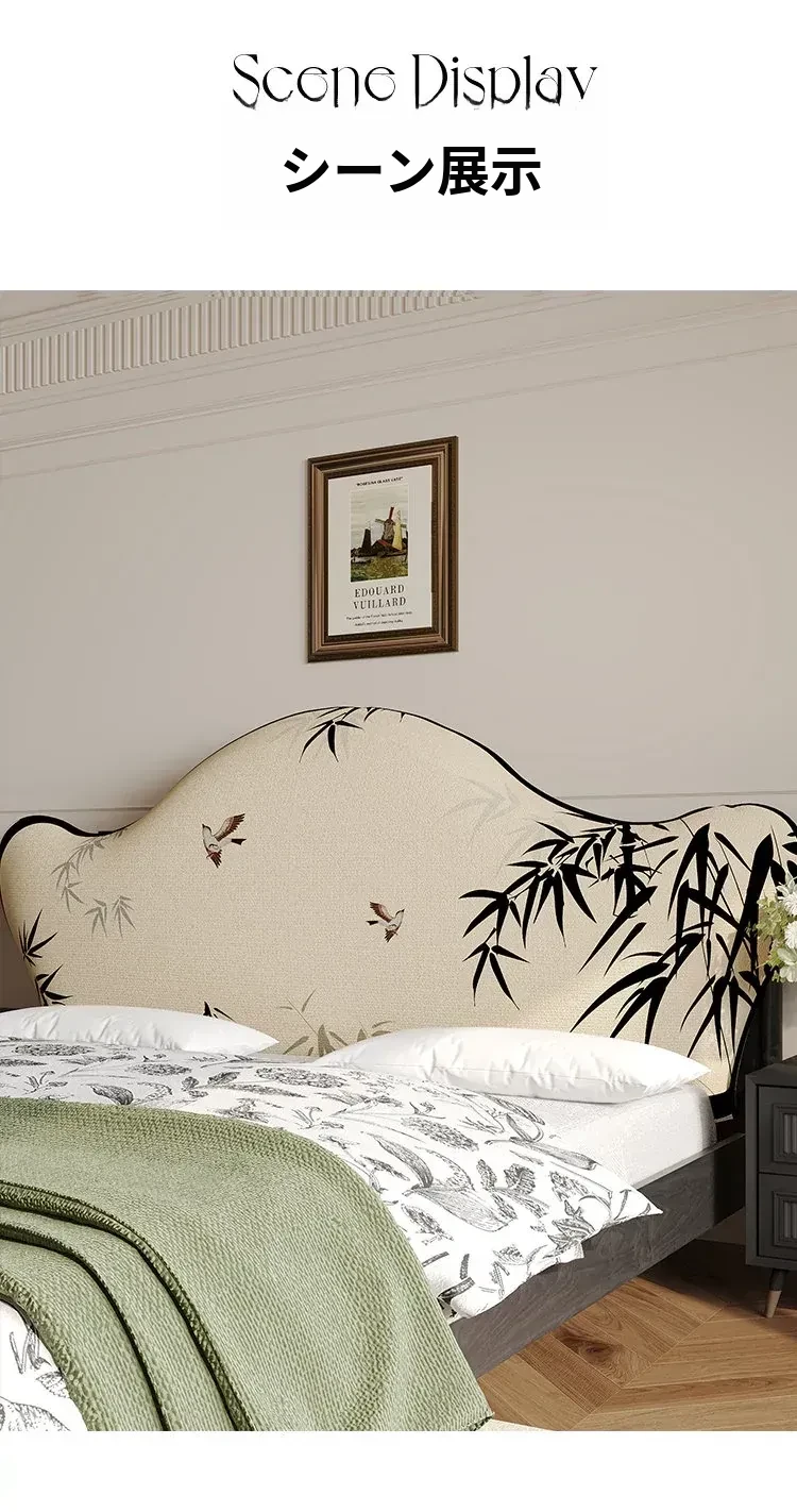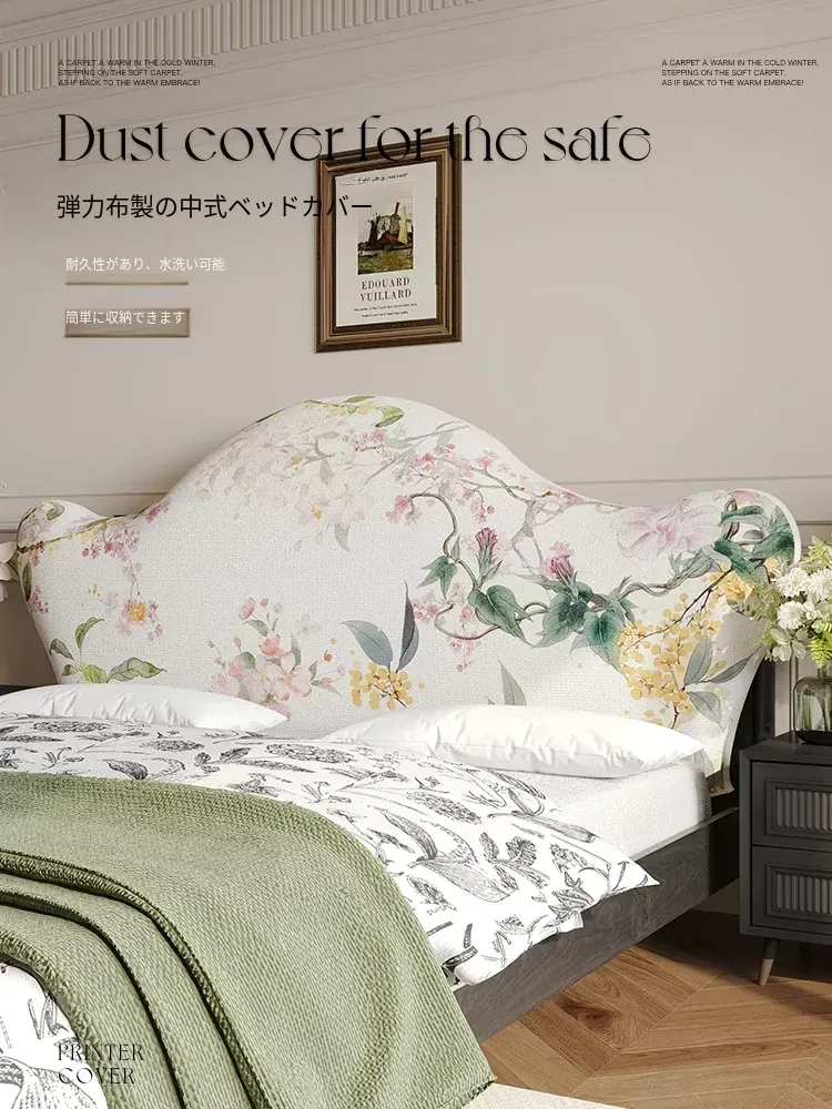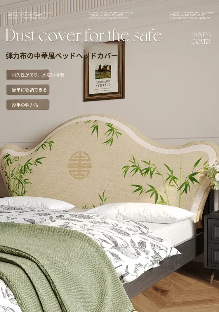 中華風スタイルの万能ベッドヘッドカバー - 防塵・洗濯可能・厚手保護カバーで美しさを維持!背もたれクッションを隠すおしゃれなカバー。快適な眠りをサポート!
