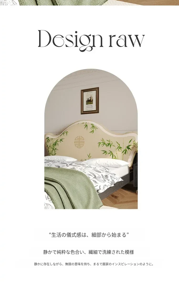 竹の韻と鳥の音-ストレッチ生地のヘッドボードパッド-山の形
