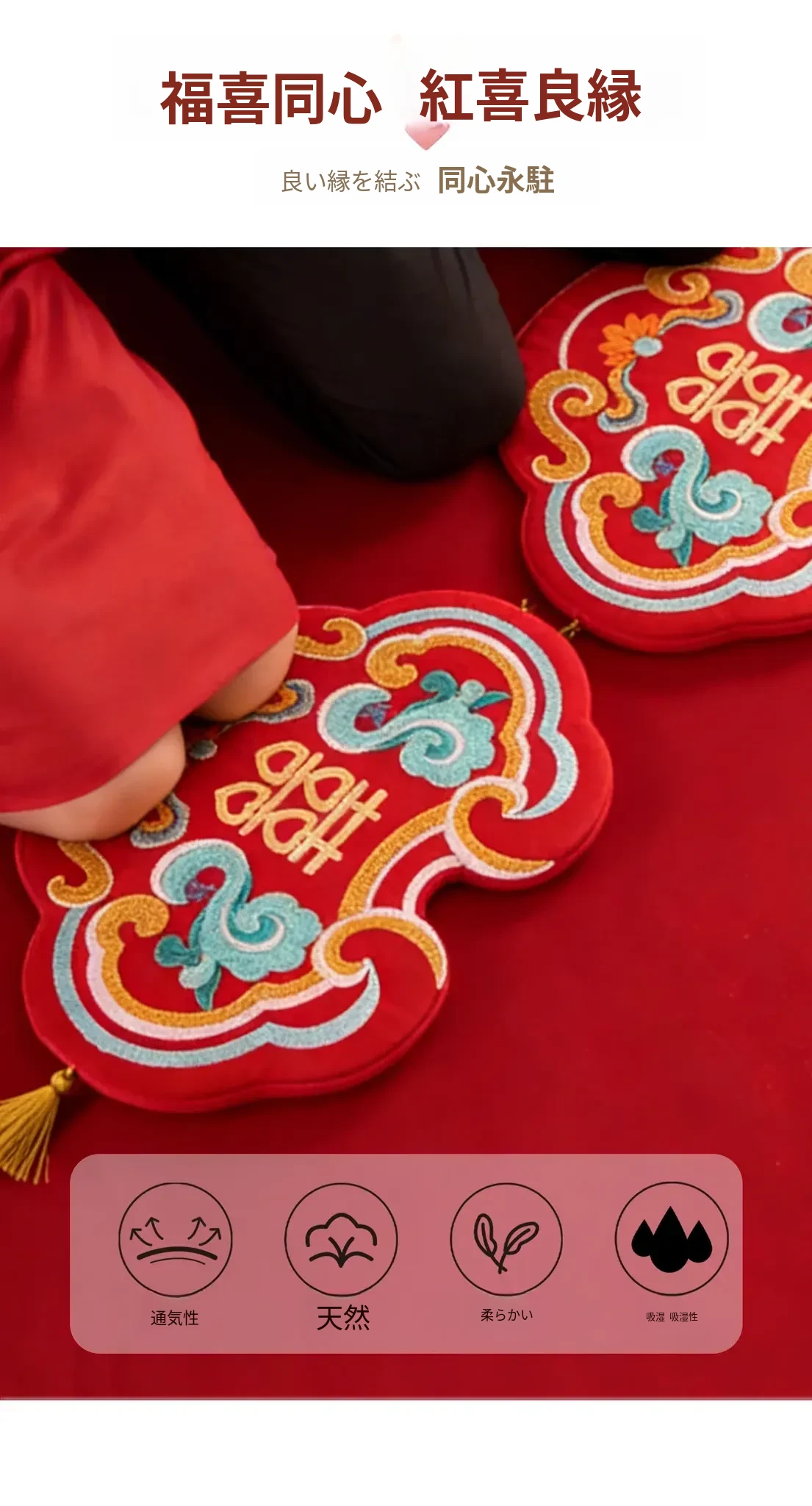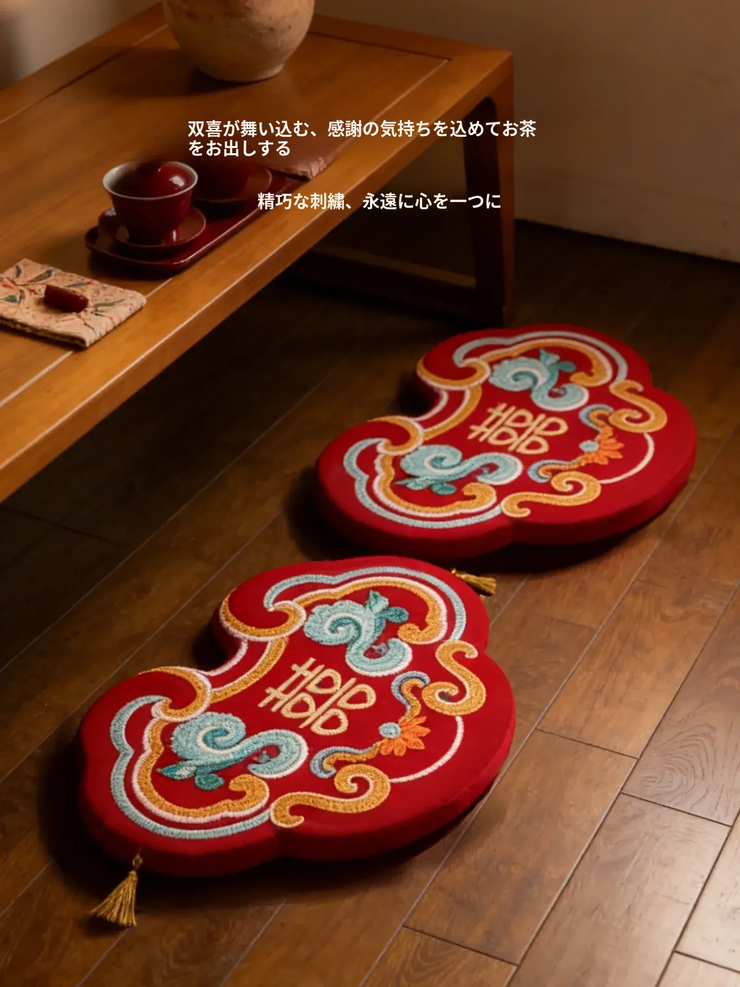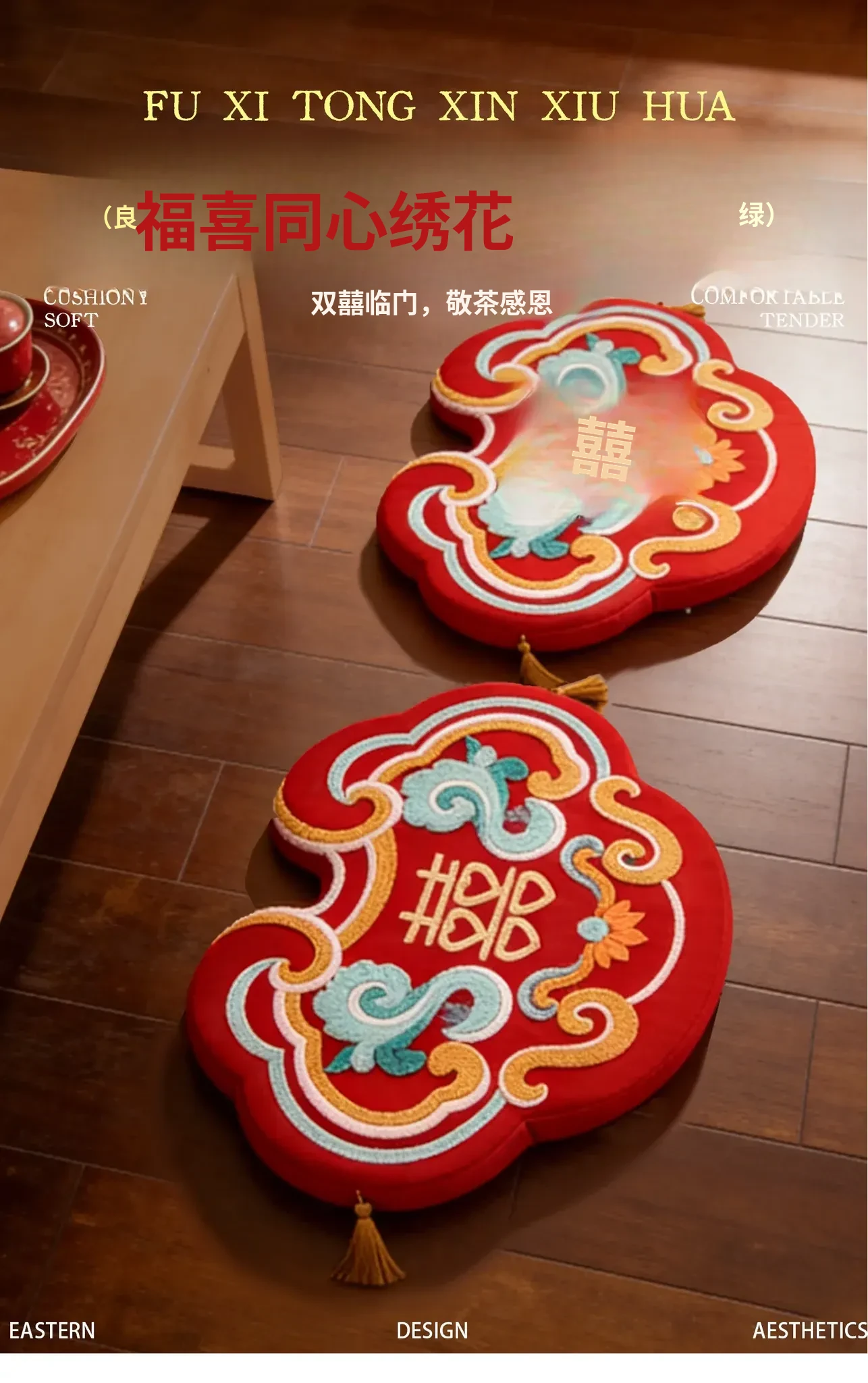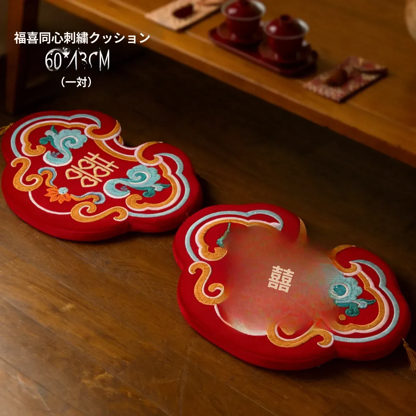 中式結婚祝いの喜字デザインの赤い膝立ちマット、華やかな祝いの蒲団、楽に座れるソファ代わりの地面用クッション、結婚準備や新年の必需品にぴったり!