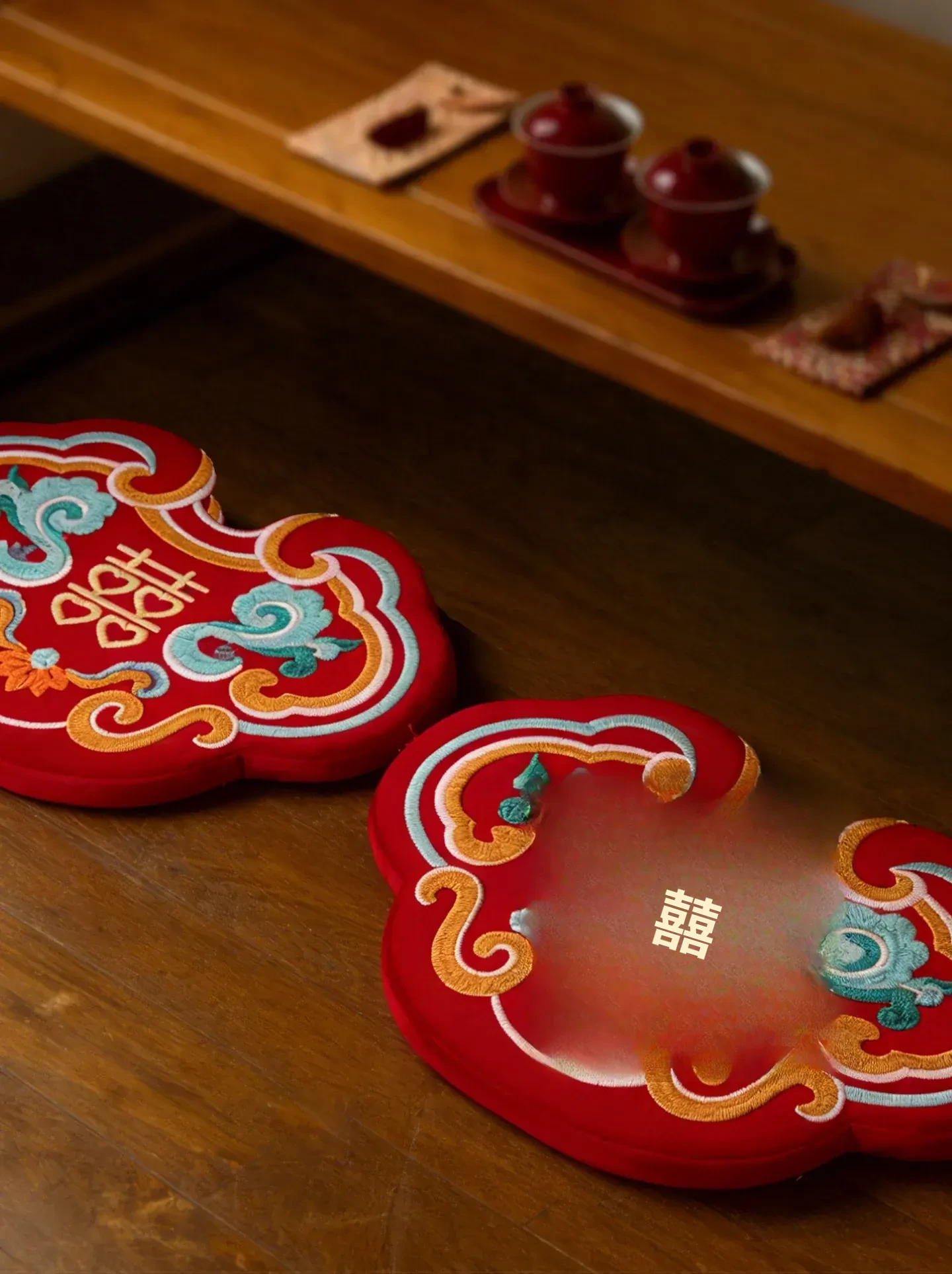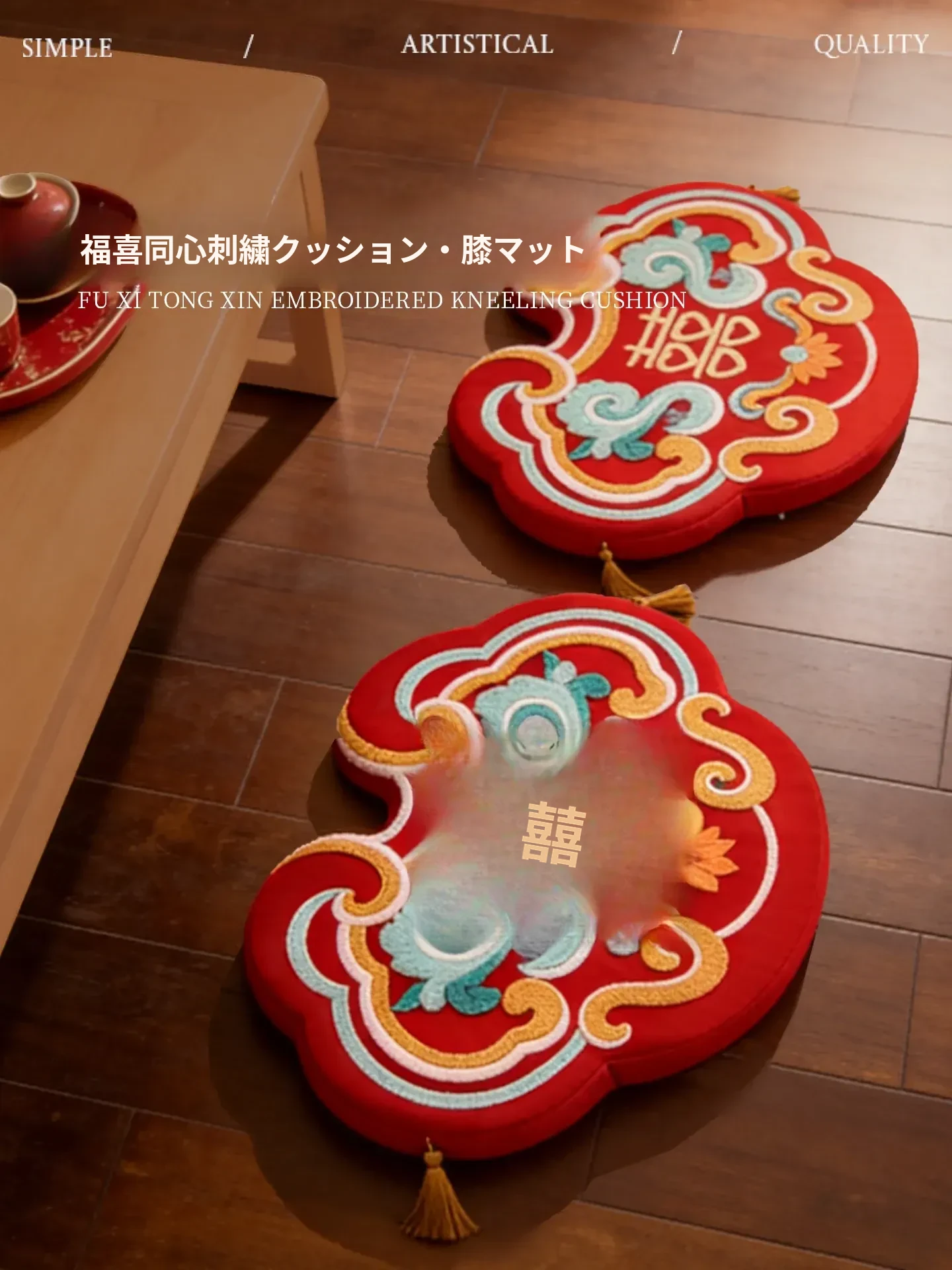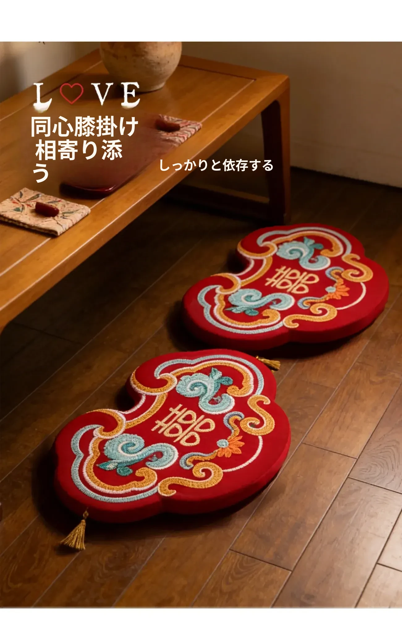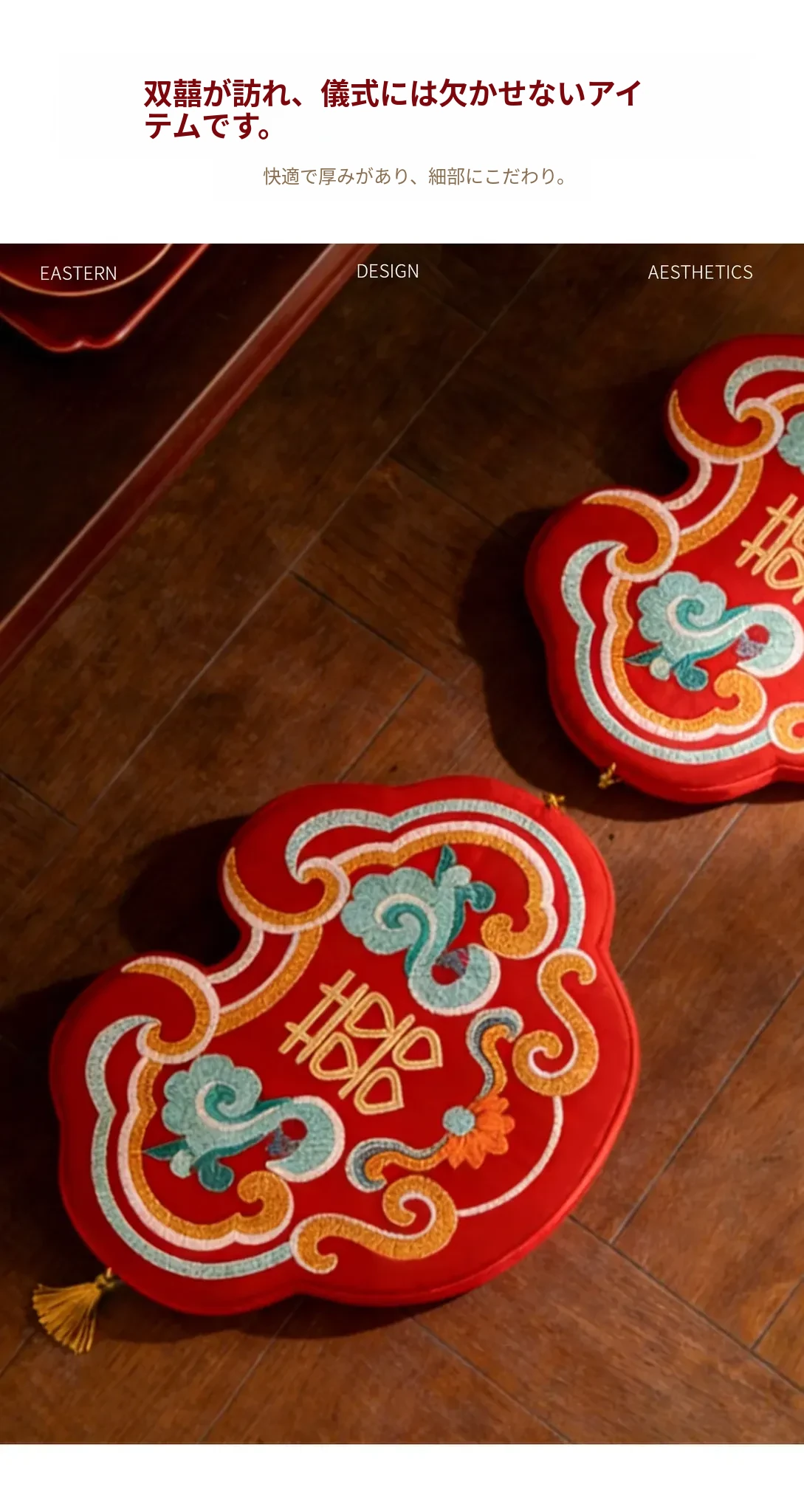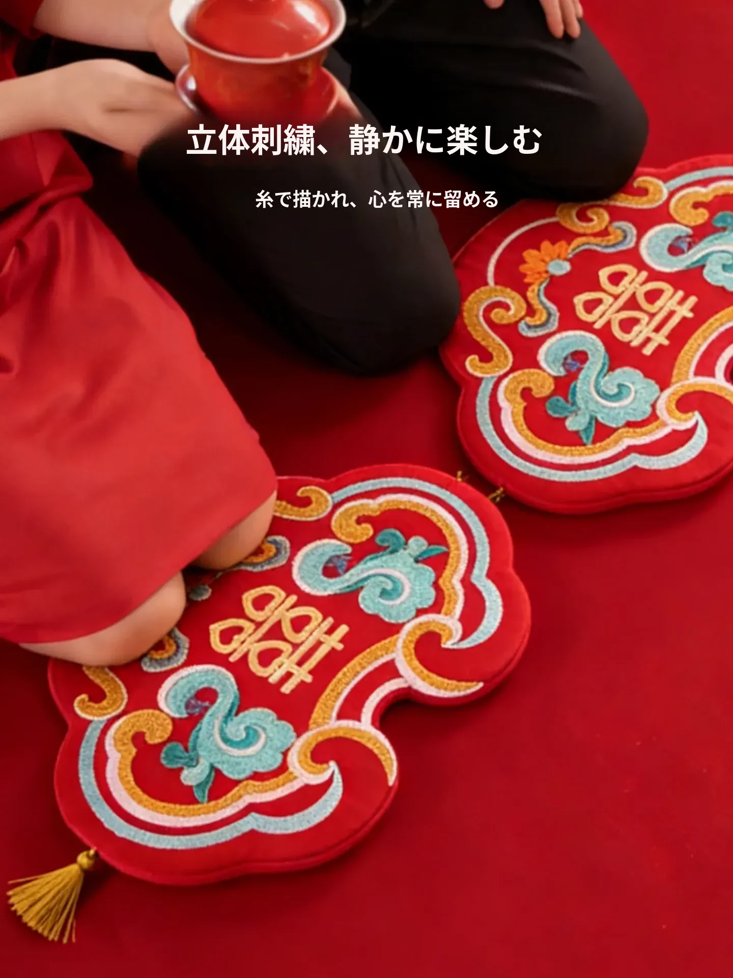 中式結婚祝いの喜字デザインの赤い膝立ちマット、華やかな祝いの蒲団、楽に座れるソファ代わりの地面用クッション、結婚準備や新年の必需品にぴったり!