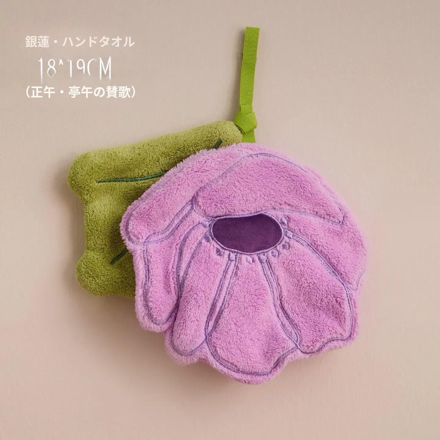 銀蓮アップリケ刺繍ハンドタオル 18*19cm