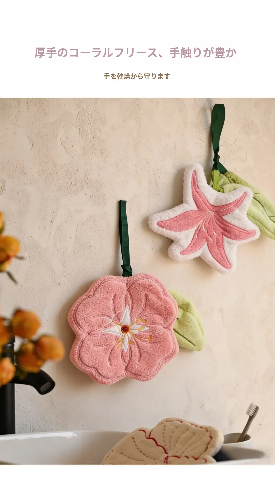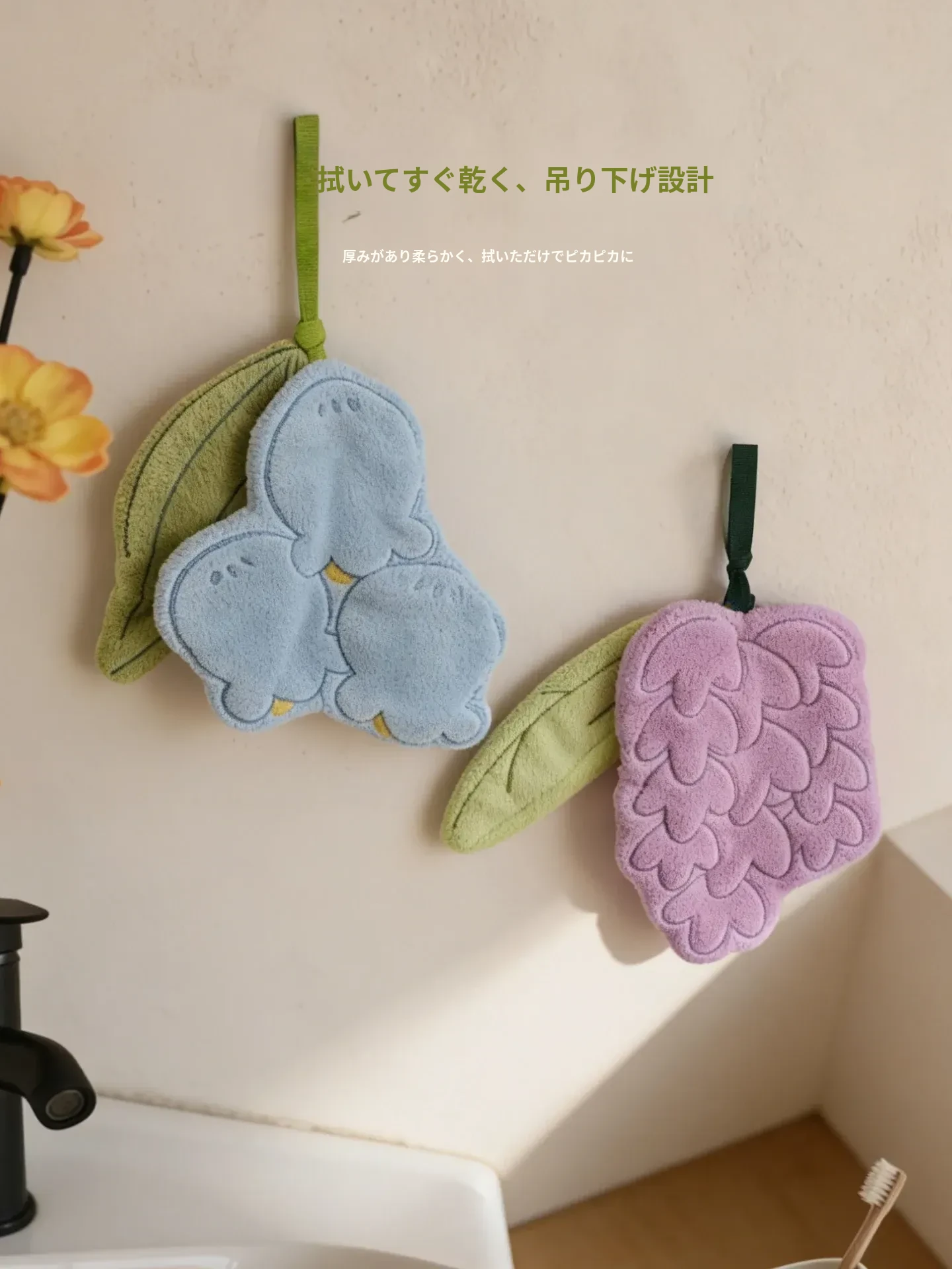 かわいいハンドタオル 持ち運び便利!高吸水・厚手デザインの衛生的なキッチン・トイレ用タオル。ギフトにも最適なおしゃれなアイテム!