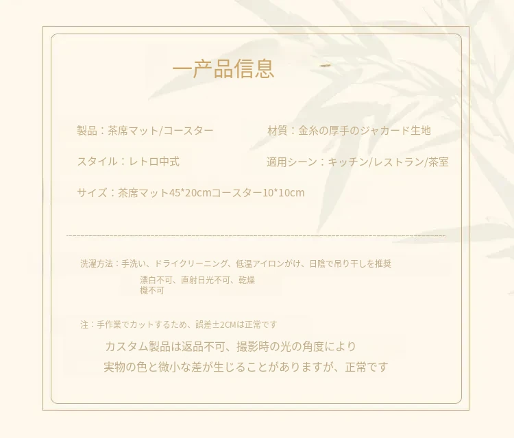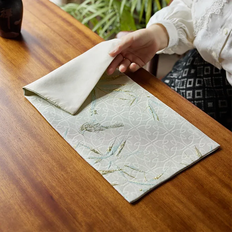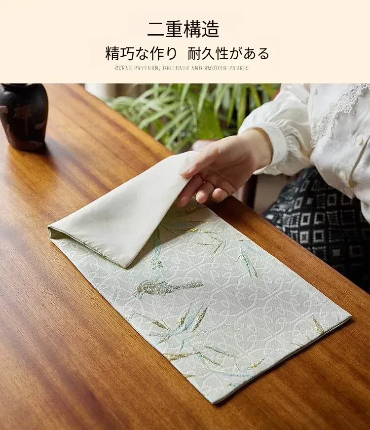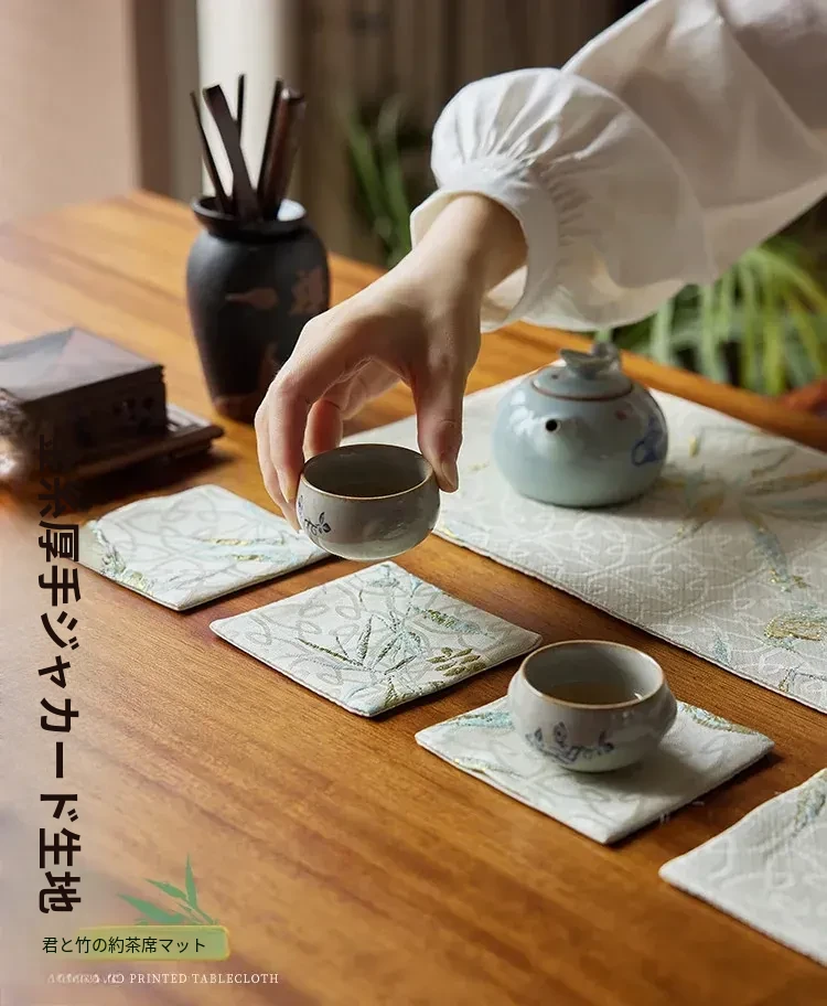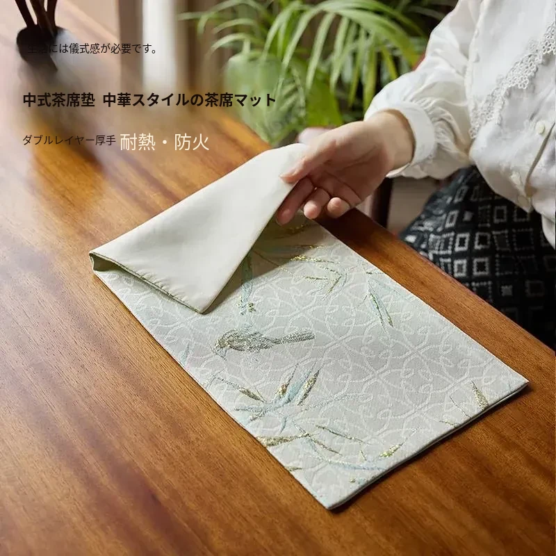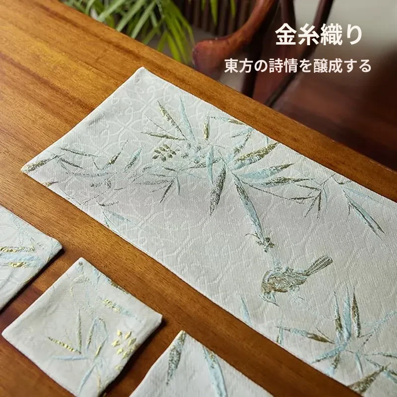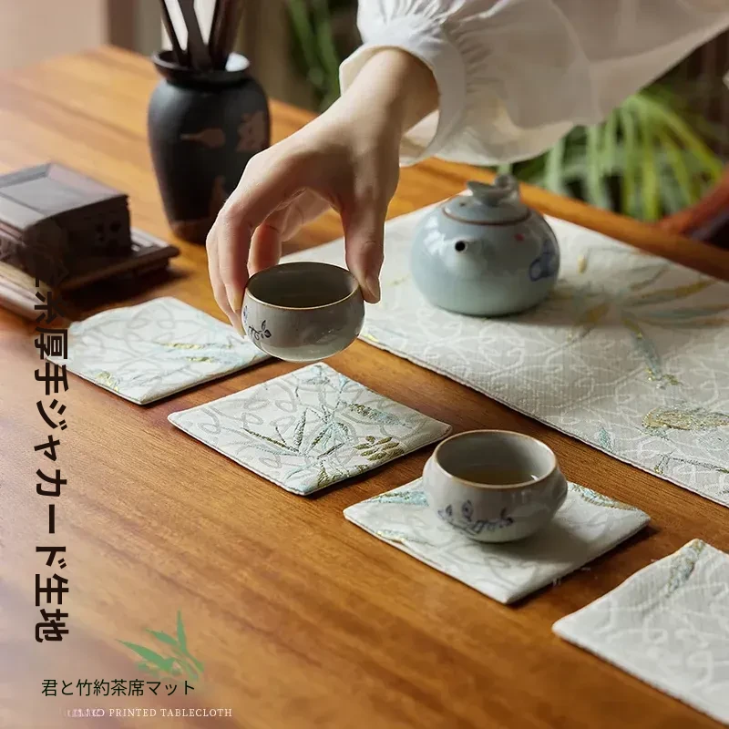 新中式乾燥式茶席用テーブルクロス - 禅の雰囲気漂う刺繍デザイン!防水・断熱機能付き、ティータイムを優雅に演出する茶卓布と茶巾、さらにおしゃれなコースターも完備。あなたの茶の時間を特別に!