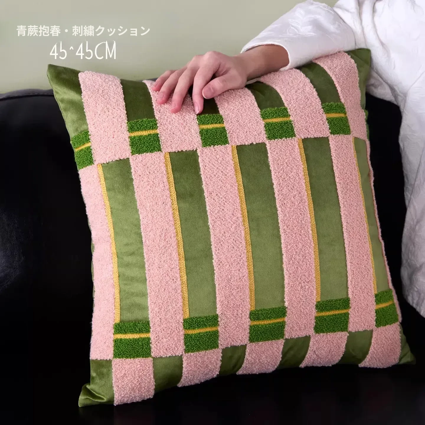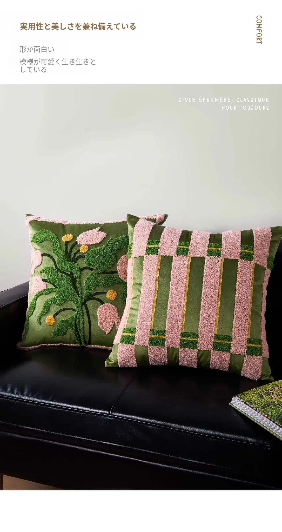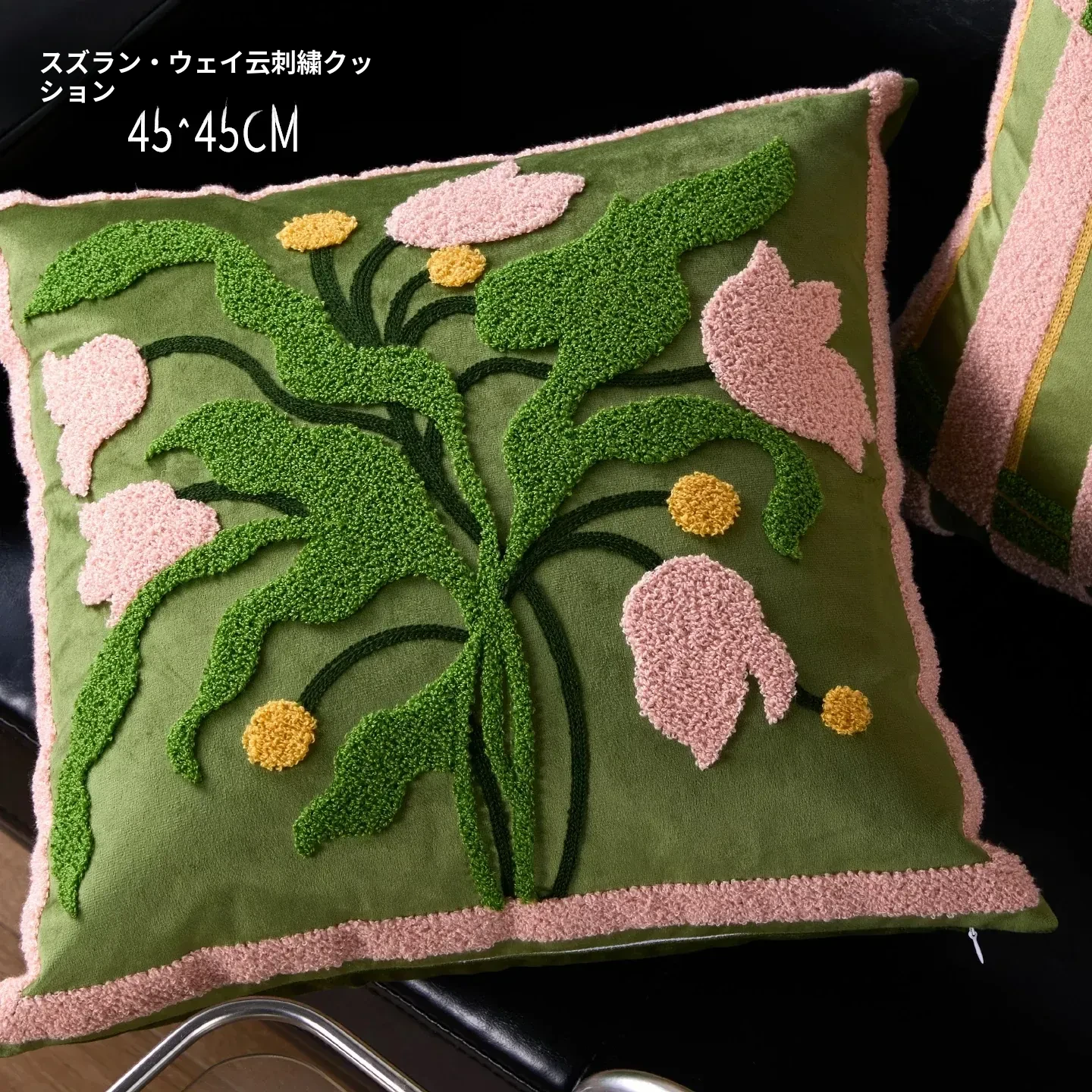 刺繍入り高級感あふれるクッション - ラグジュアリーなインテリアに最適なリビングやベッドサイド用、クッションとクッションカバーがセットになった飾り用アイテム。