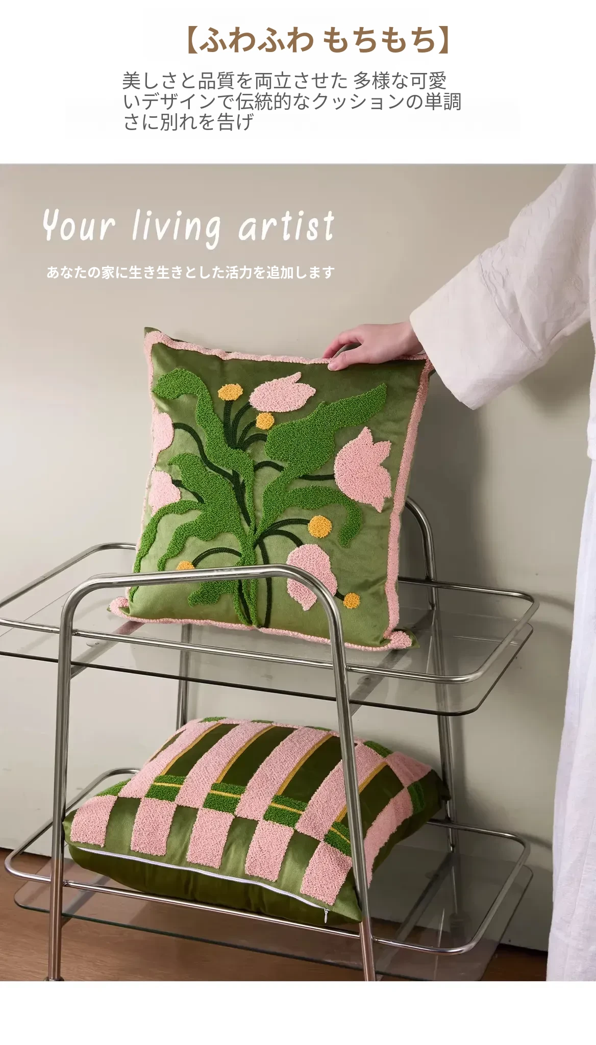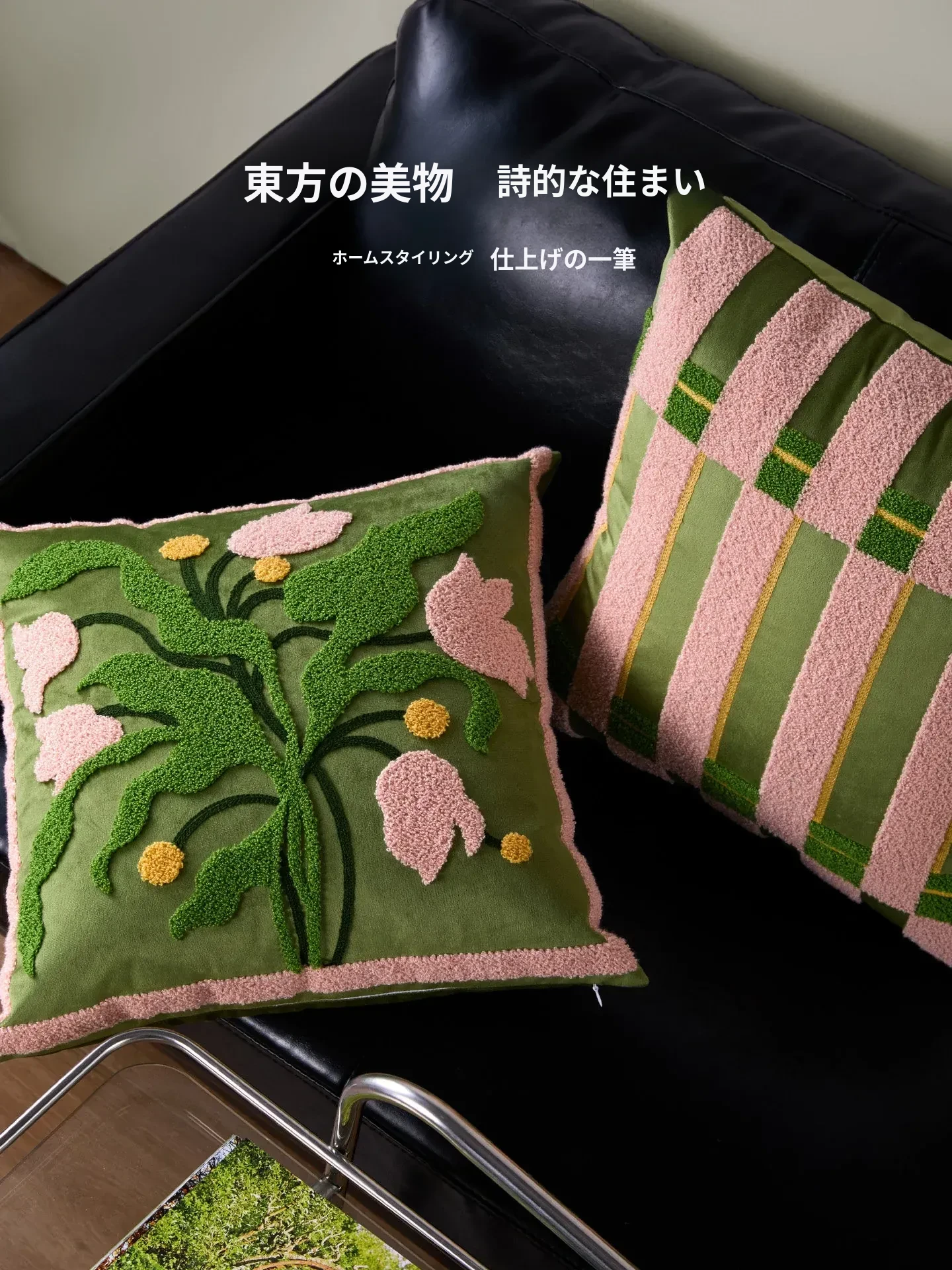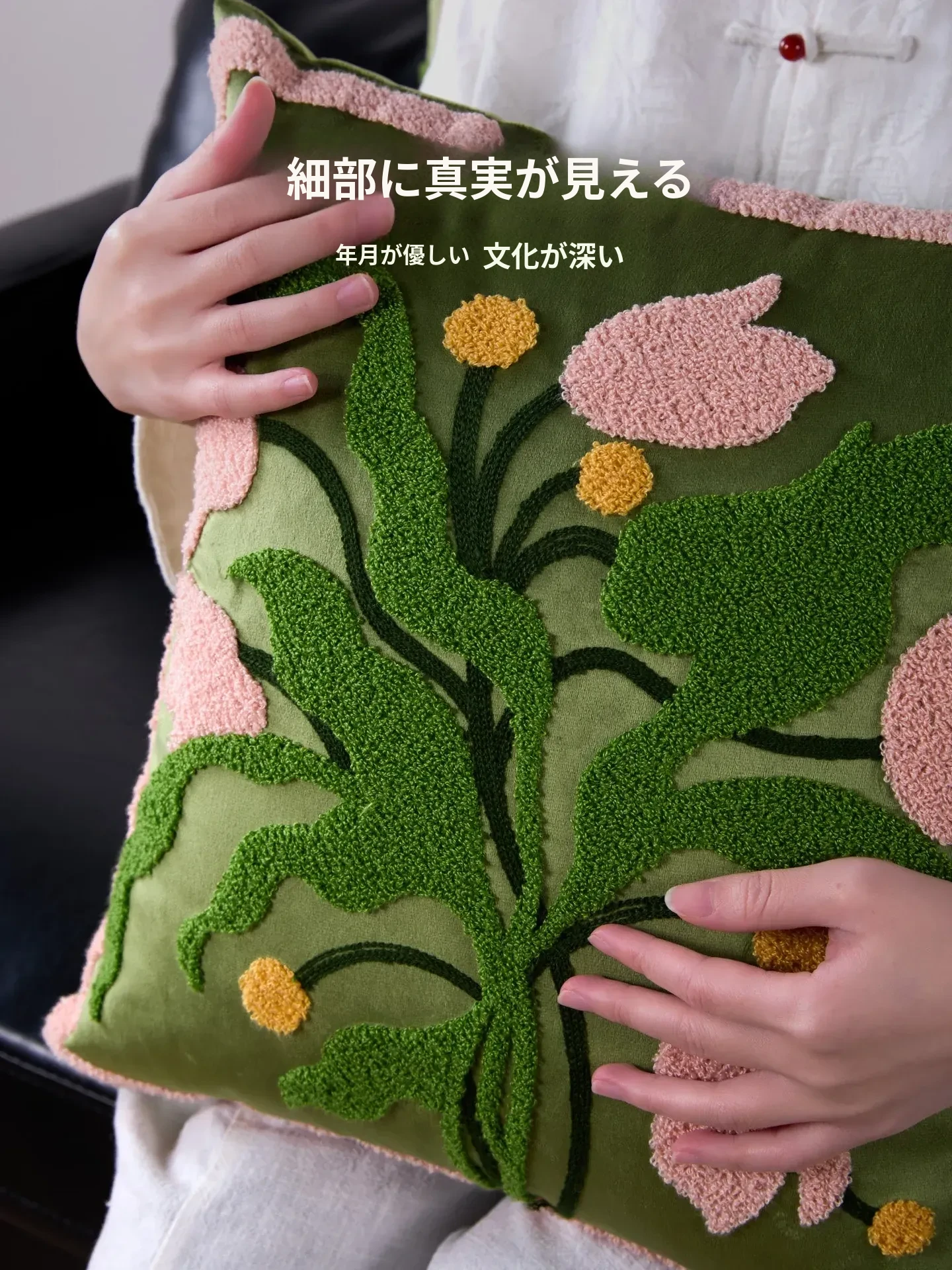 刺繍入り高級感あふれるクッション - ラグジュアリーなインテリアに最適なリビングやベッドサイド用、クッションとクッションカバーがセットになった飾り用アイテム。