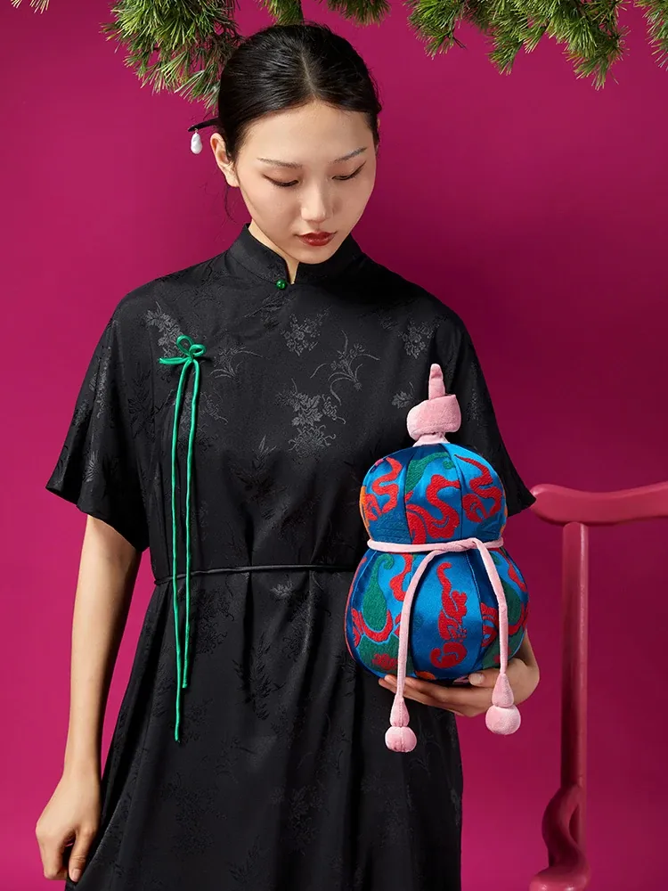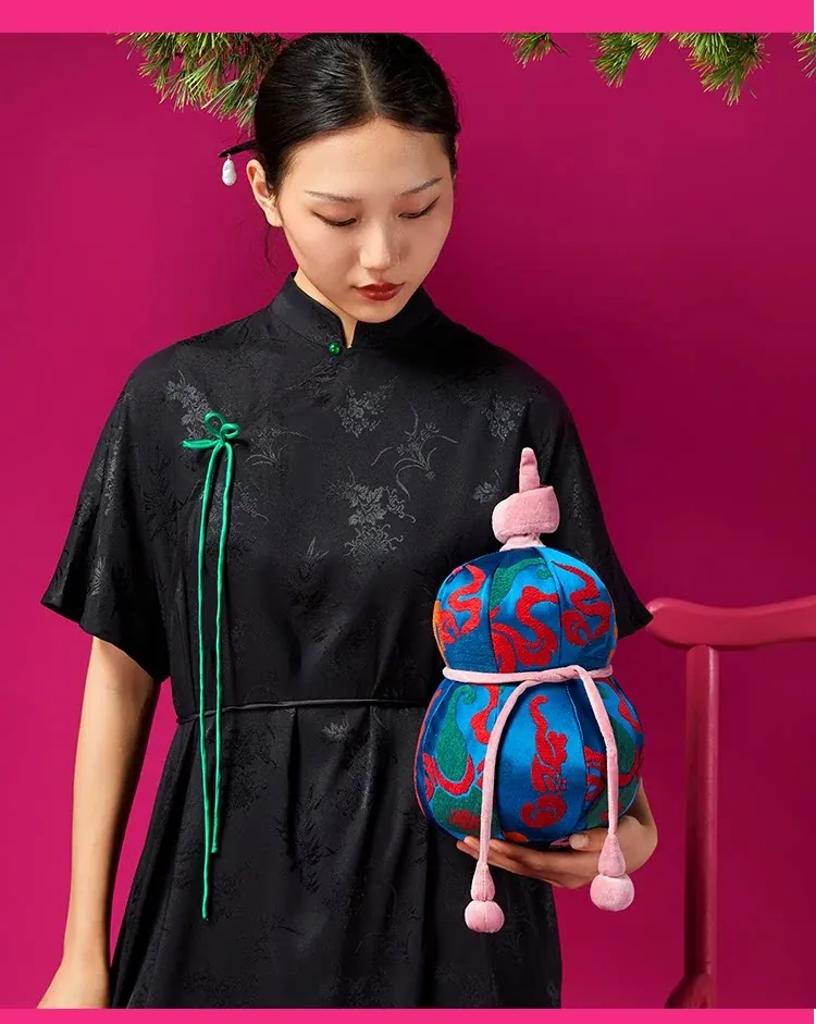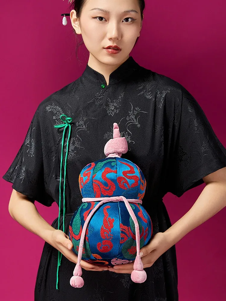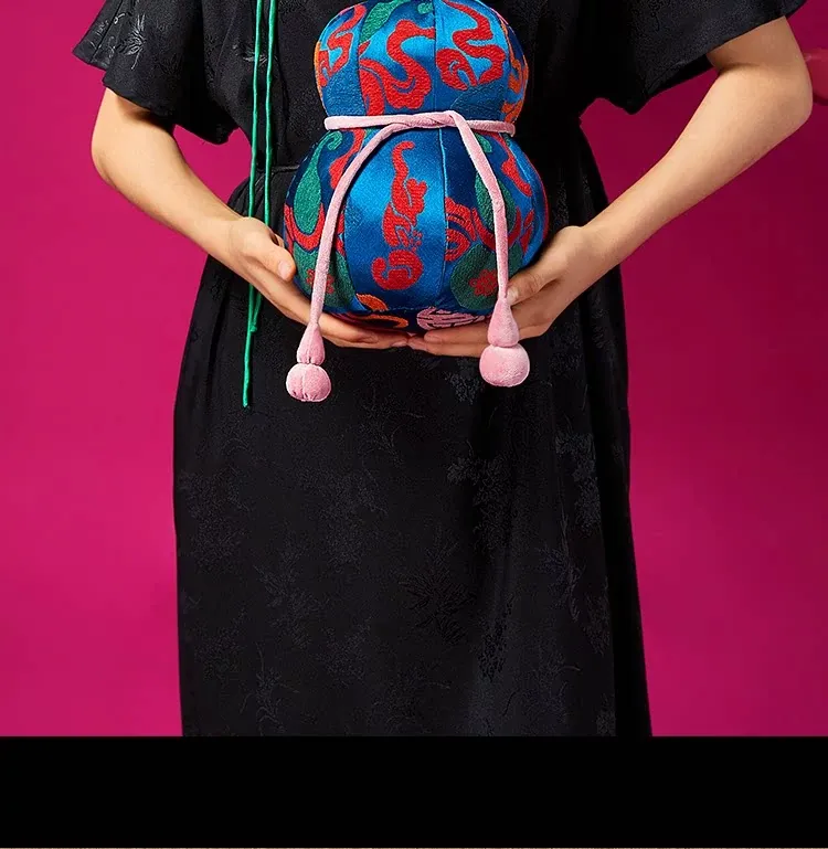 新中式風格のフカフカなひょうたんクッション - リビングソファにぴったりの緑の竹の葉デザインで、幸運を呼び込む!高級感あふれるラグジュアリーな腰枕で、心地よいひとときをお楽しみください。