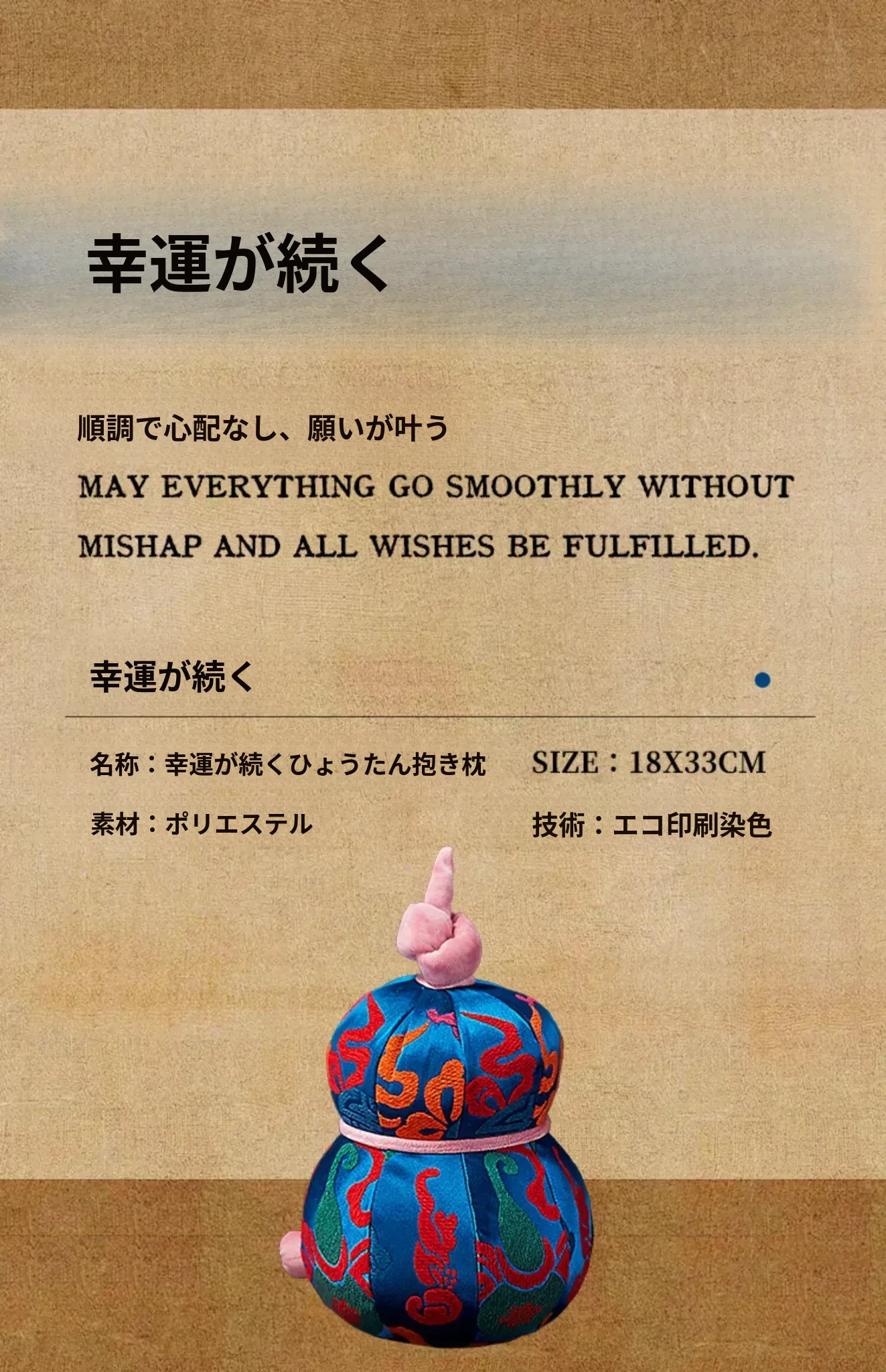 幸運が続くひょうたんクッション