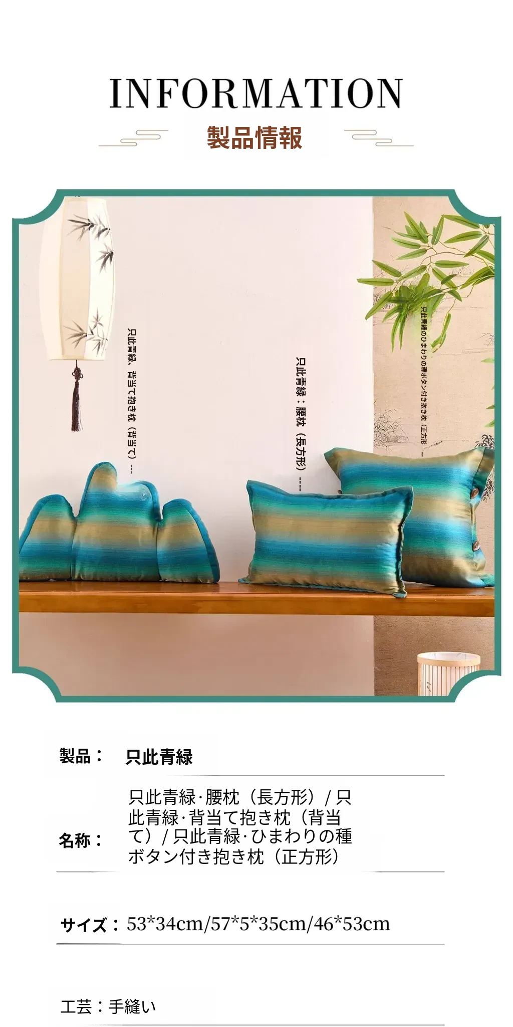 只此青緑の腰枕【53*34cm中身含む】