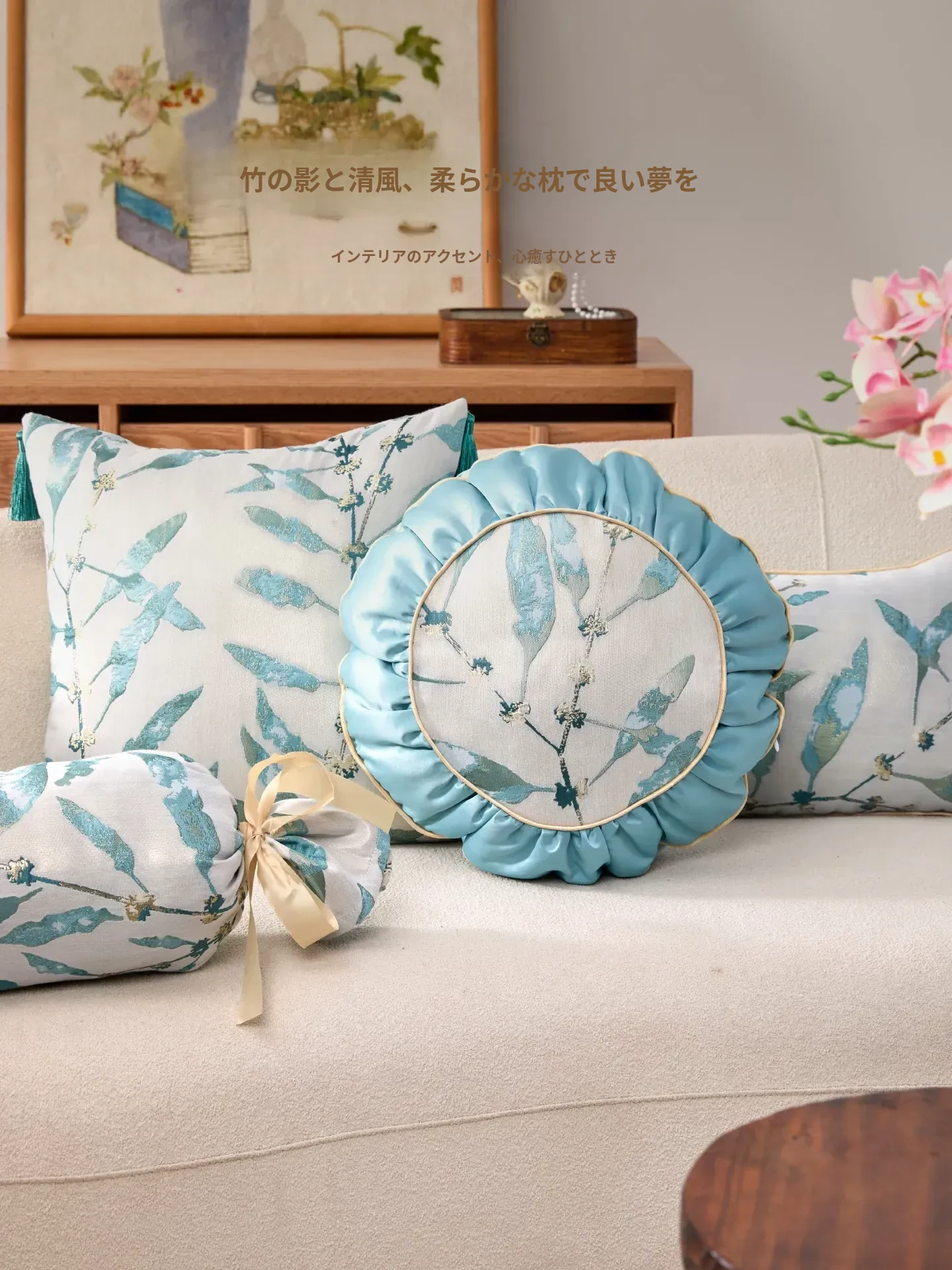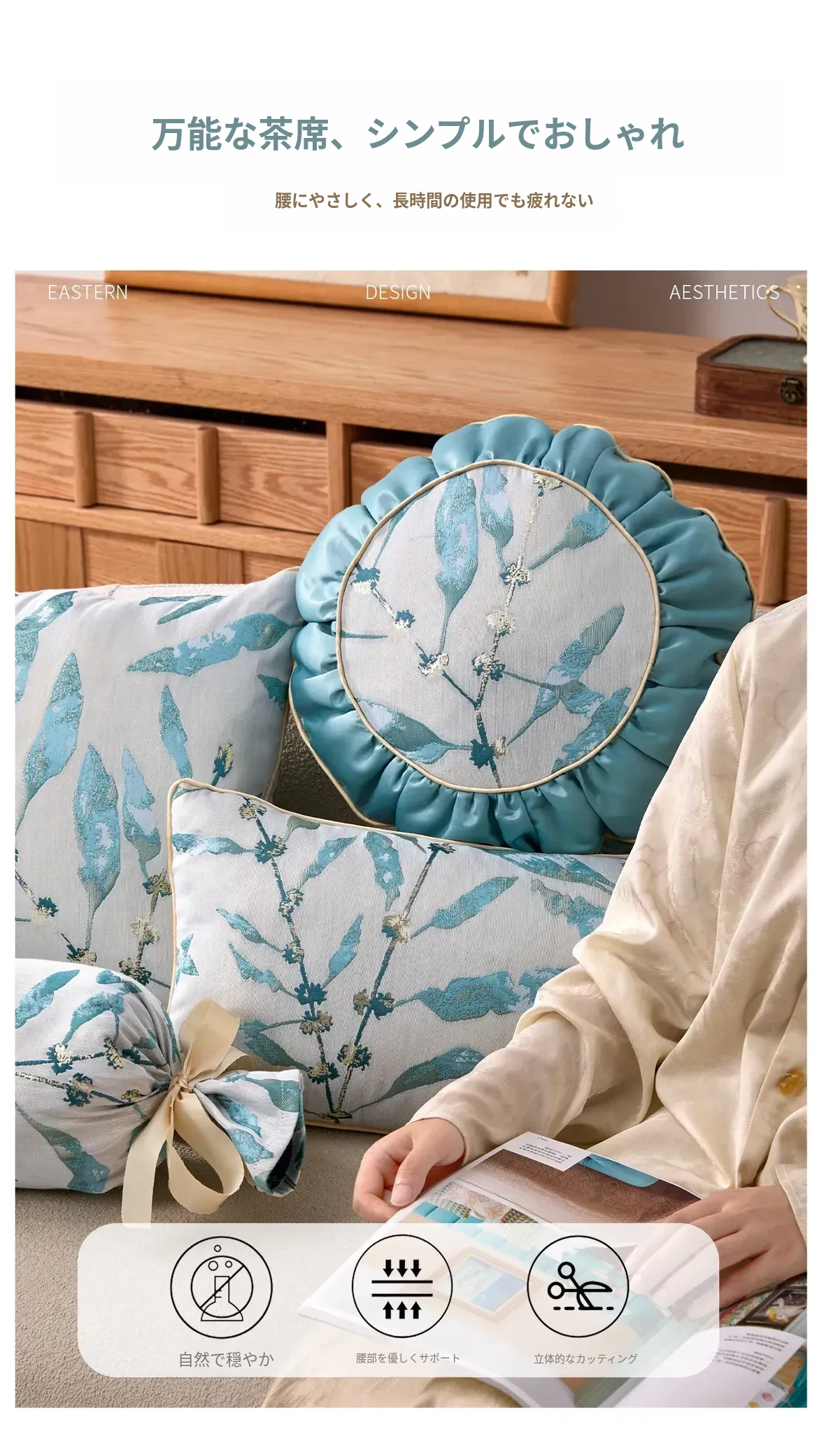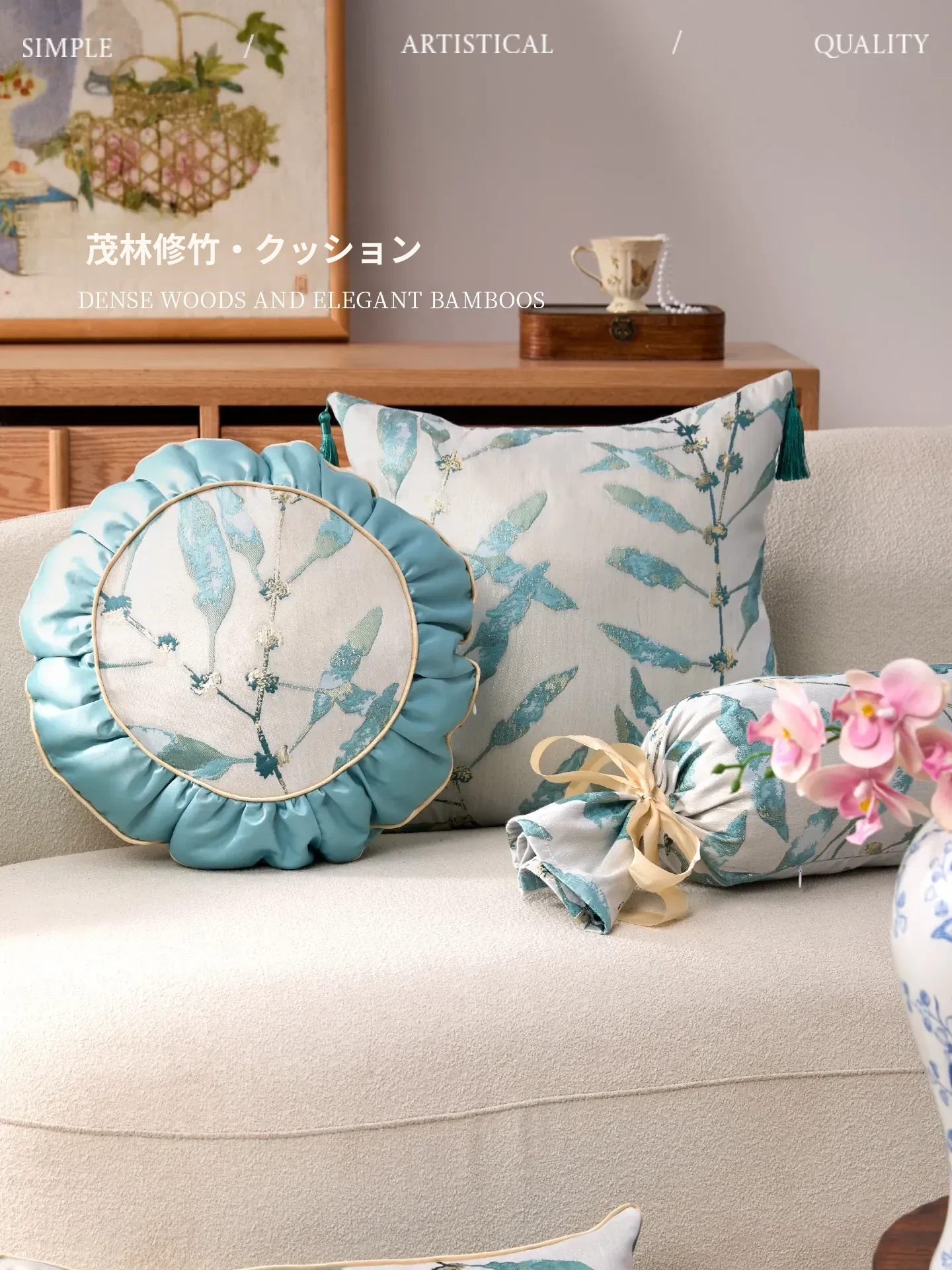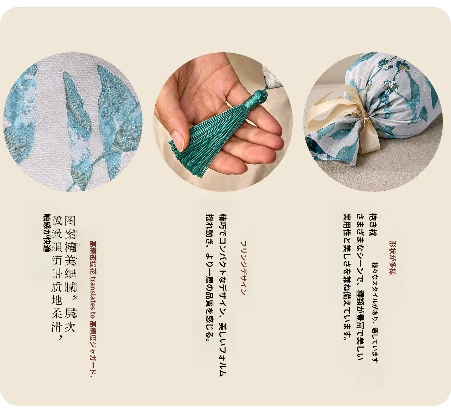 新中式スタイルのロングクッション、円形デザインの豪華なリビングソファ用タッセルクッションカバー、洗練された高級感漂う長方形バッククッション。おしゃれで快適な空間を演出!