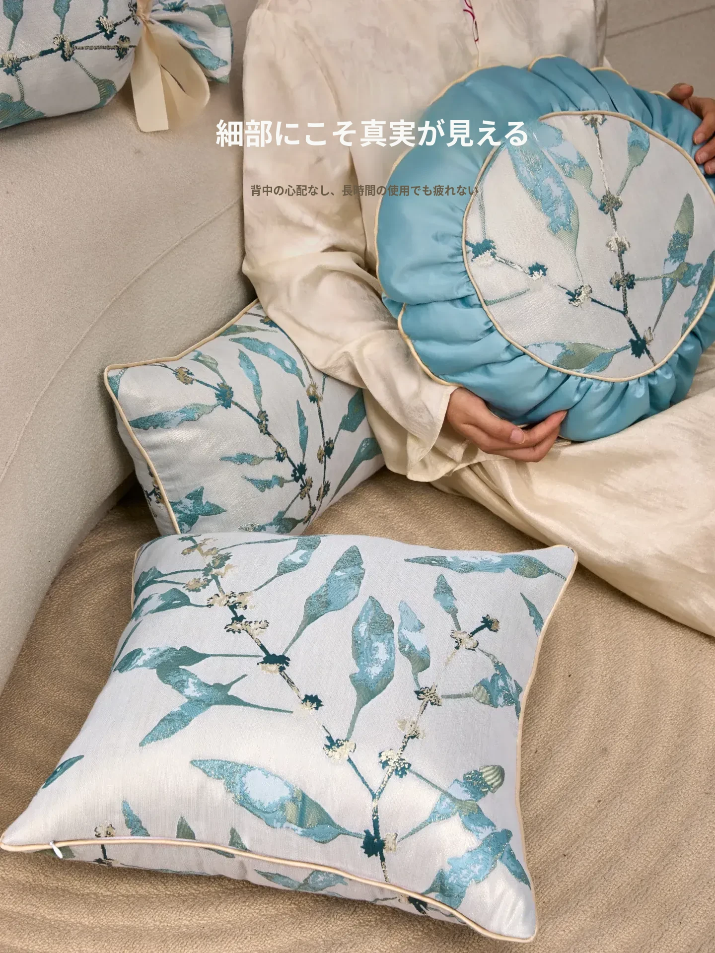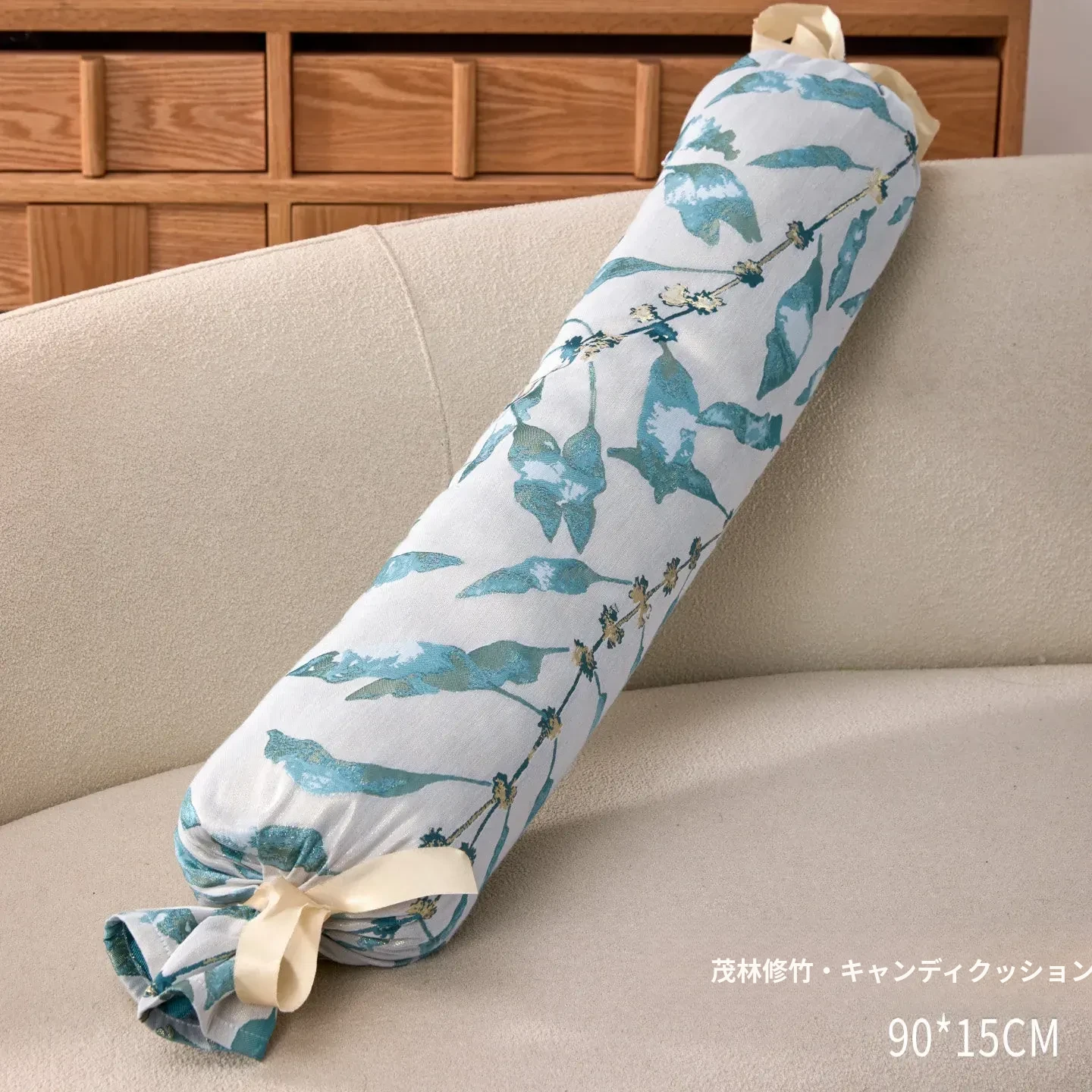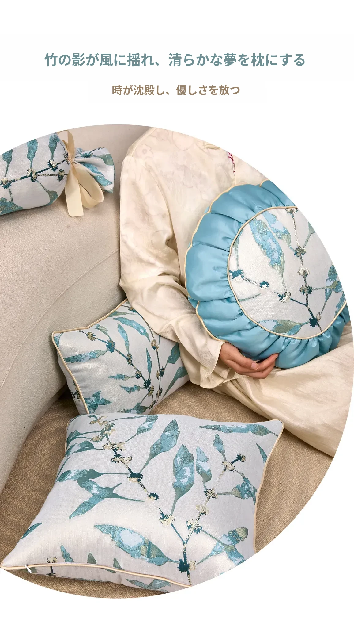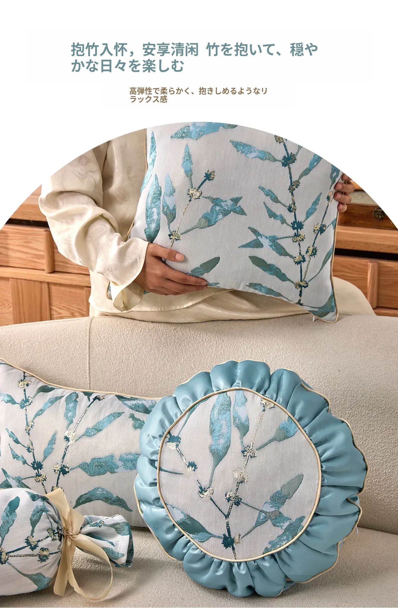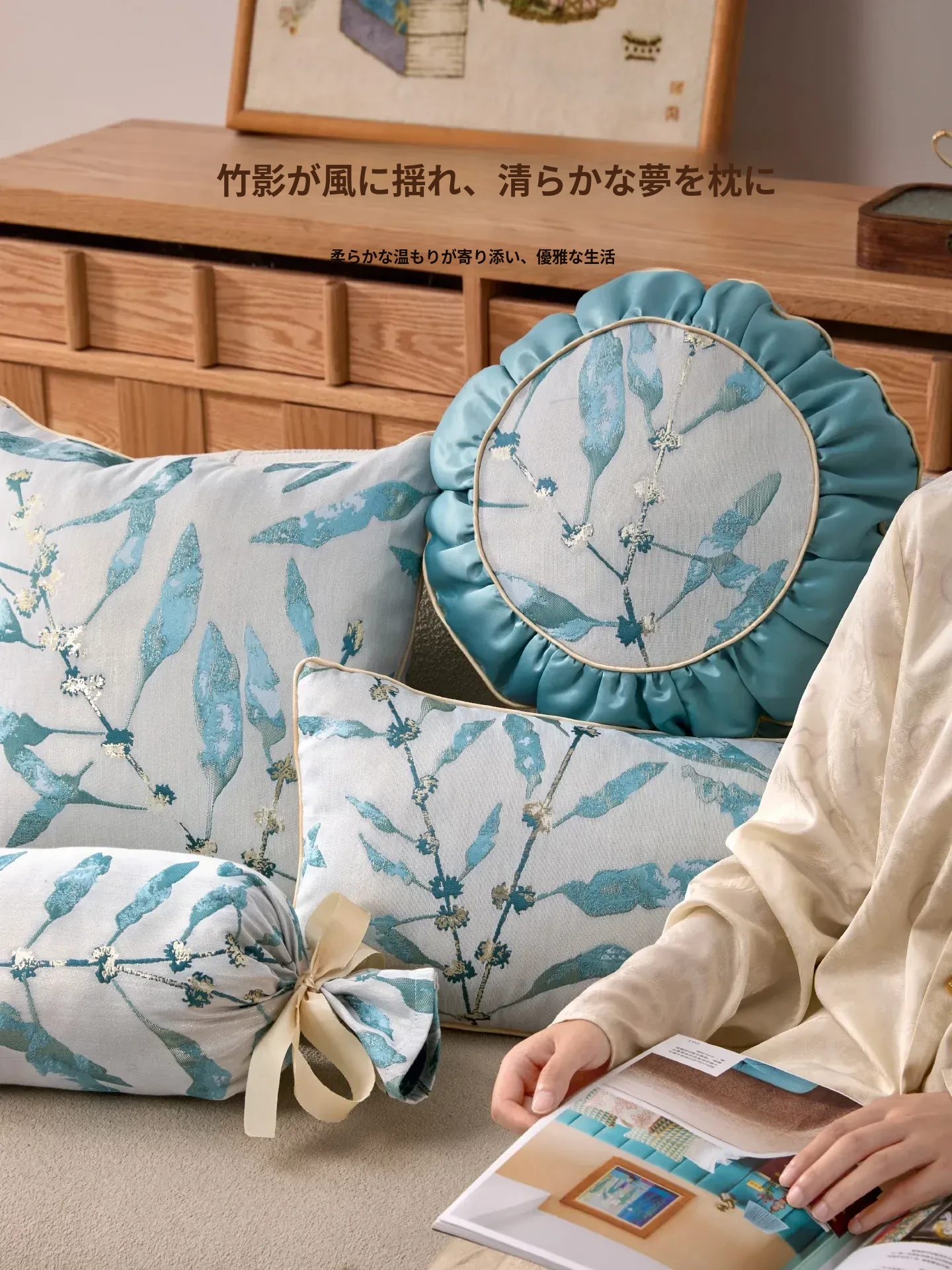 新中式スタイルのロングクッション、円形デザインの豪華なリビングソファ用タッセルクッションカバー、洗練された高級感漂う長方形バッククッション。おしゃれで快適な空間を演出!