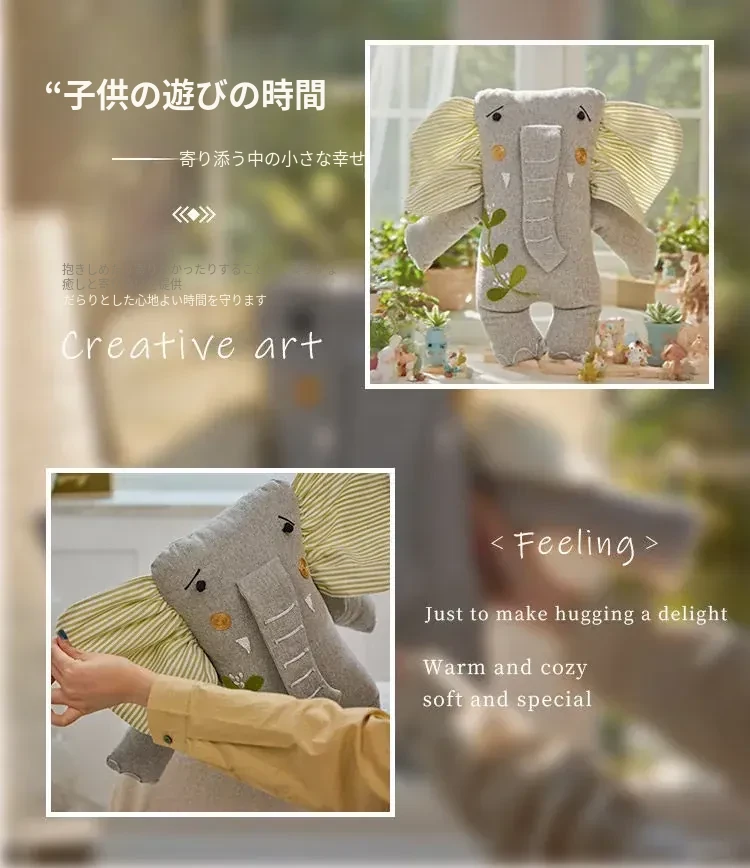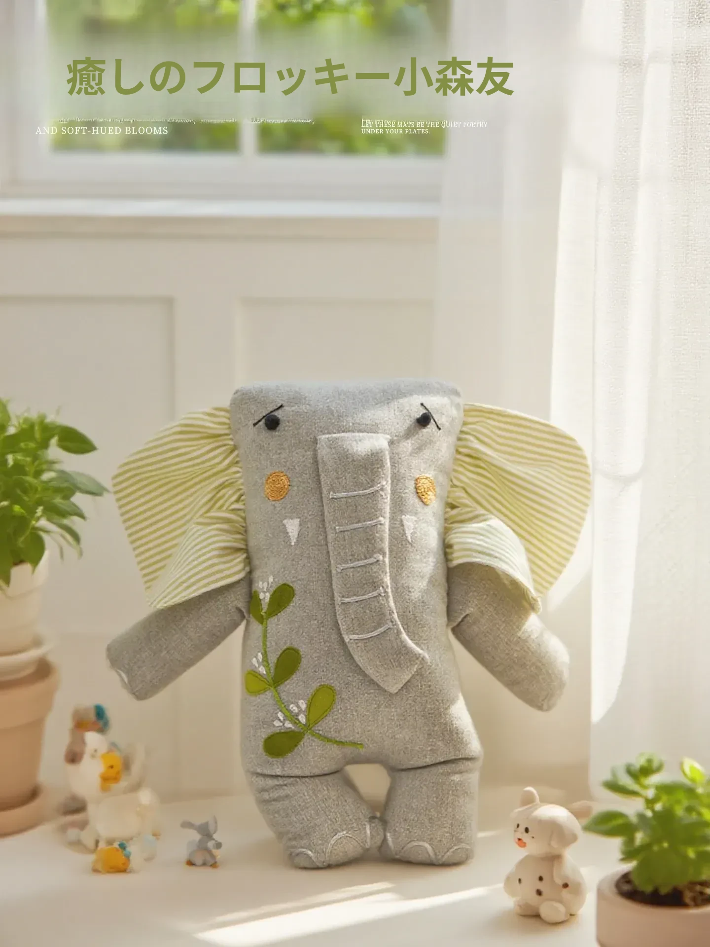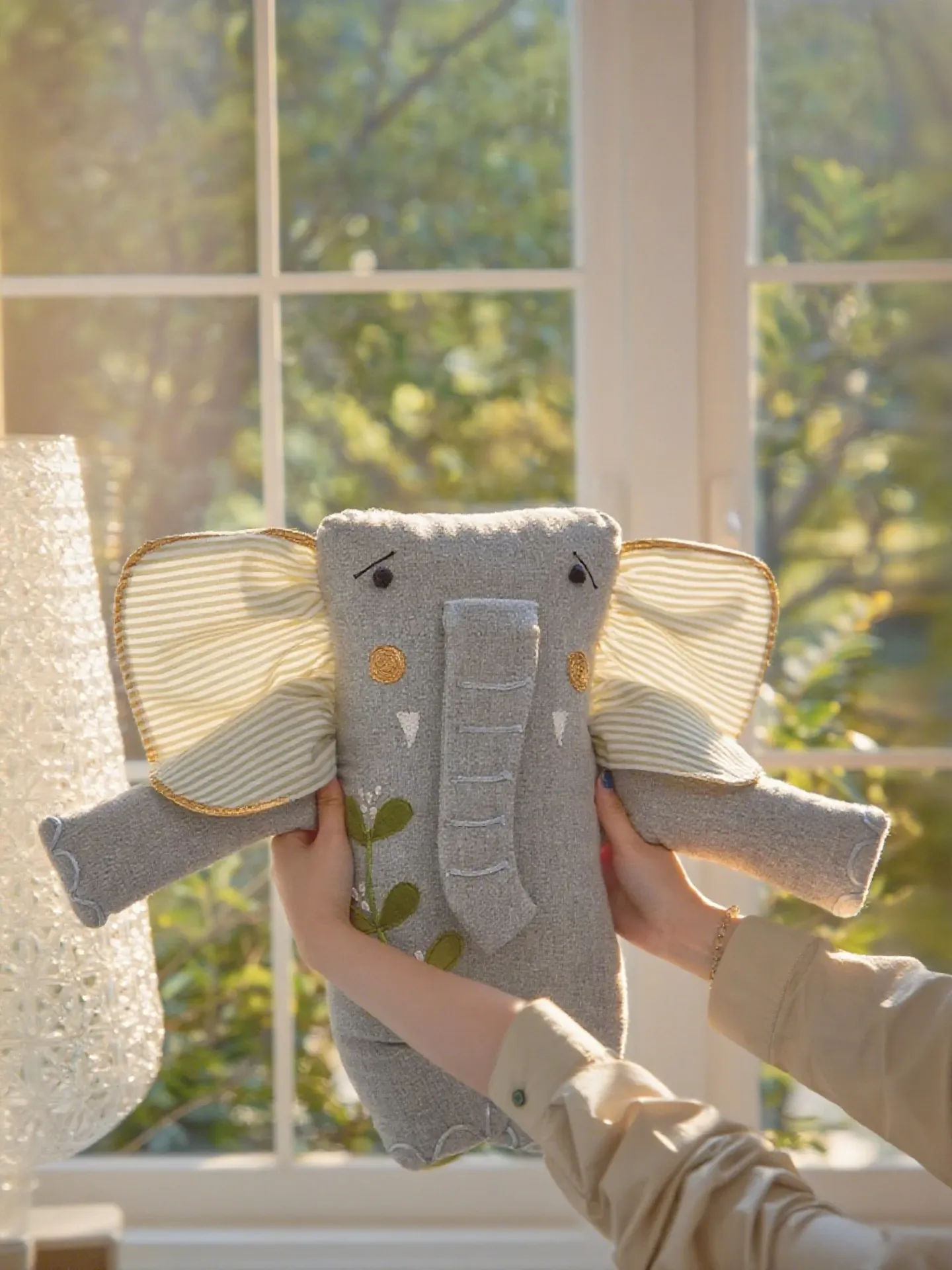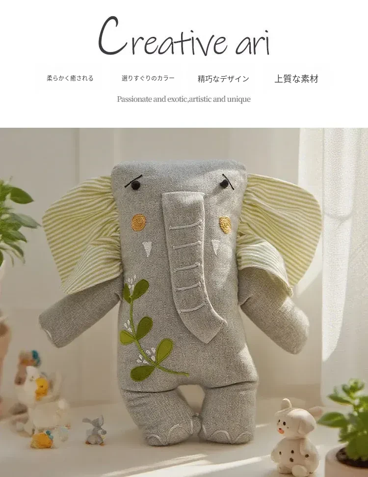 癒し系グレーの象ぬいぐるみクッションカバー - 刺繍入り、リビングやソファにぴったり!おしゃれな雰囲気を演出する腰枕兼背もたれ。心地よい癒しをあなたの空間に。