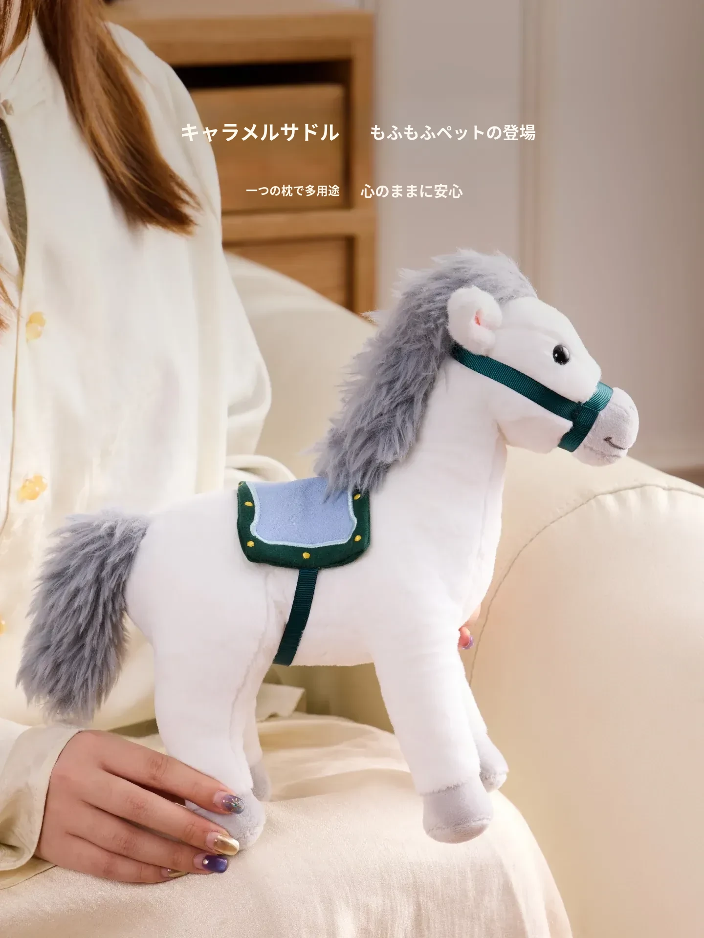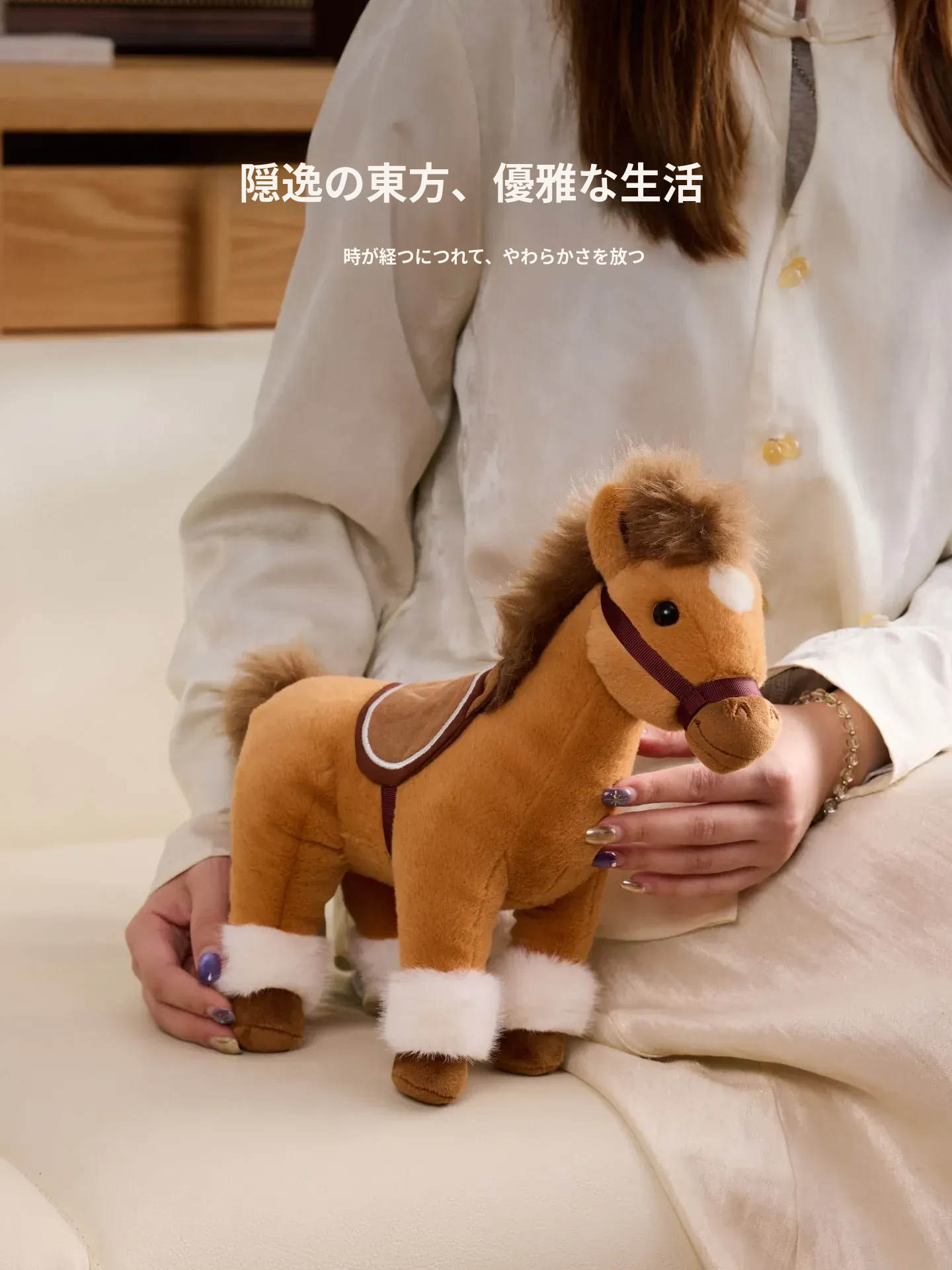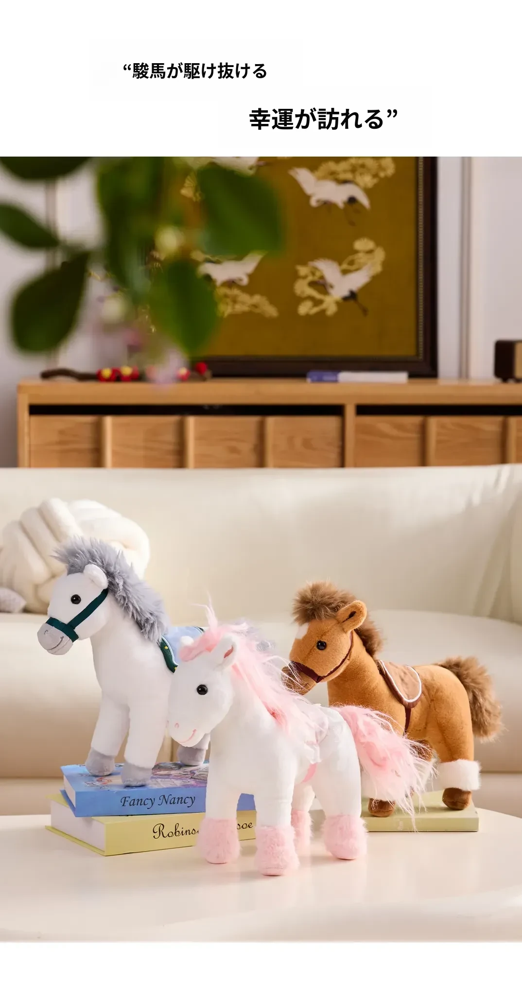 馬年の幸運キャラクターぬいぐるみ - おしゃれな玄関やリビングにぴったり!小さな馬のデザインが魅力的なクッションやインテリア小物として、年会のギフトにも最適です。あなたの家を華やかに彩るアイテム!