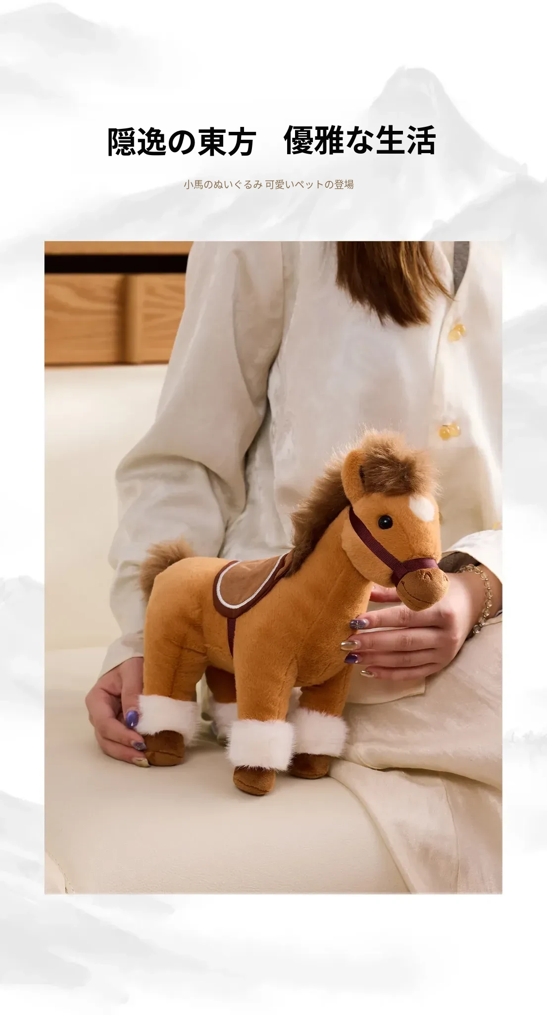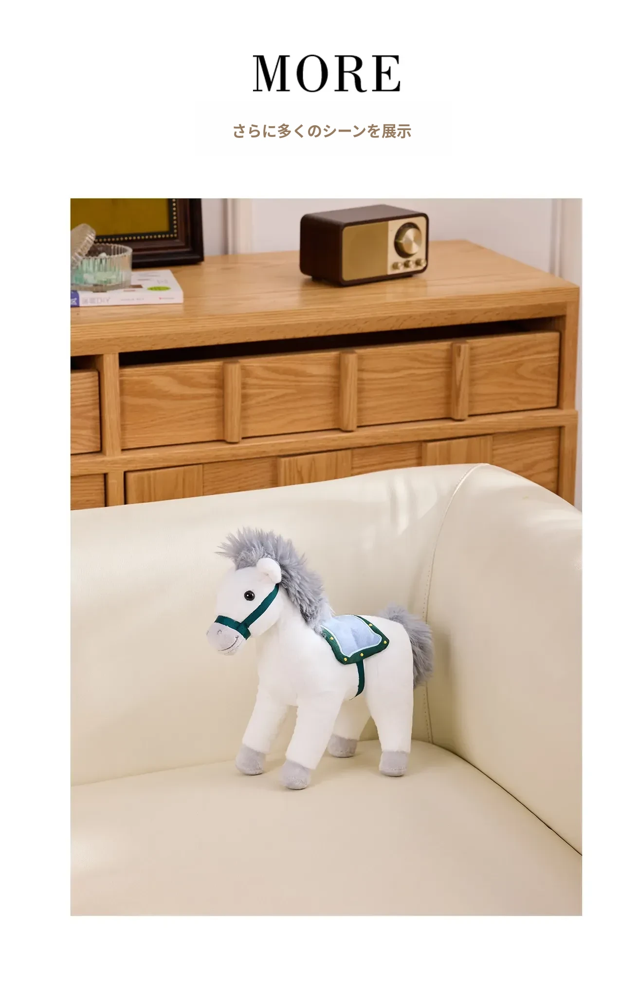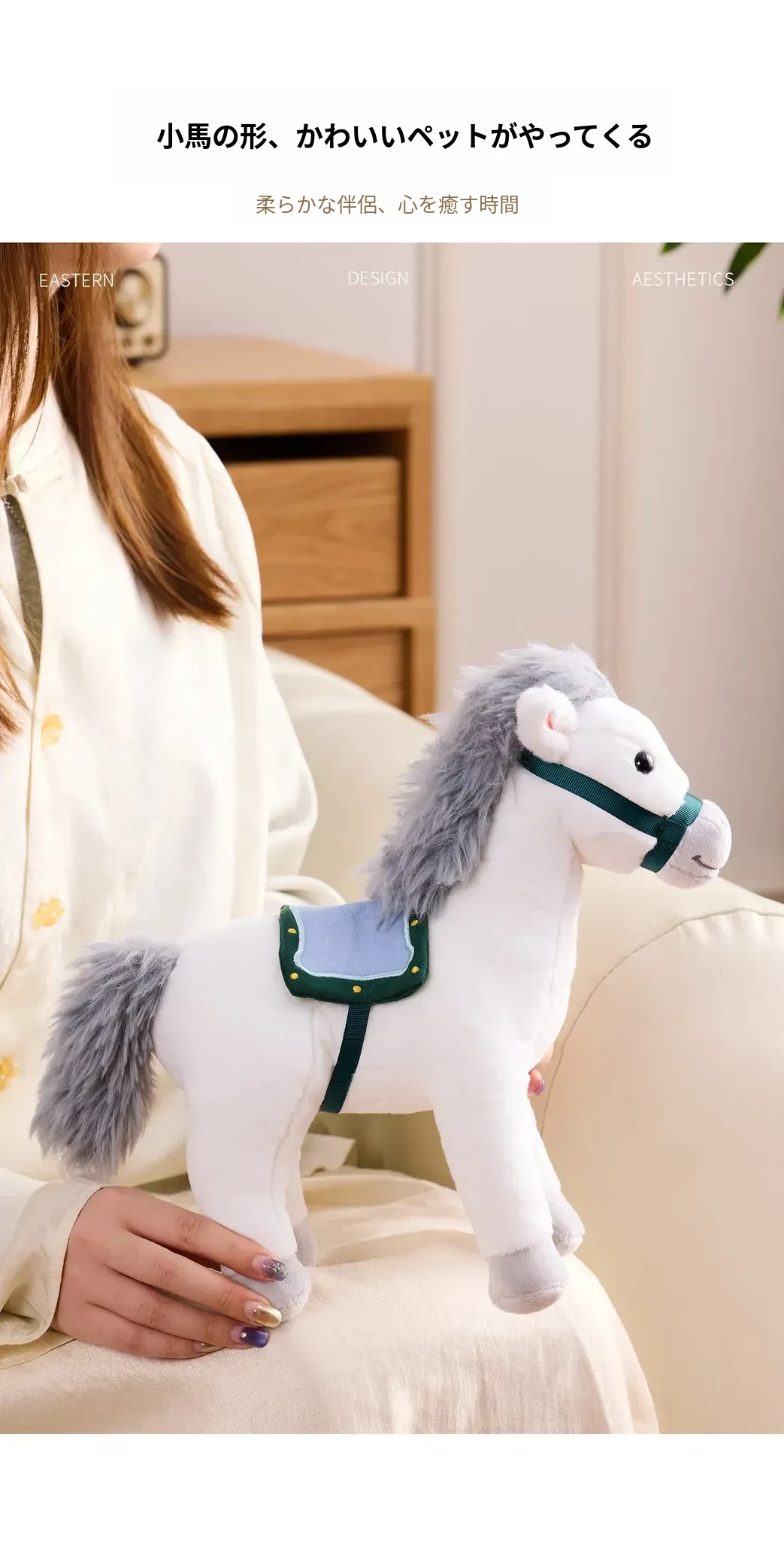 馬年の幸運キャラクターぬいぐるみ - おしゃれな玄関やリビングにぴったり!小さな馬のデザインが魅力的なクッションやインテリア小物として、年会のギフトにも最適です。あなたの家を華やかに彩るアイテム!