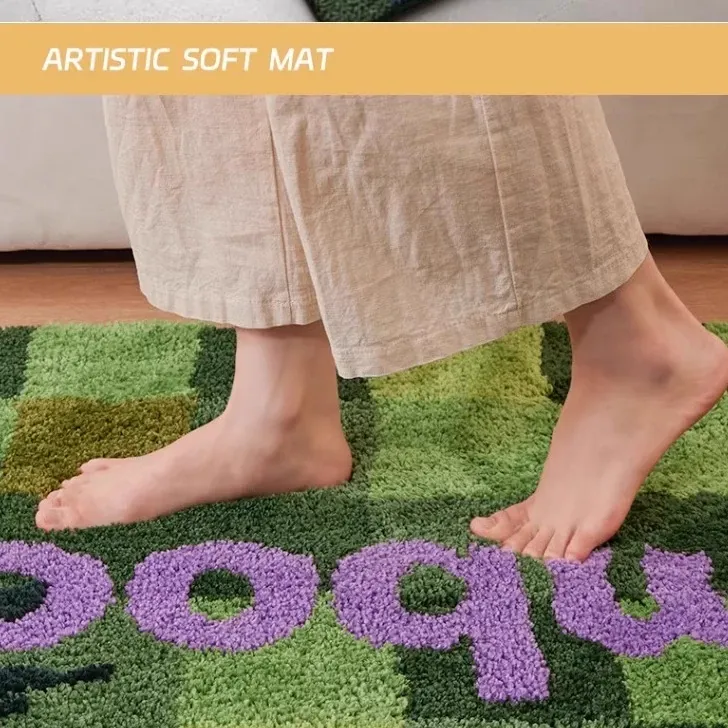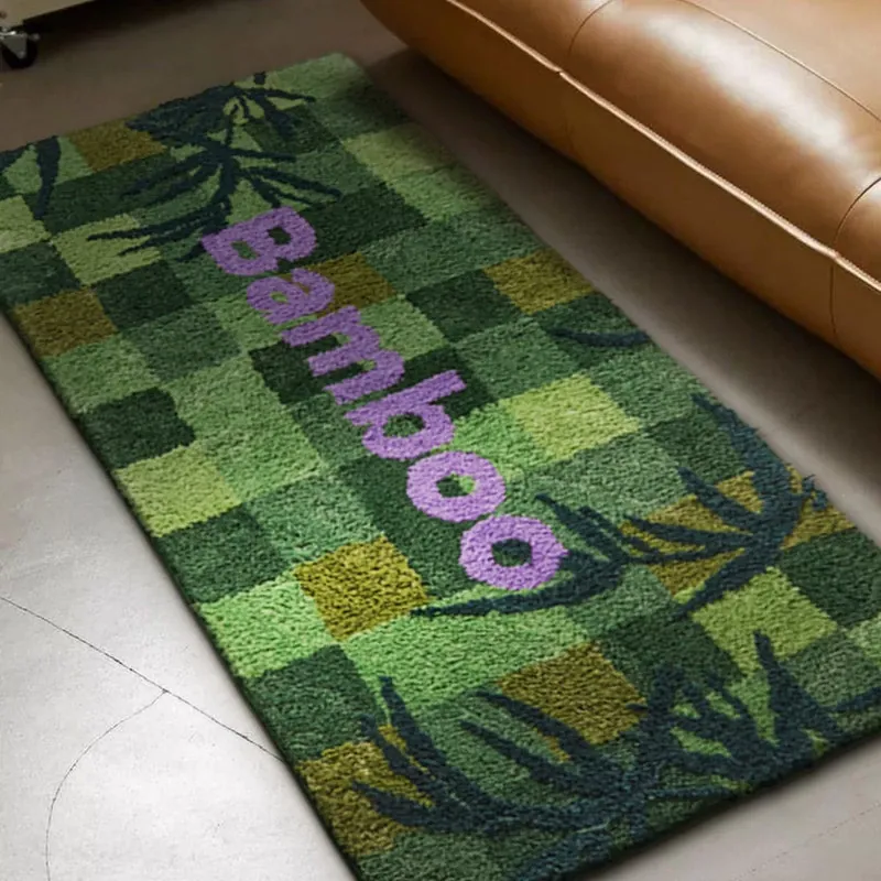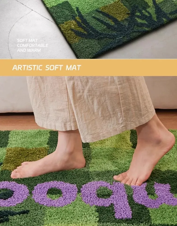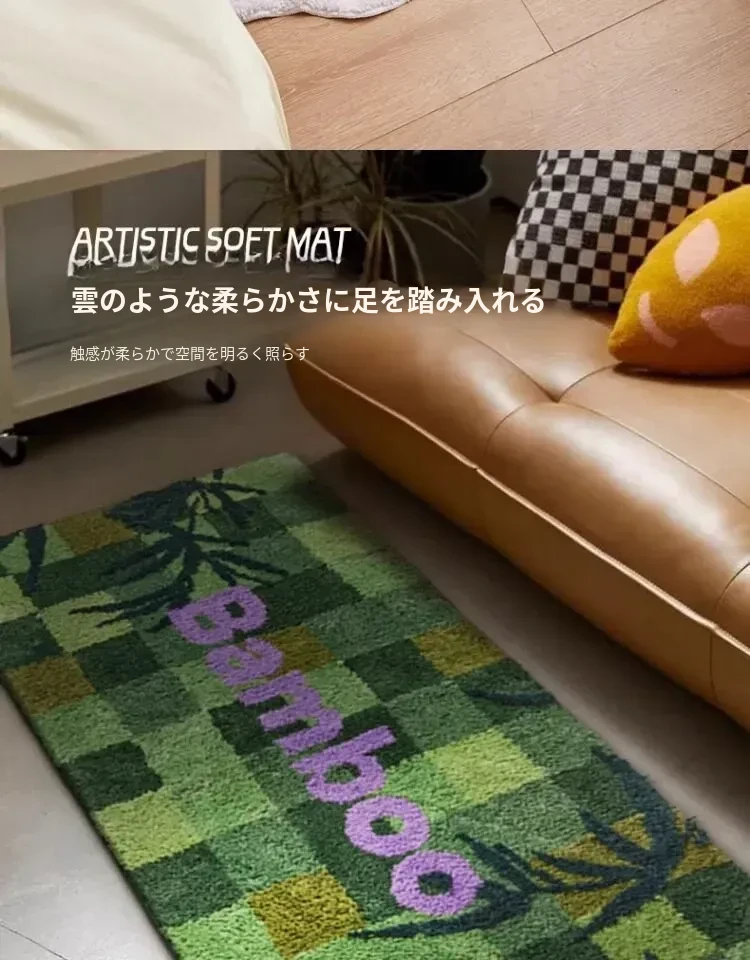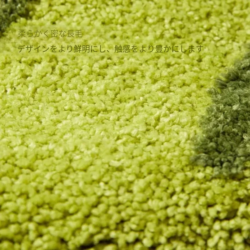 高級感溢れるグリーンのベッドサイドカーペット - ふわふわの防滑マットで、主寝室や玄関にぴったり!快適さとスタイルを兼ね備えたロングストリップデザイン。お部屋を素敵に演出します!