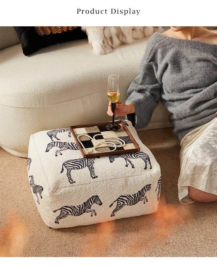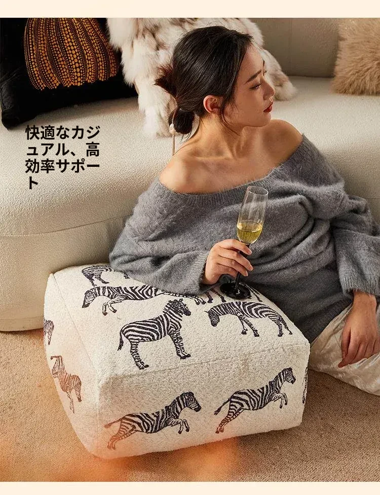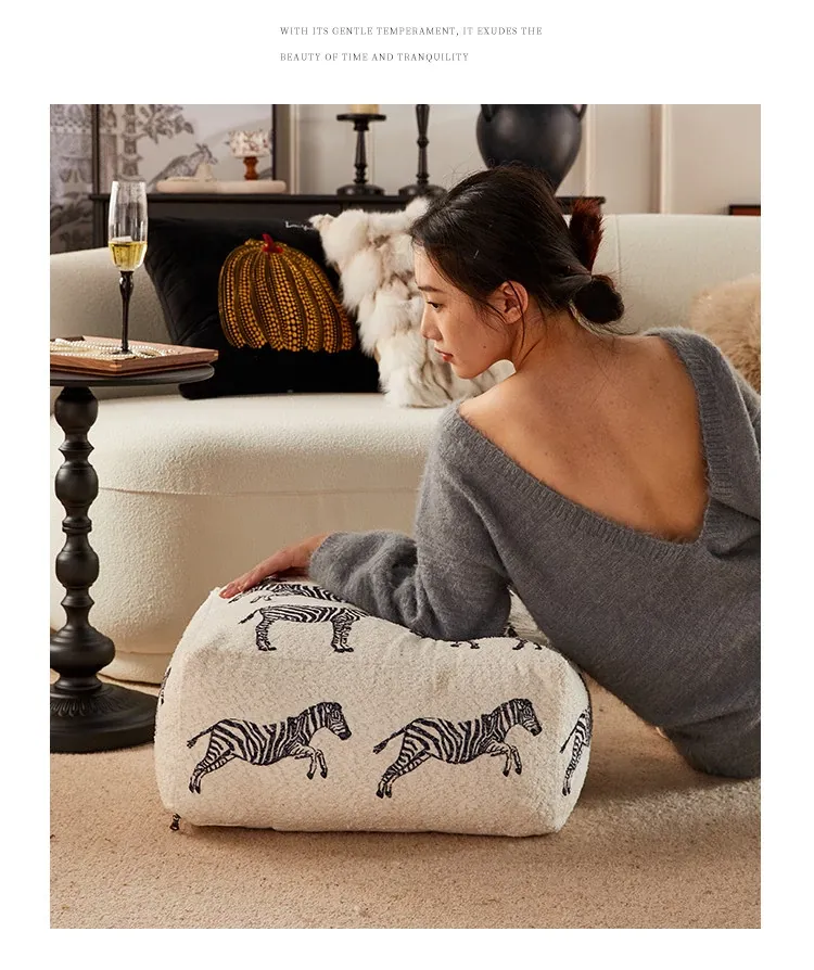 新中式スタイルの動物柄ゼブラクッション!リビングルームにぴったりのソファ用スツール、リラックスできるカジュアルな低いスツール。ホワイトの窓辺に最適な座布団で、心地よいひとときをお楽しみください!