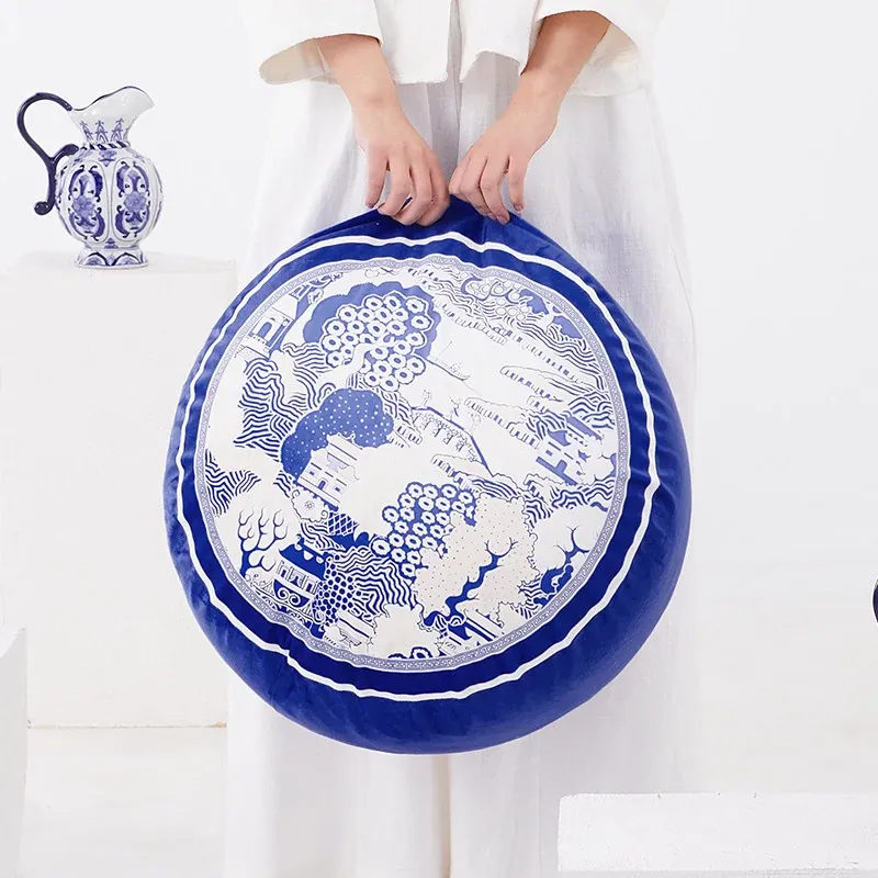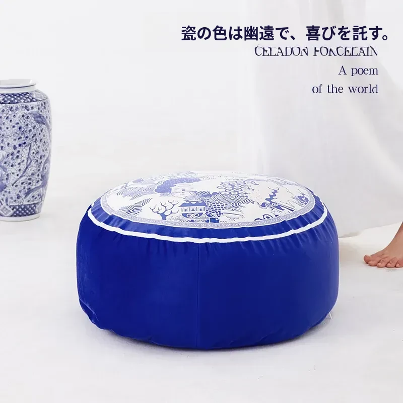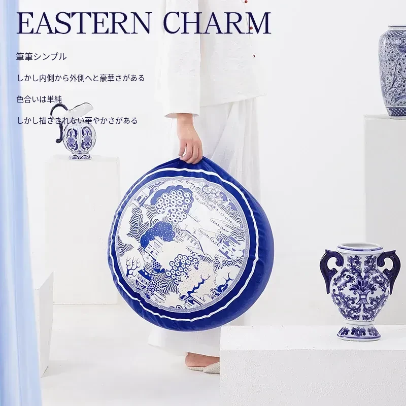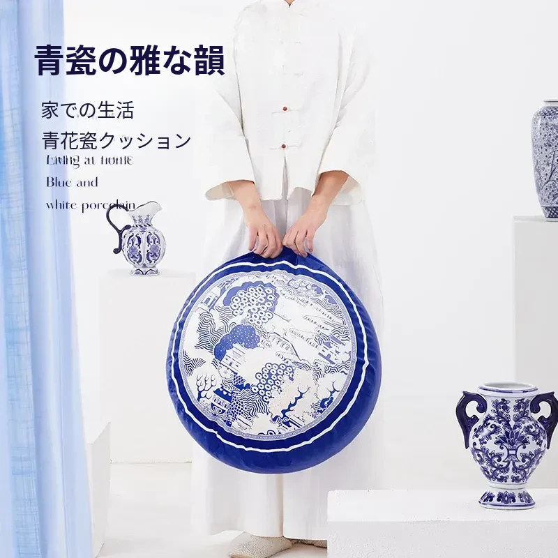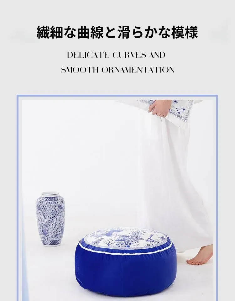新中式青花瓷デザインの座布団 - 中国風のライトラグジュアリー感!洗えるカバー付き、バルコニーにぴったりな円形のローチェア。快適な座り心地で、スタイリッシュな空間を演出します。