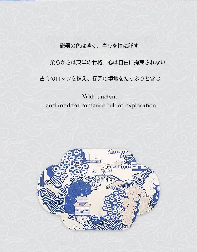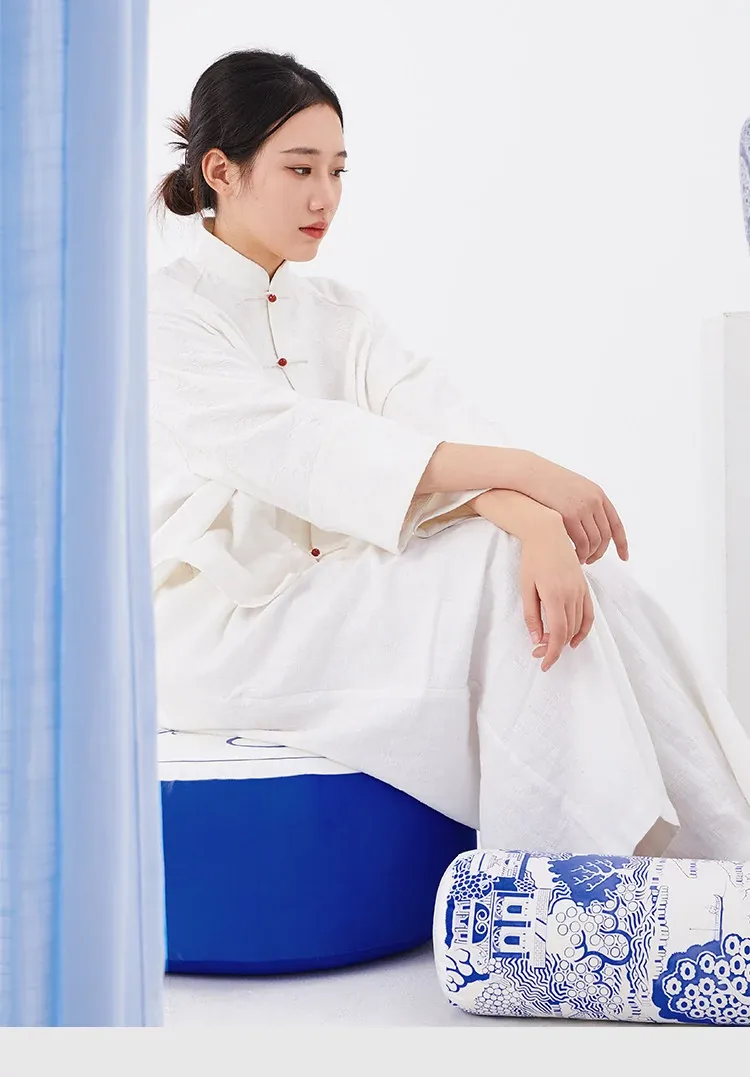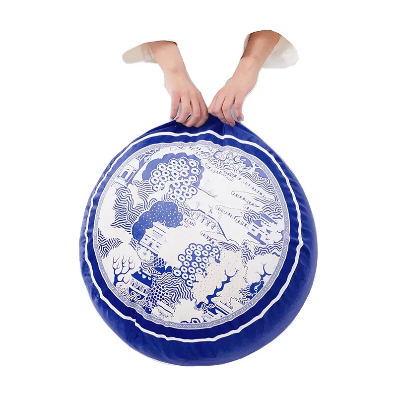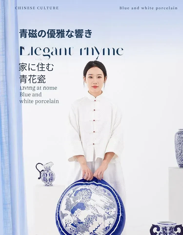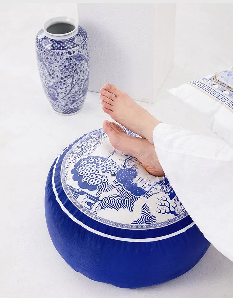 新中式青花瓷デザインの座布団 - 中国風のライトラグジュアリー感!洗えるカバー付き、バルコニーにぴったりな円形のローチェア。快適な座り心地で、スタイリッシュな空間を演出します。