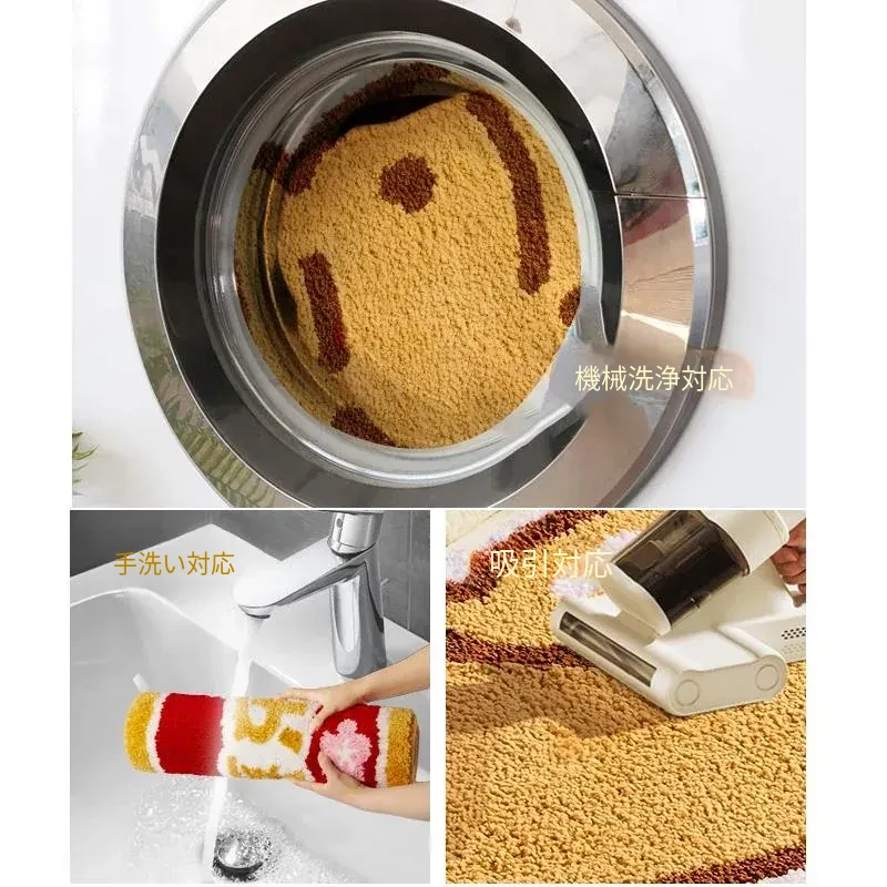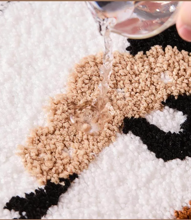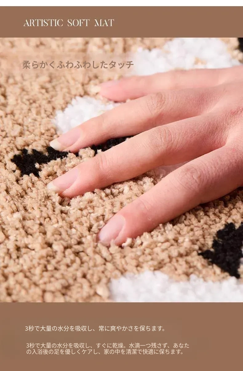 アメリカンスタイルのバスルームマット - 吸水速乾、滑り止め仕様で浴槽の隣にぴったり。高級感漂うフロッキーラグで、快適なバスタイムを演出!