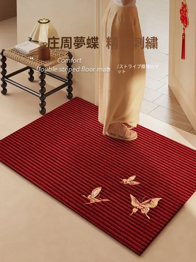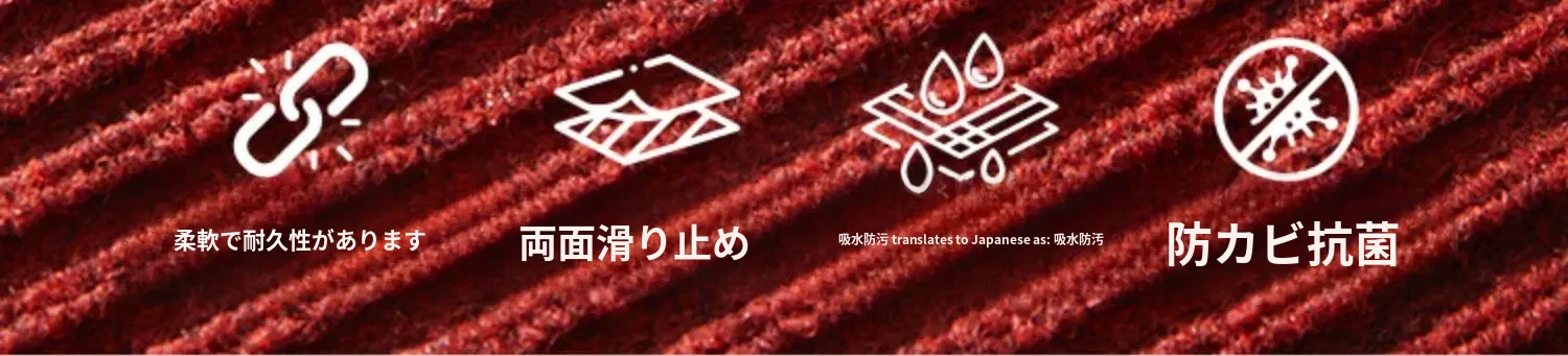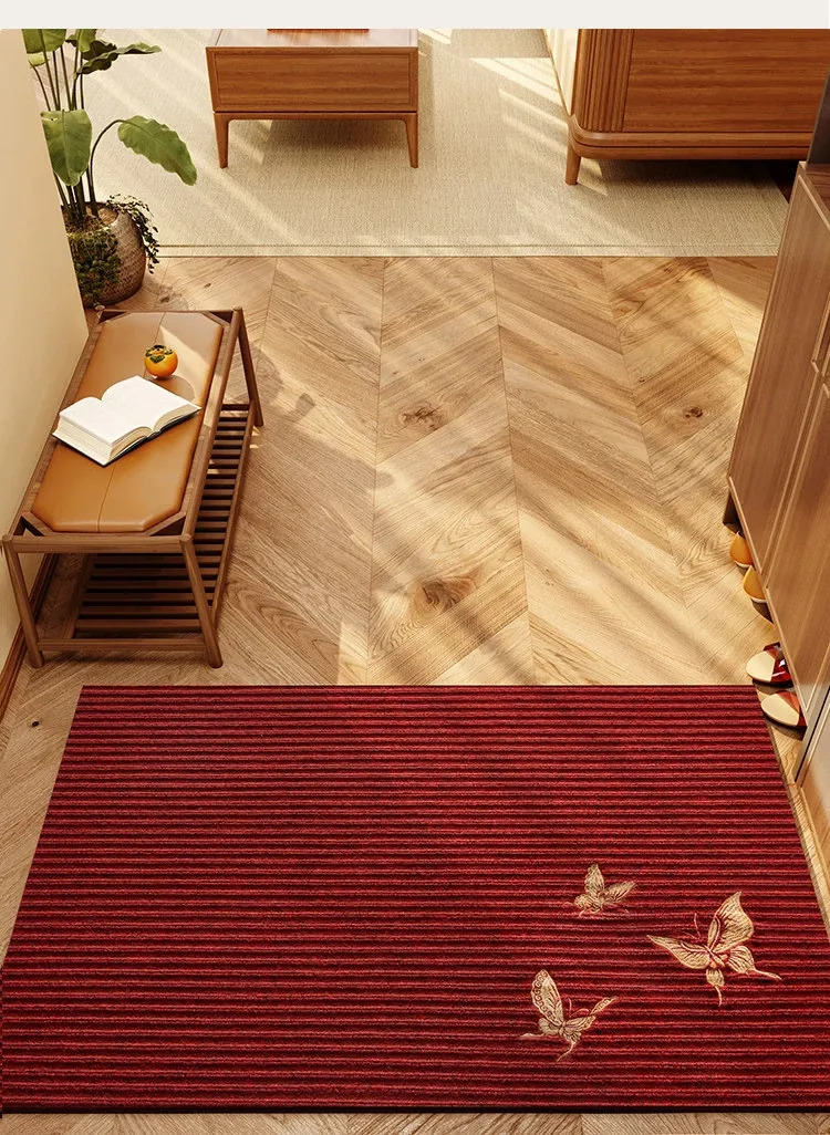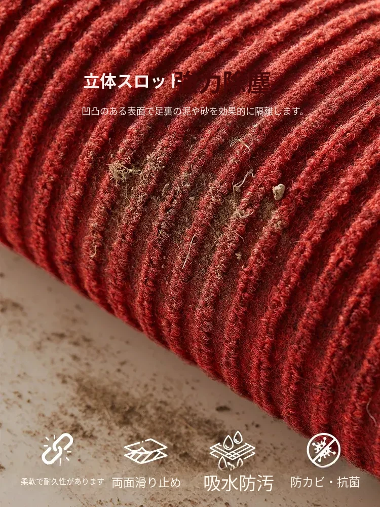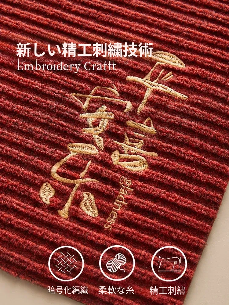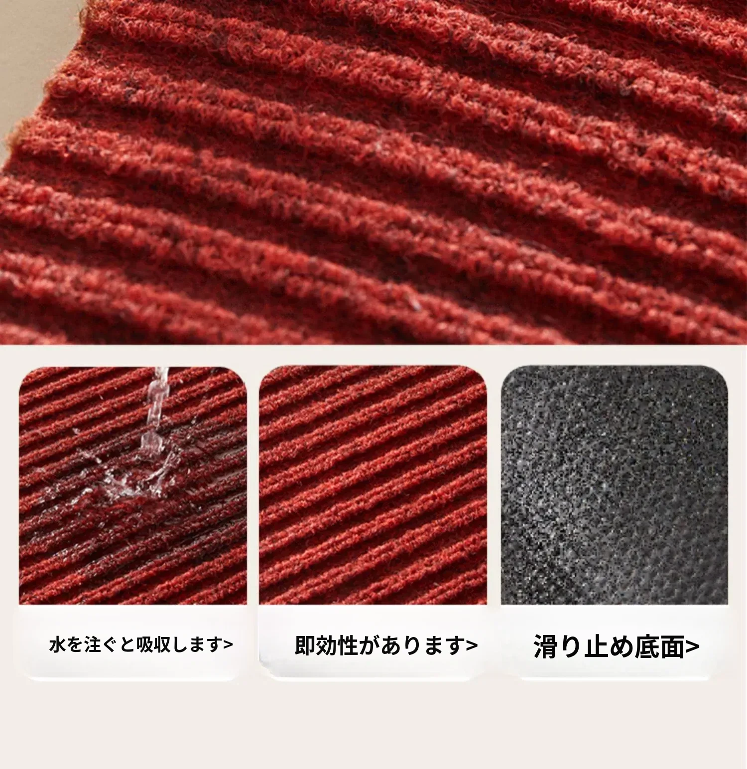 高級感あふれるおしゃれな玄関マット!赤い色合いでお祝い気分を演出し、耐汚れでお手入れ簡単。家の入り口を華やかに彩る、上質なフロアマットです。