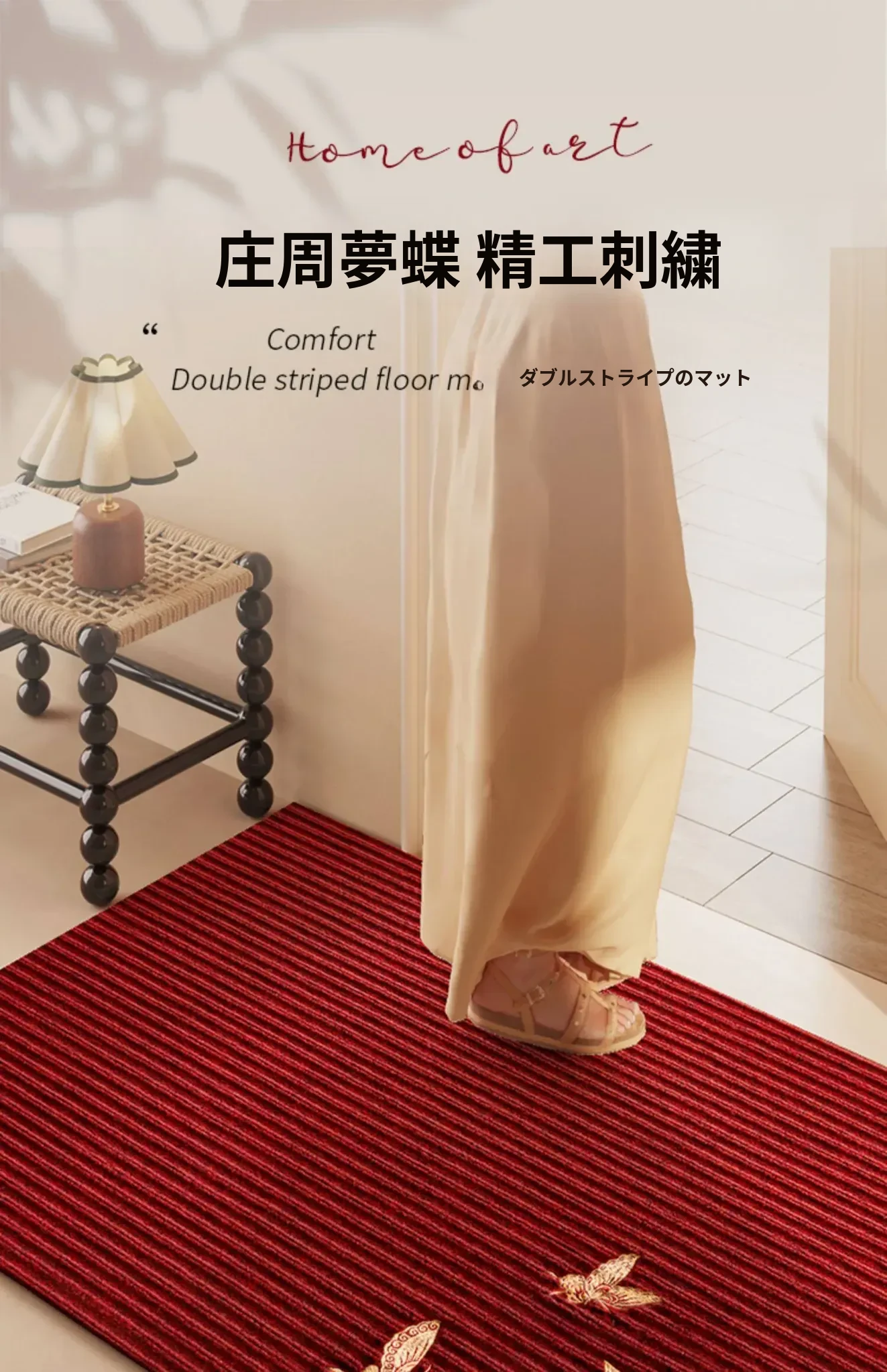 庄周夢蝶赤色二重ストライプ刺繍マット