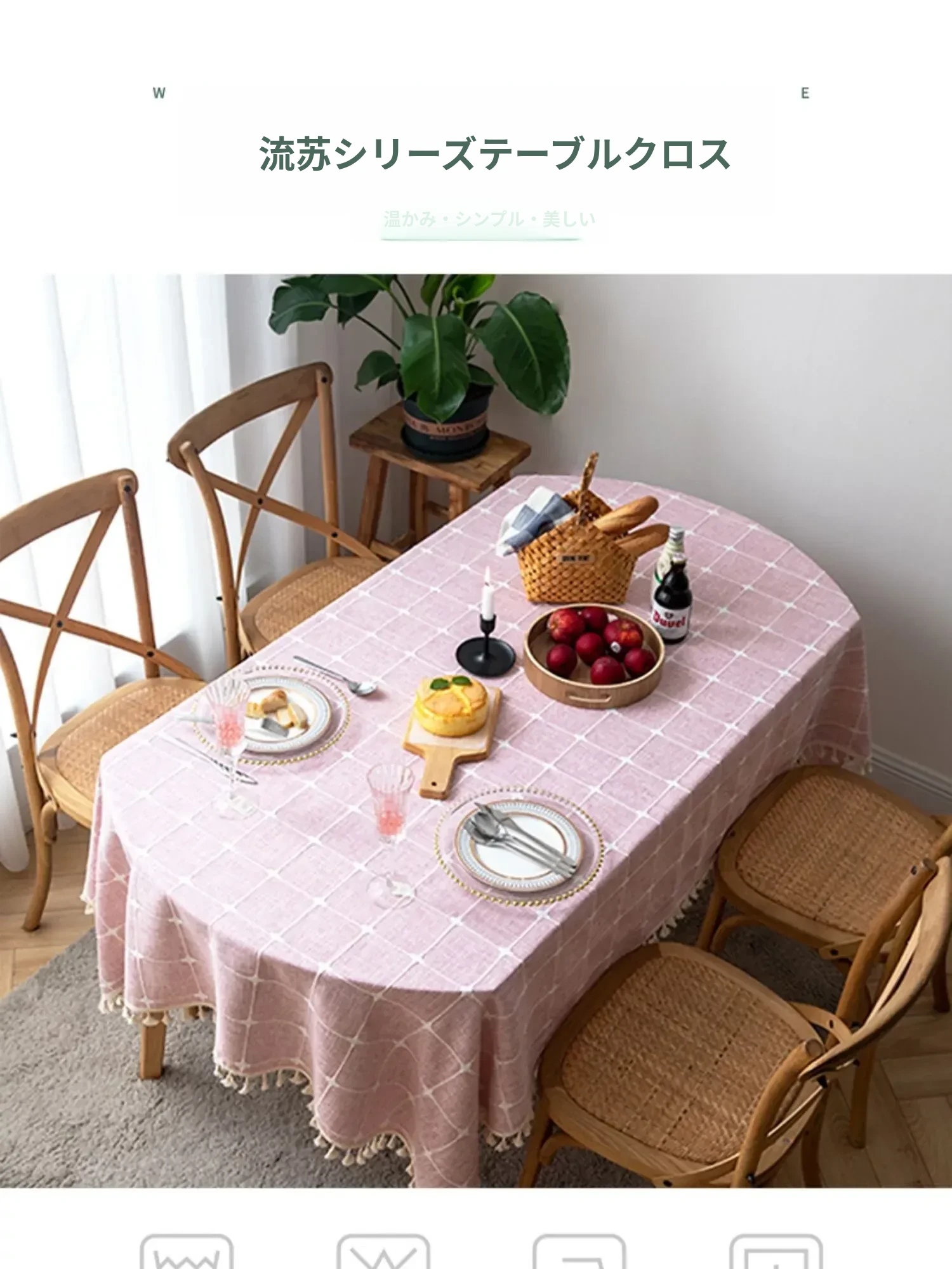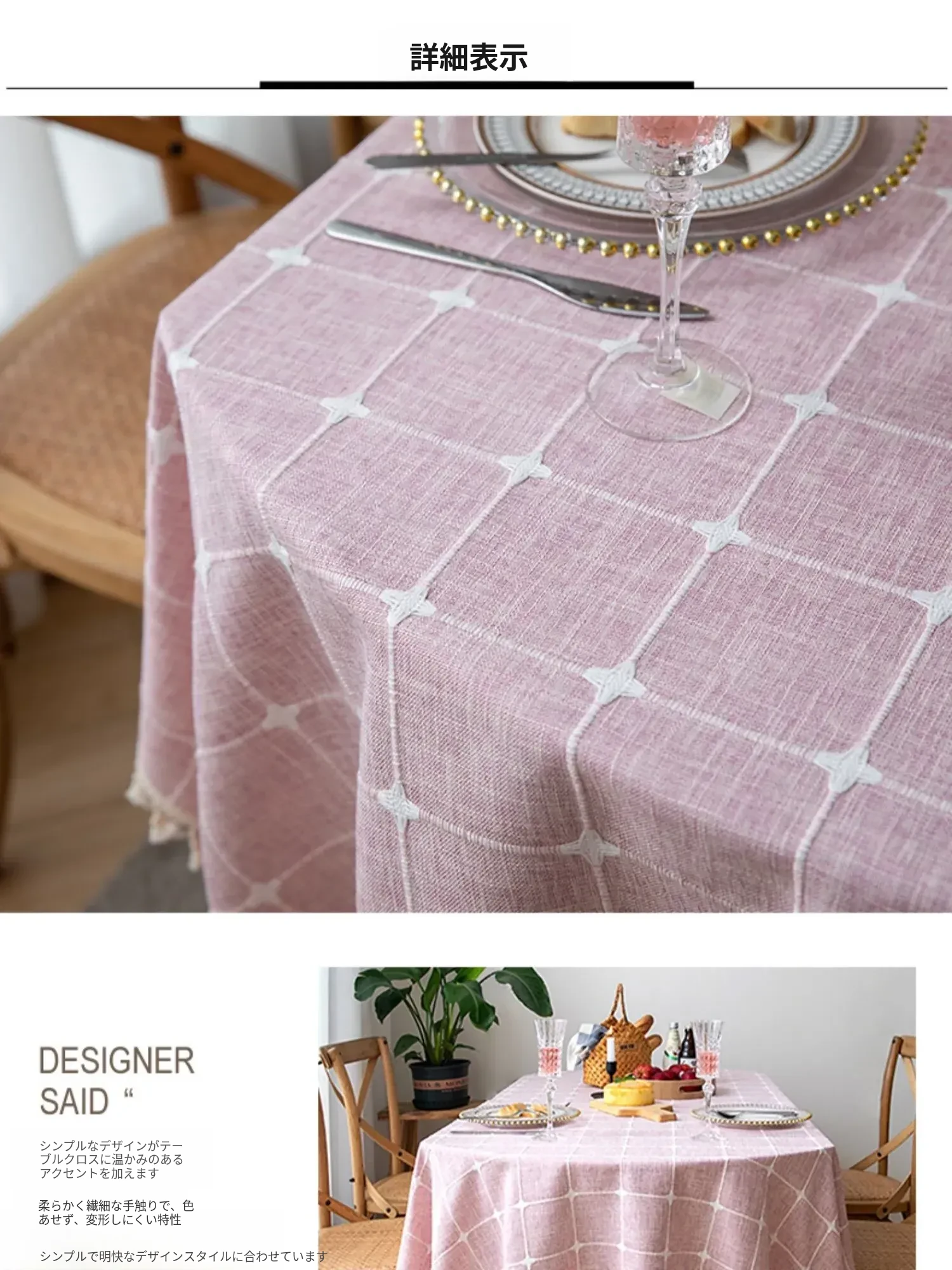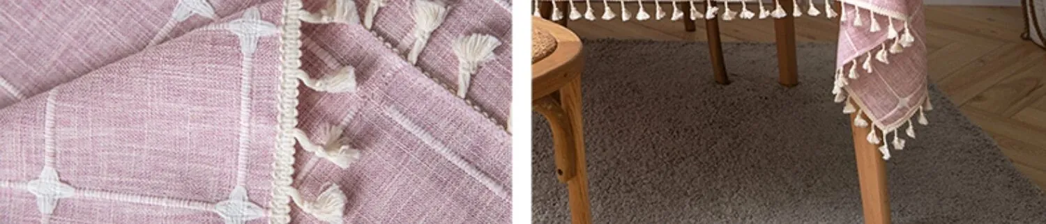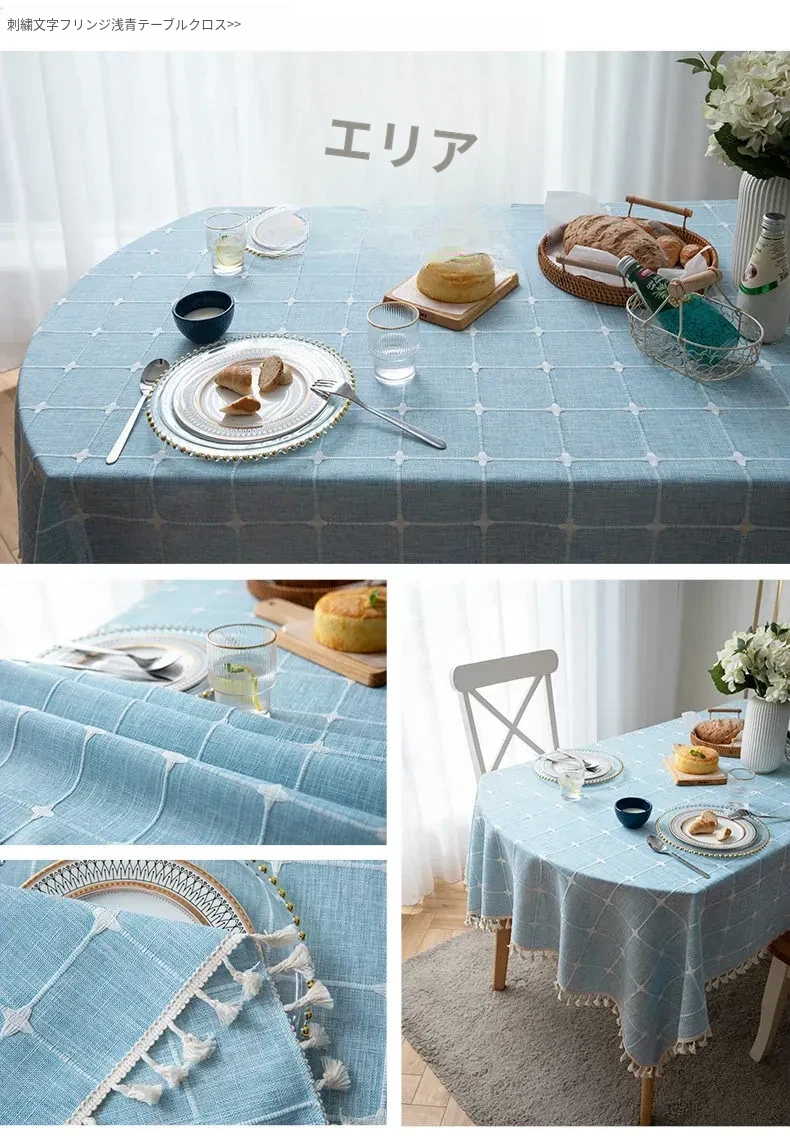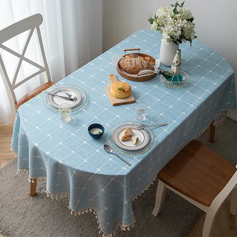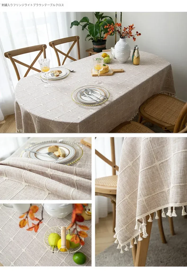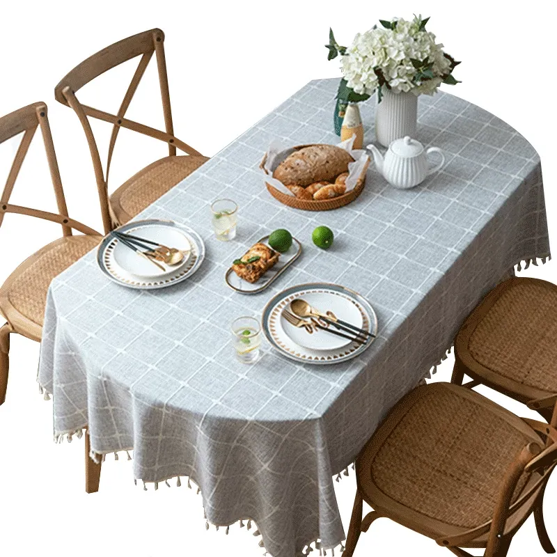 防水・麻感素材の長方形エレガントテーブルクロス - 折りたたみ式・伸縮可能、曲線形・円形のサイドテーブルやダイニングテーブルに最適なチェック柄デザイン!おしゃれで便利なテーブル布でお部屋を華やかに!