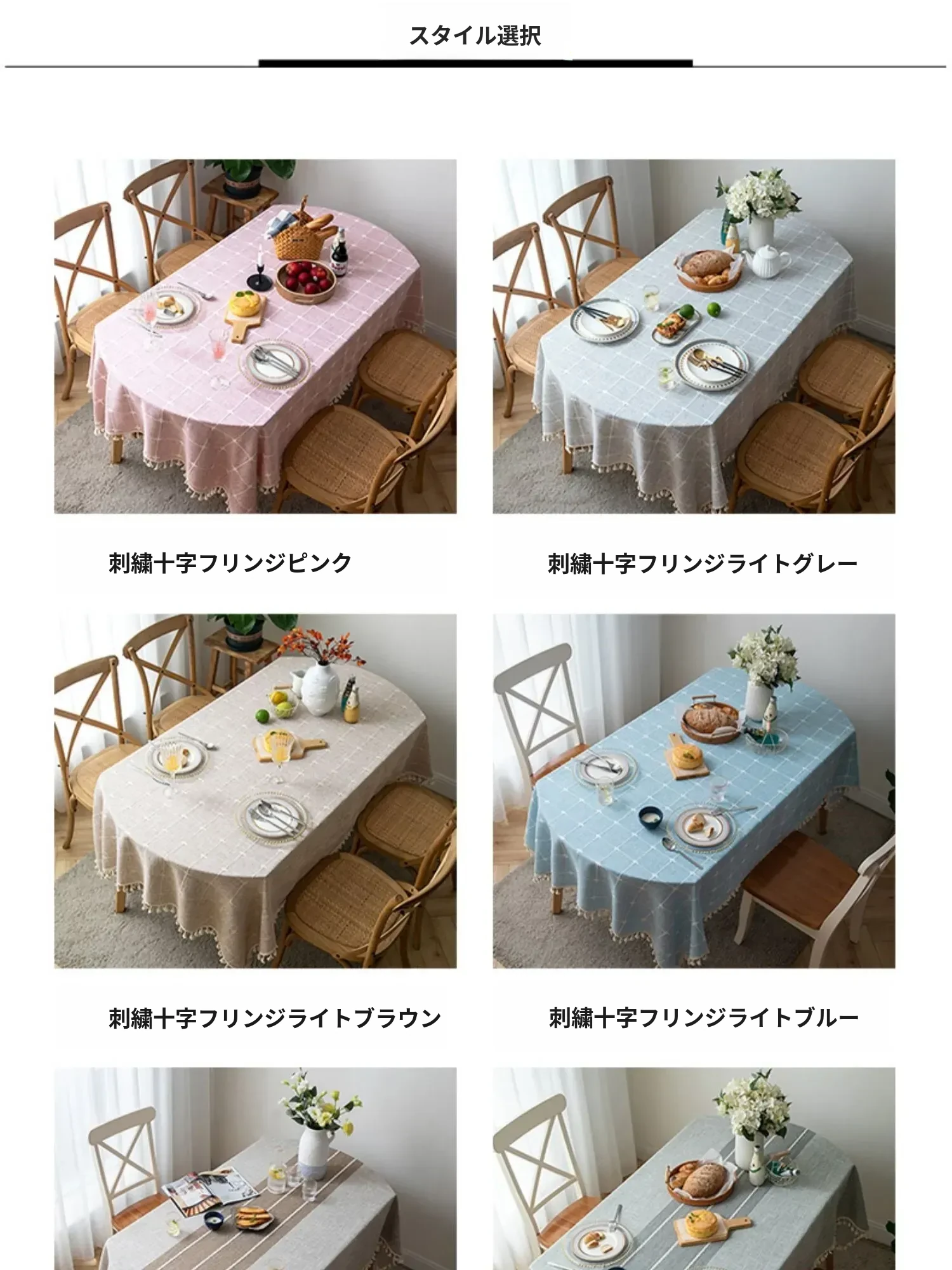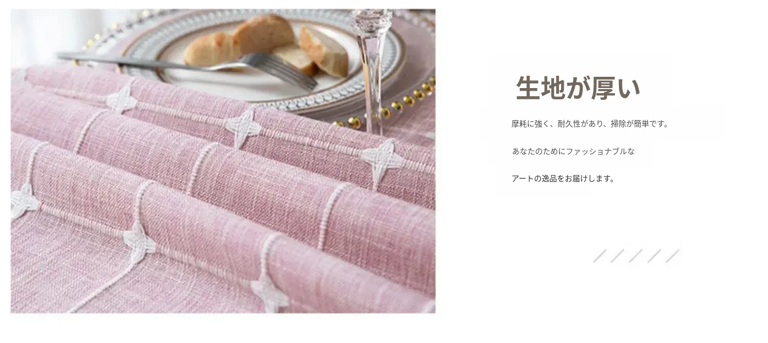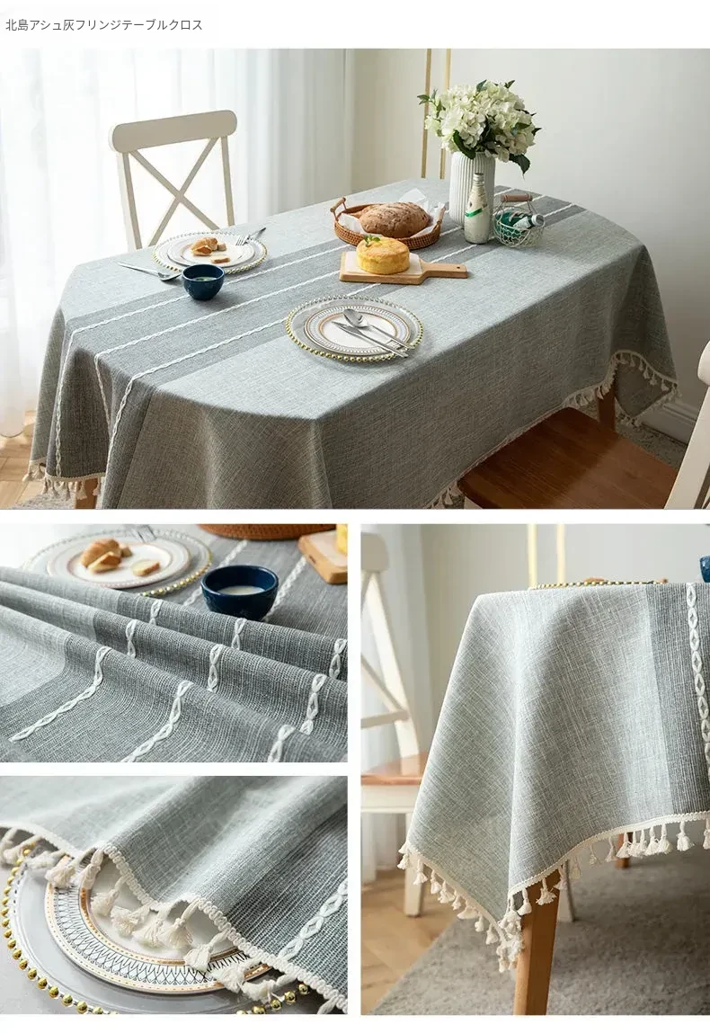 【防水】刺繍十字房飾テーブルクロス - ライトグレー