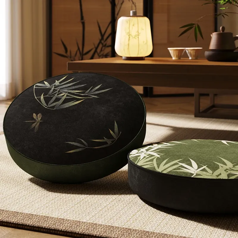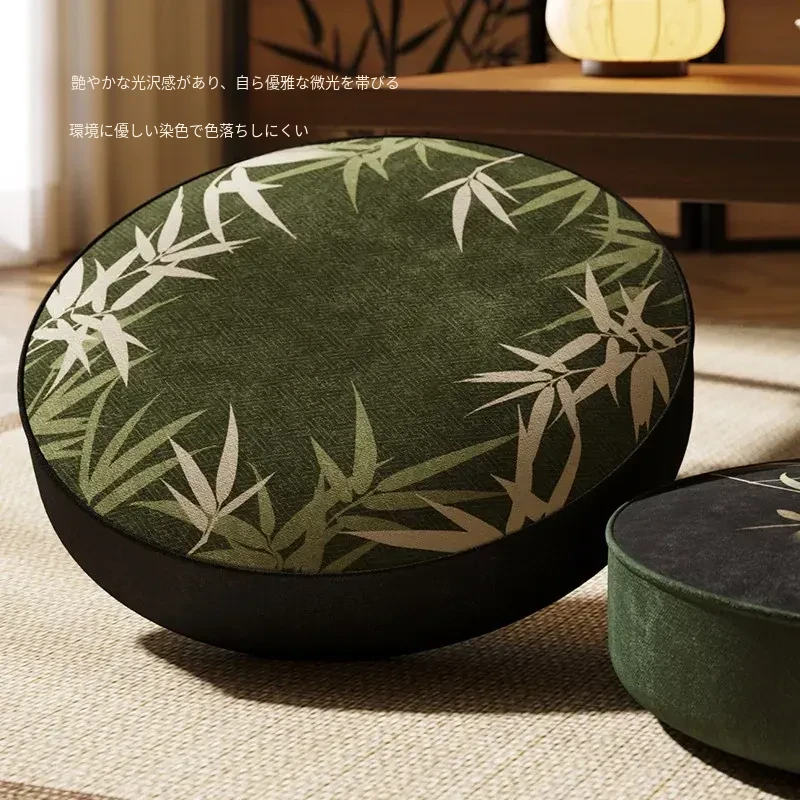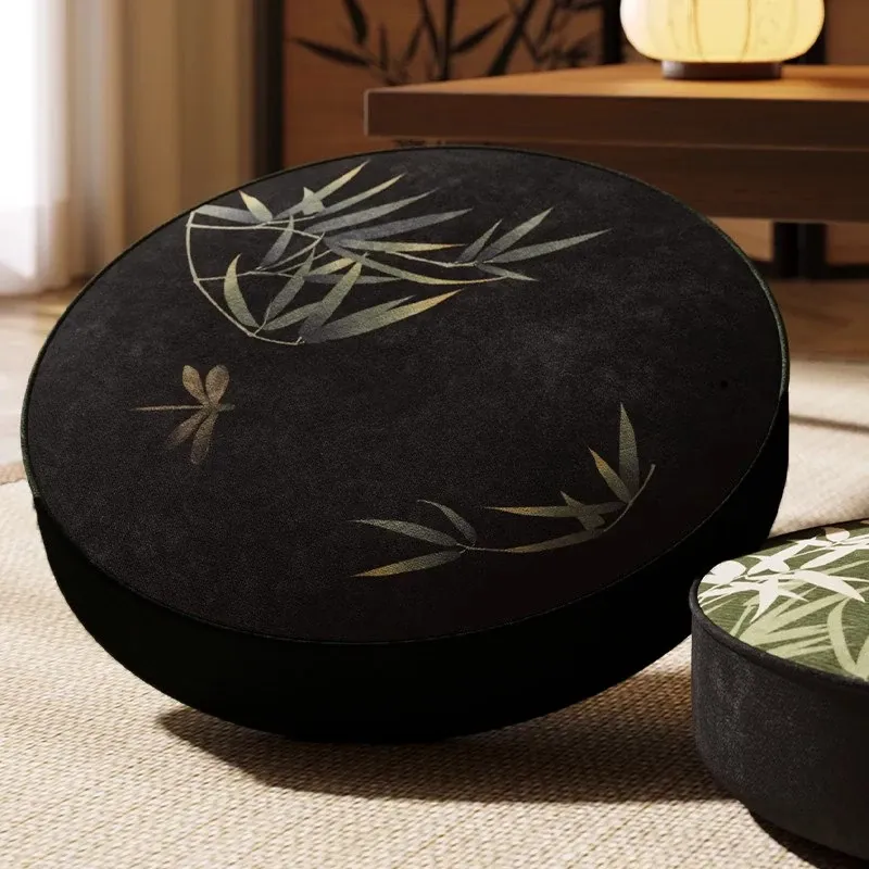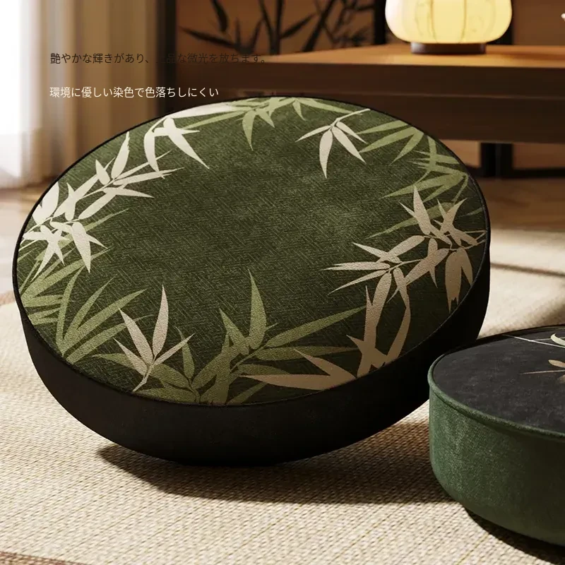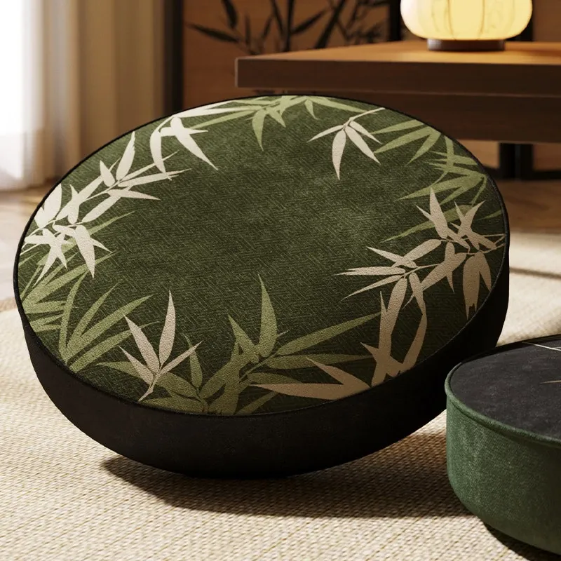 新中式禅風竹製座布団 - おしゃれで快適な茶室や窓辺に最適!長時間座っても疲れない、円形の低いクッション。リラックスしたいあなたにぴったりのアイテムです。