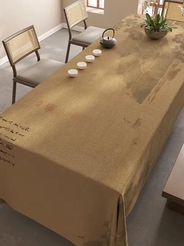 新中式の高級感あふれる茶室用布製テーブルクロス - 古風な禅の雰囲気を醸し出す書道スタイルのテーブルカバー、国風の会議や茶席に最適!