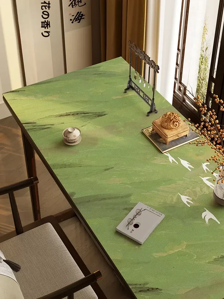 新中式禅風デザインの書道用デスクマット - 防水・防油機能付き、リビングや茶室に最適な古風な書斎テーブルクロス。おしゃれで実用的な空間を演出!