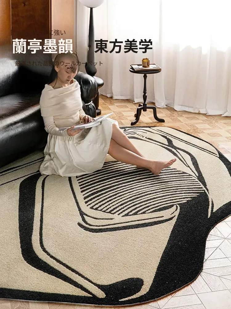 輸入インポートのウールカーペット、ユニークな形状で高級感あふれるデザイン。主寝室や衣服収納、リビングのコーヒーテーブルの横にぴったり!おしゃれな空間を演出するための必須アイテム!