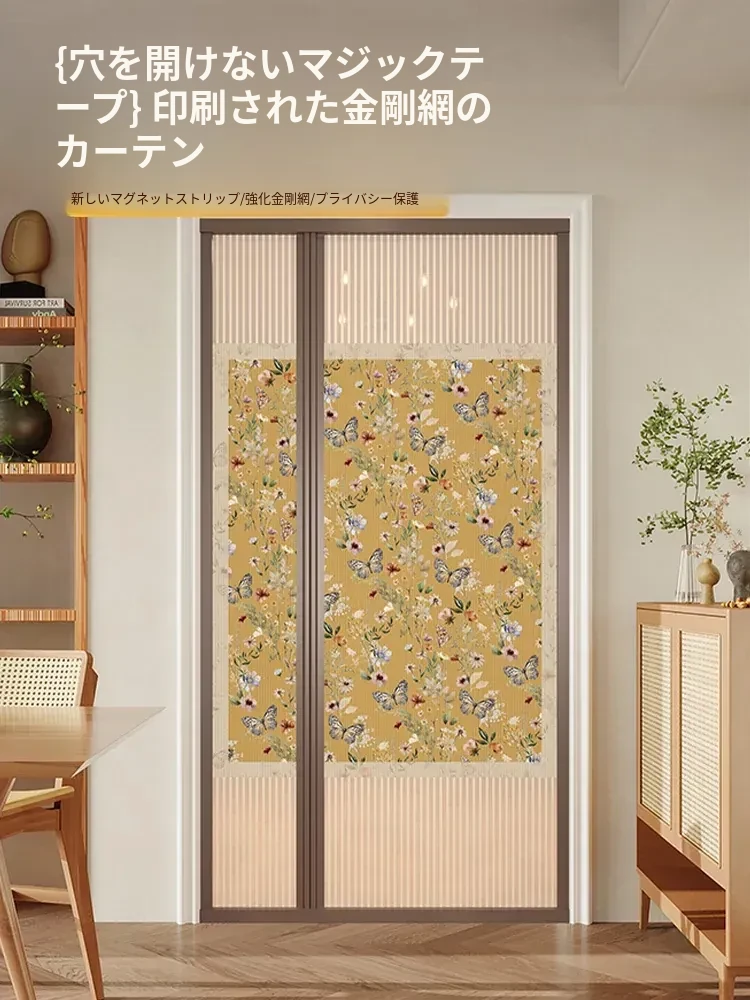 新中式デザインの防蚊マグネットカーテン - 全面マグネットストリップ付き、強力な金剛網採用で穴あけ不要!夏の虫対策に最適な、スタイリッシュな間仕切りカーテンです。