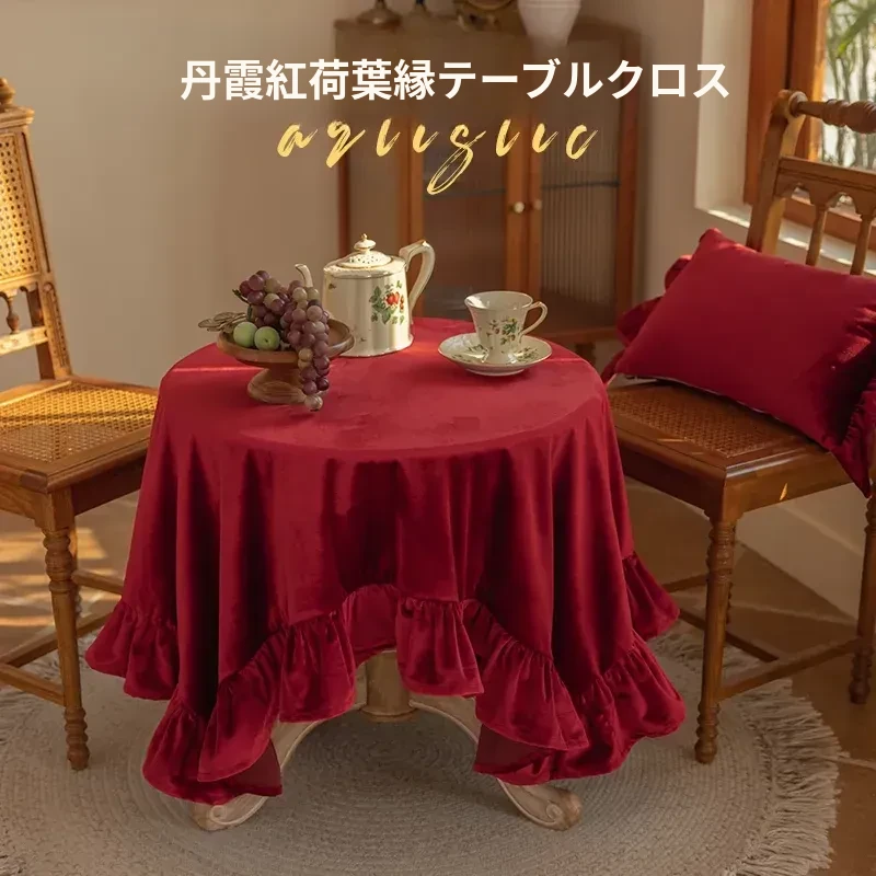 新中式スタイルの結婚式用リビングテーブルクロス - 深紅色で華やかな雰囲気を演出!高級感溢れる布製、ティーテーブル用カバー。お祝いの席にぴったりな軽やかな贅沢感をお楽しみください。