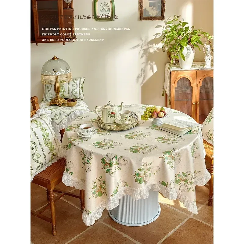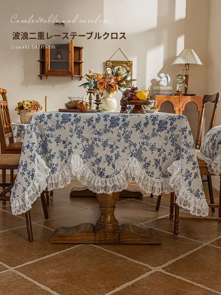 田園風ロマンティックフレンチレース長方形テーブルクロス - おしゃれなインテリアにぴったり!カジュアルで清新なコットンリネン素材、和風ダイニングにも最適なテーブルカバー。あなたの空間を美しく彩ります!