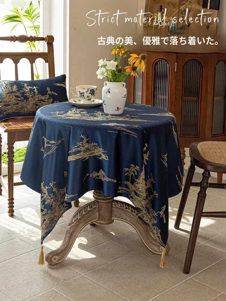中国風のラグジュアリーなブルーテーブルクロス - 高級感あふれる新中式デザイン、リビングのティーテーブルにぴったりのエレガントな布製テーブルカバー。あなたの空間に華やかさをプラス!