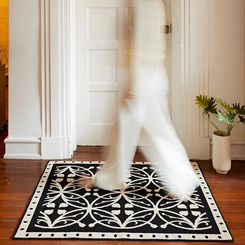 新中式スタイルのユニークなリビングルーム用玄関マット - 高級感漂う古風デザイン、汚れを防ぎ美しいインテリアを演出するベッドサイドカーペット。