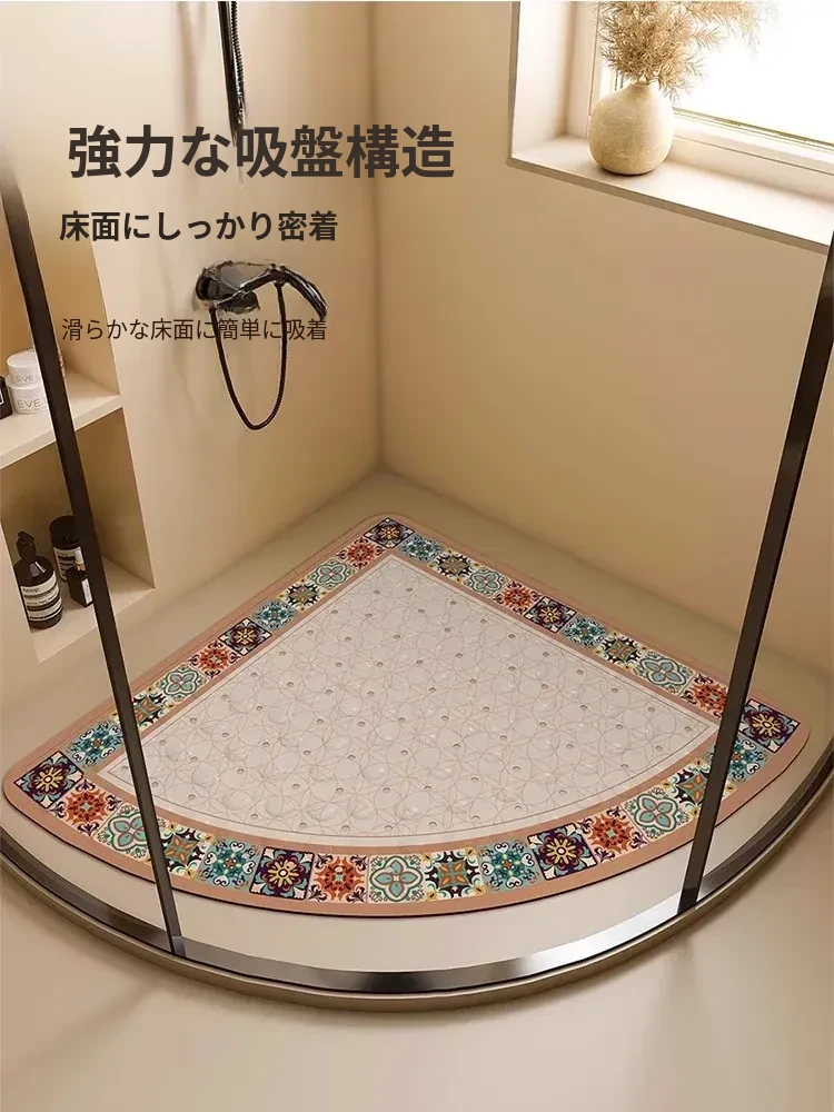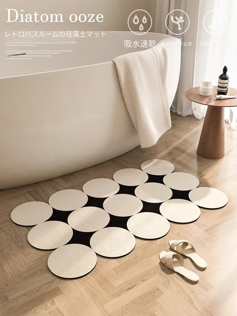 吸水性抜群!おしゃれなバスルーム用シリカゲルソフトマット|滑り止め付き洗面台用バスマット|クリーミーなデザインのユニークな形状ラグ