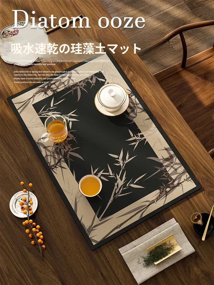 新中式禅の雰囲気を楽しむ!シリカゲル吸水マット付きの茶台用ドレインマット。おしゃれで機能的な茶卓マット、熱を遮断し、茶器やカップを守ります。心安らぐお茶のひとときを演出します。