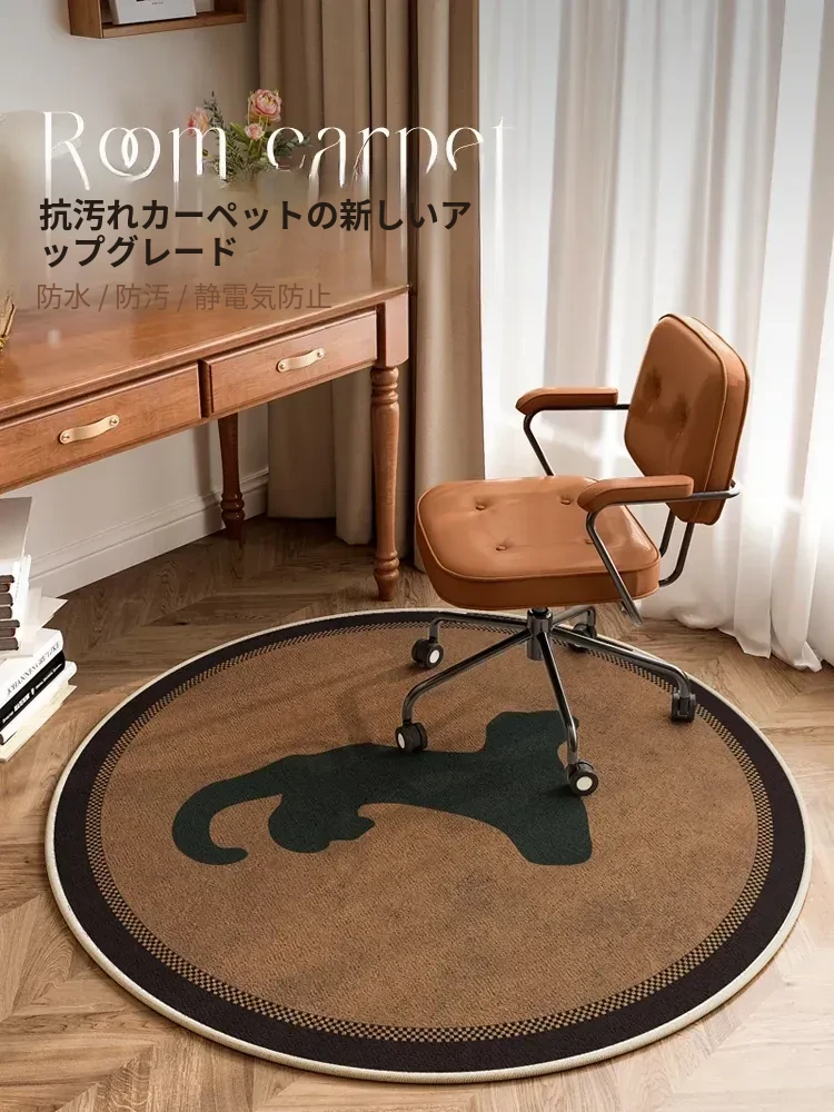 アメリカンスタイルの円形チェア専用マット - リビングルームや書斎にぴったりの高級感あふれるフロアマット、寝室やクローゼットにも最適なラグ。あなたの空間をスタイリッシュに彩ります!