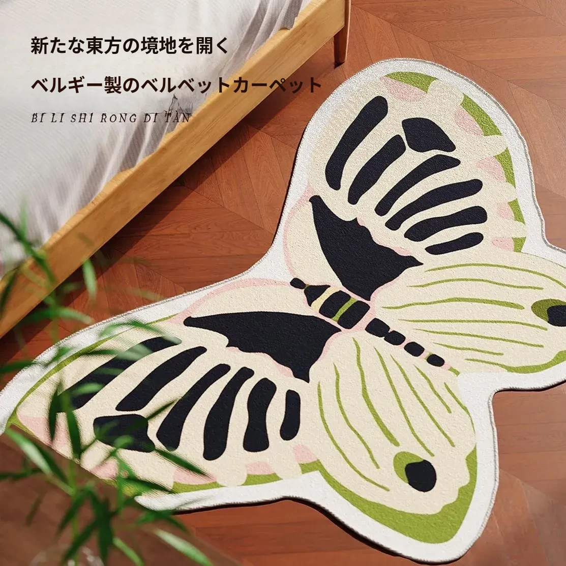 輸入インポートのウールカーペット、ユニークな形状で高級感あふれるデザイン。主寝室や衣服収納、リビングのコーヒーテーブルの横にぴったり!おしゃれな空間を演出するための必須アイテム!