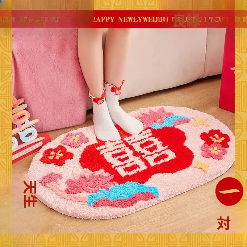 2026年新作!おしゃれな楕円形の祝賀ベッドサイドマット - 家庭用、玄関マット、リビングルーム用、結婚式のデコレーションにも最適!エレガントなデザインでお部屋を華やかに彩ります。