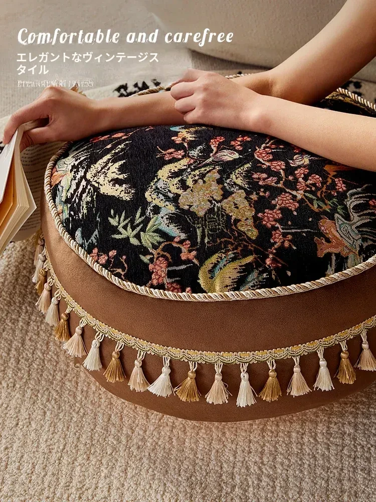 アメリカンレトロスタイルの高級クッション!リビングやバルコニーにぴったりのデザインで、座り心地抜群。瞑想やくつろぎの時間に最適なスタイリッシュな低いスツール。ソファのフットマットとしてもご利用いただけます。