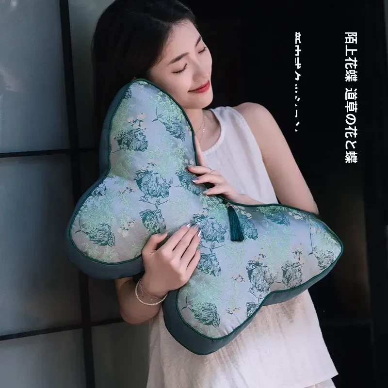 新中式レトロ蝶柄クッション | リビングソファにぴったりの雰囲気を演出 | ベッドヘッドにも最適な高級感あふれるギフト用腰枕 | おしゃれなデコレーションアイテム