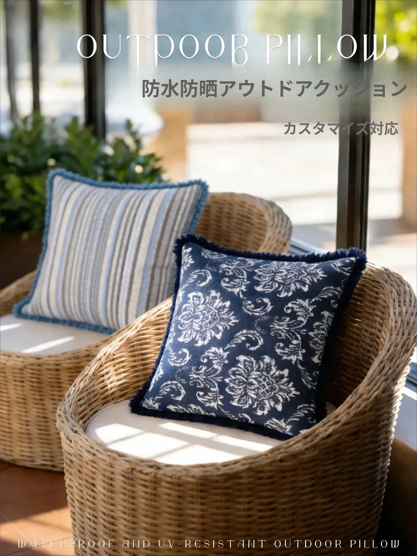 アウトドア防水・日焼け防止クッション|庭やバルコニーに最適なリラックスアイテム!ハンモックやチェアにぴったりのクッション、ホテルのソファにも合うウエストピローでキャンプでも快適に!