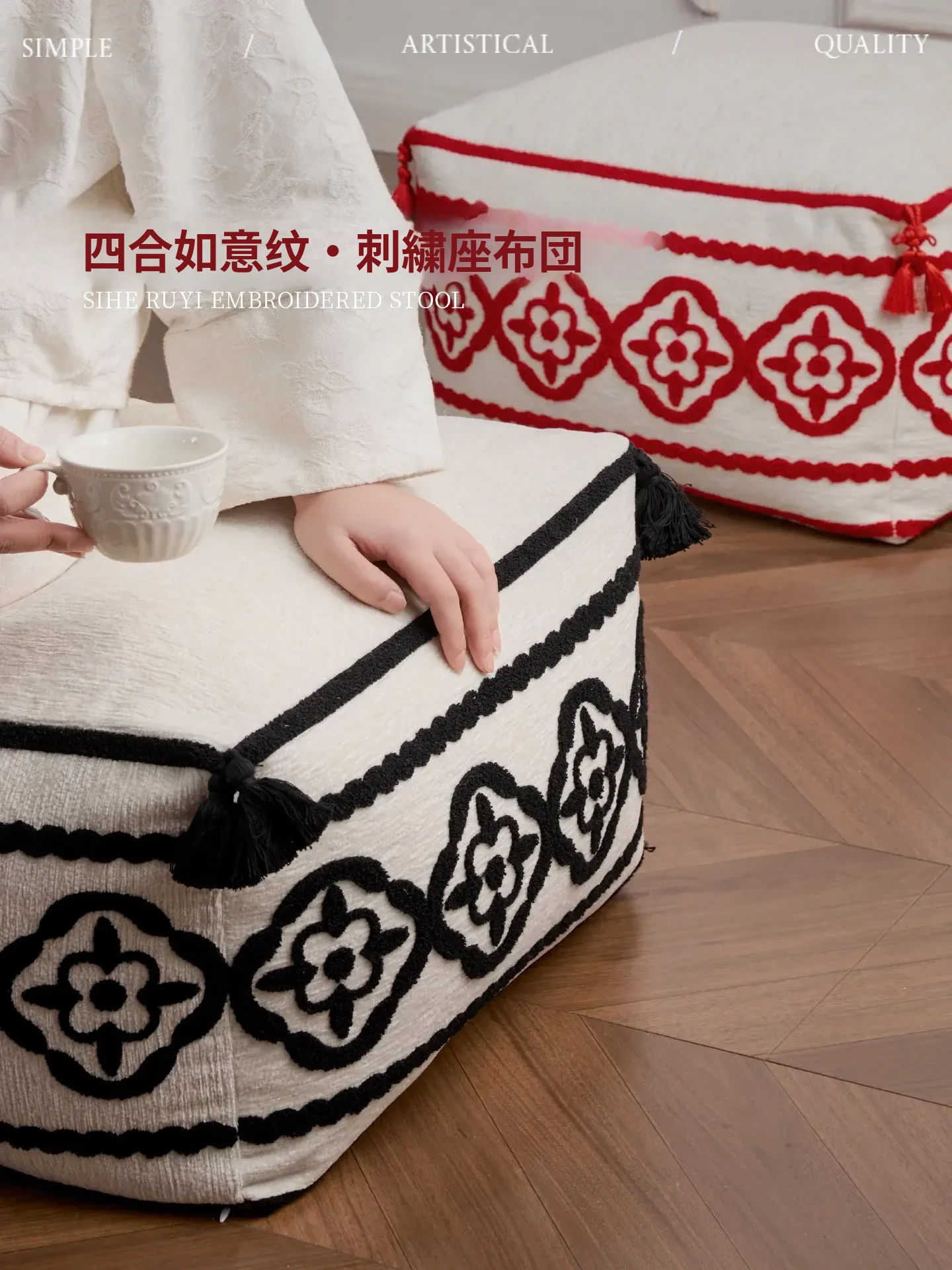 新中式デザインの家庭用スクエア座布団 - リビングルームや寝室に最適な快適なソファのクッション、畳のような柔らかい座り心地でリラックスしたひとときをお楽しみください!
