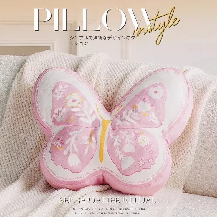 蝶々デザインのクッション♡女の子の心をつかむピンクのソファクッション!おしゃれなインス風、個性的な腰当て。ドパミンを感じるオフィス用クッションで、心地良いひとときを!