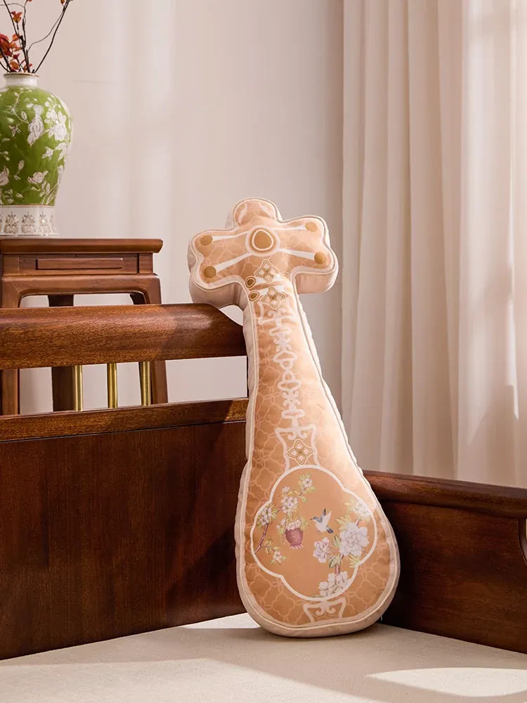 新中式国風レトロ琵琶デザインの異形クッション - オフィス、リビング、ソファ、ベッドでの快適な腰サポート!おしゃれで癒しの空間を演出します。