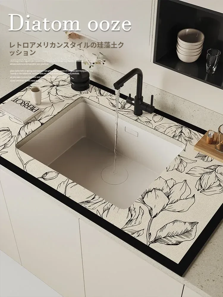 キッチン用水切りマット - 吸水性抜群で自由にカット可能!洗面台やシンクに最適な防水設計で、清潔な空間を保ちます。洗い物の後も安心して使える優れたアイテムです!
