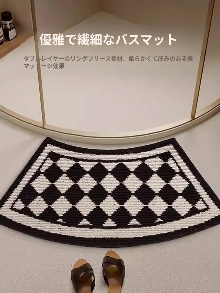 アメリカンスタイルのアーチ型バスマット - 中古風デザインのトイレ用扇形フットマット、シャワールームの入り口にぴったりな滑り止めマット!おしゃれで安全な空間を演出します。
